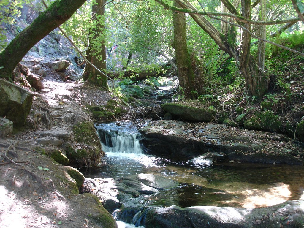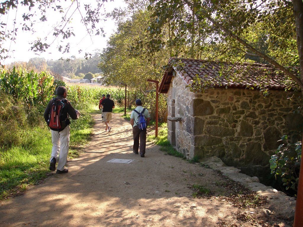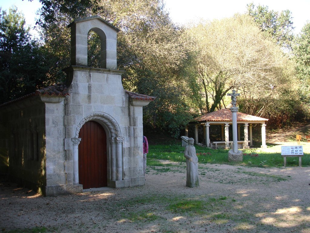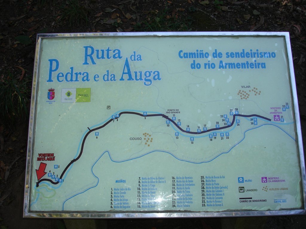 Seguimos depois o curso do rio Armenteira também com vários moinhos, passando por uma “Aldeia Labrega”, uma representação em granito da vida rural galega de princípios do século XX com seus elementos tradicionais; a igreja, um espigueiro, o forno, um cruzeiro e os animais domésticos.