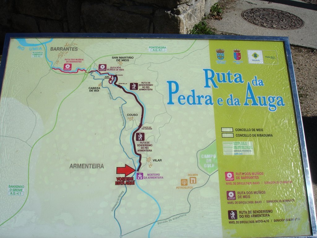 Da parte de manhã com inicio no município de Meis mais propriamente no mosteiro de Armenteira e sempre acompanhando um pequeno ribeiro com o mesmo nome. Trata-se de um velho caminho que se percorria tradicionalmente “lunes” da Páscoa.