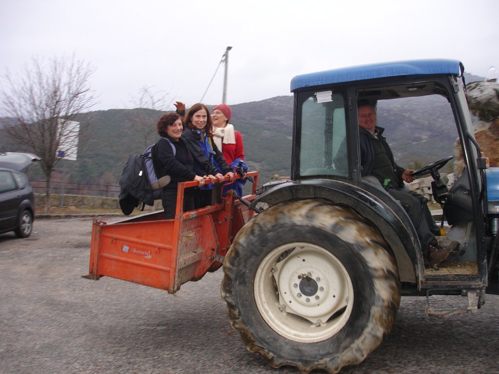 Depois, foi a continuação até à aldeia de Parada do Outeiro, com o Miguel Mesquita sempre na liderança, tendo o grupo alongado consideravelmente, pois o dia já ia longo e o cansaço fazia-se sentir, tendo mesmo três da caminheiras terminado com o recurso a ... um tractor, fazendo a subida final na sua caixa de carga, para gáudio dos restantes companheiros, que lhes fez uma recepção entusiástica. Cabe aqui o agradecimento ao Jorge Mota e primos Mesquita, que comandaram as operações com desvelo, escolhendo os trilhos e tomando as opções, que nos proporcionaram uma excelente caminhada.