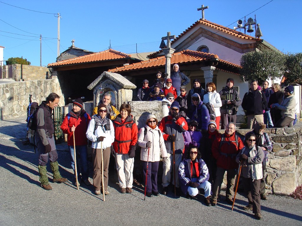 A foto de grupo foi tirada logo ali, defronte da capela de S. Miguel e iniciamos a marcha subindo o caminho do Monte, que dá acesso à casa florestal de Outeiro.