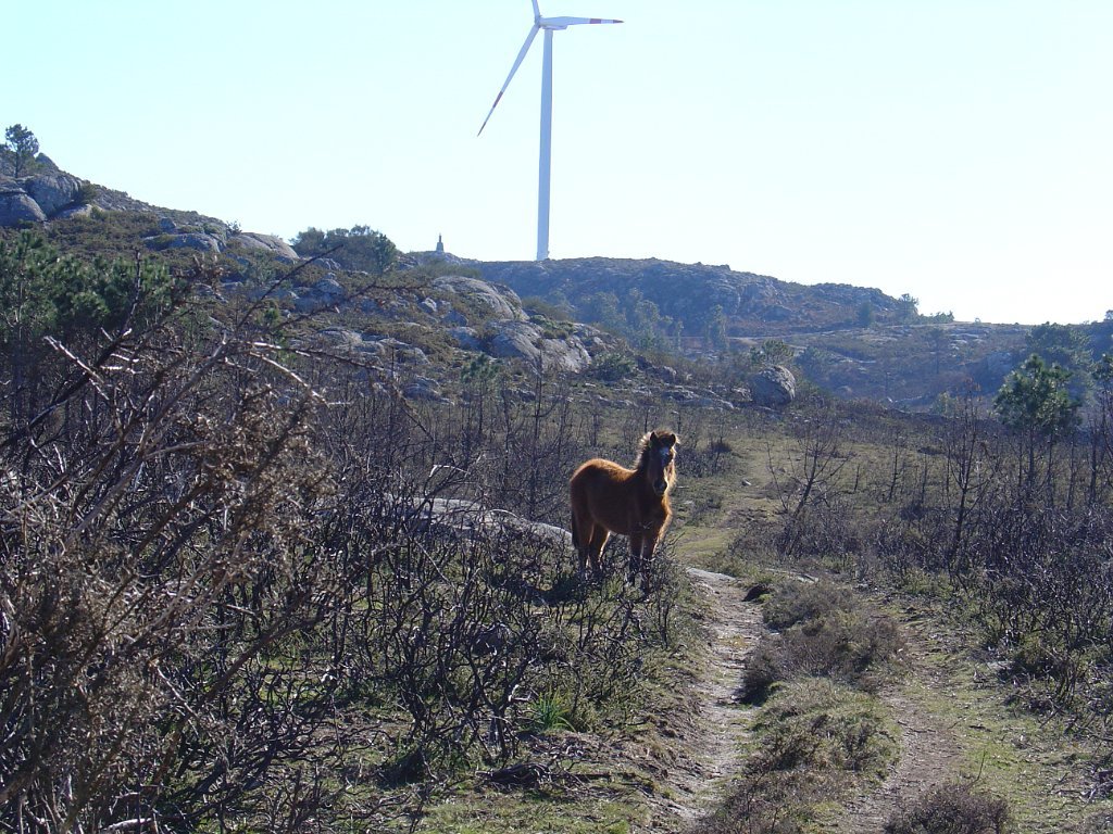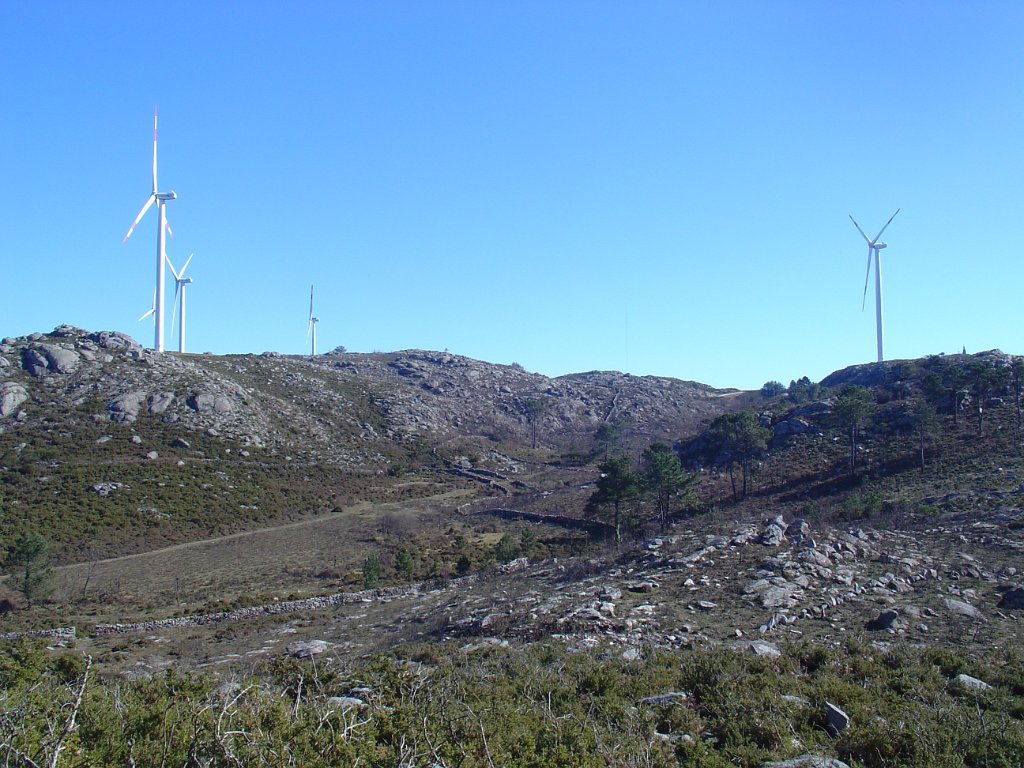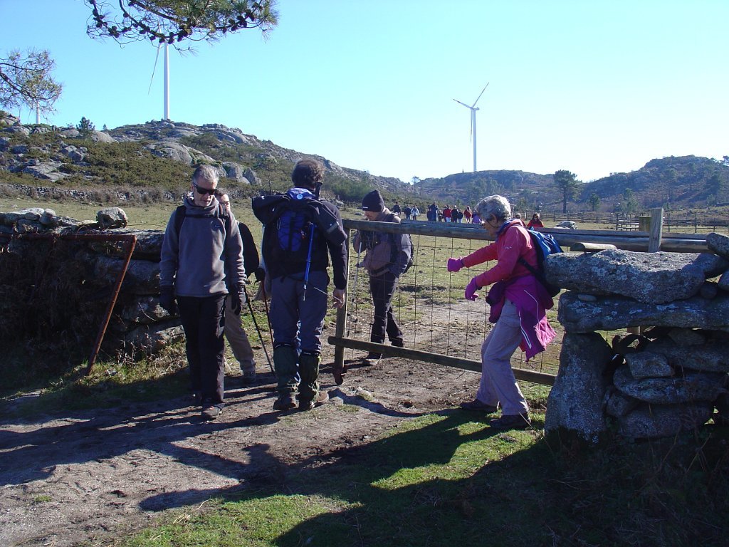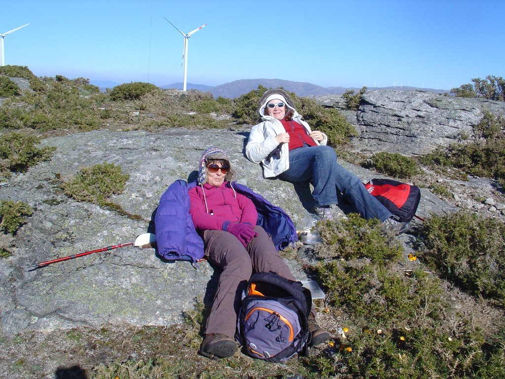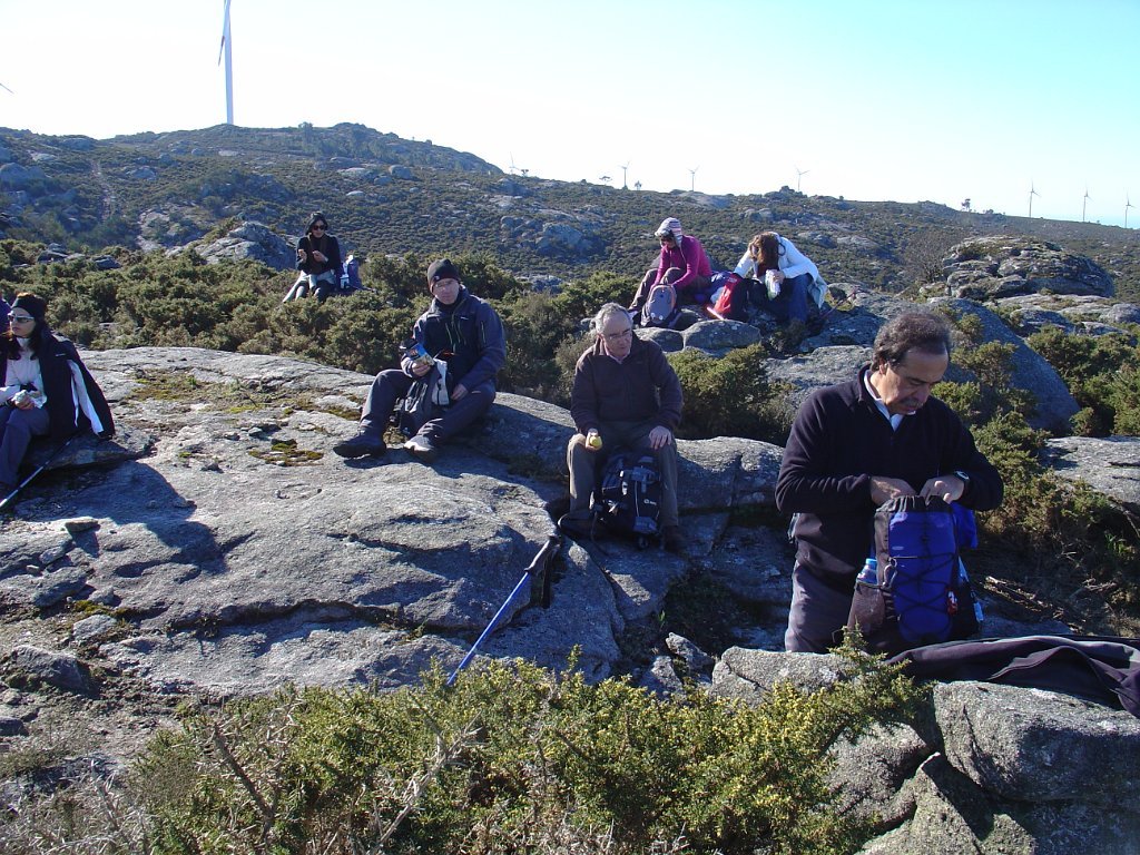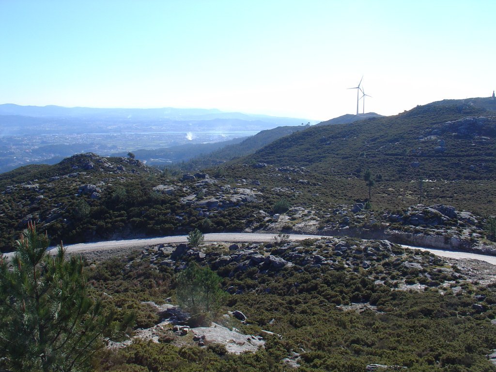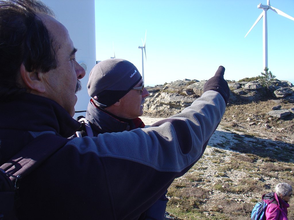 Já agrupados, seguimos por trilho estreito, observando a paisagem e subindo sempre a encosta, aproveitando o monumental lajedo granítico, até finalmente chegar ao planalto da chã de Afife, com as torres eólicas bem alinhadas à nossa frente, onde paramos para “meter qualquer coisa à boca”.