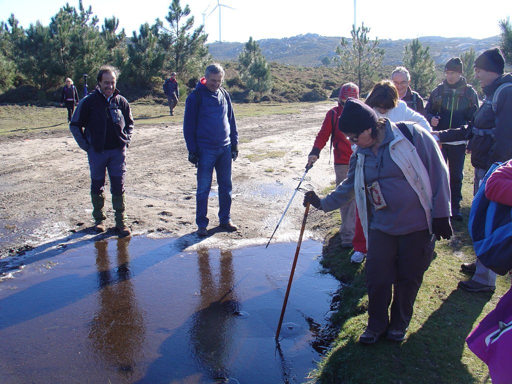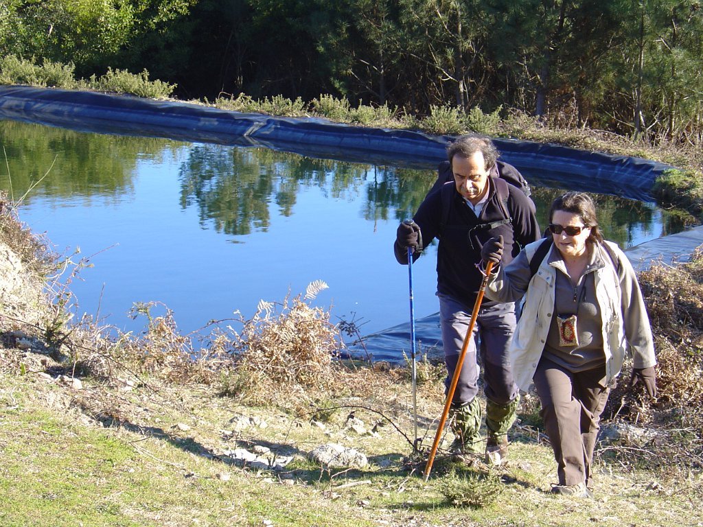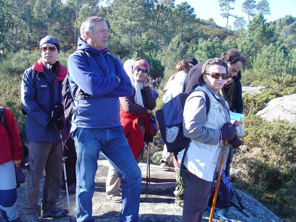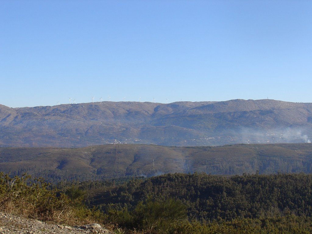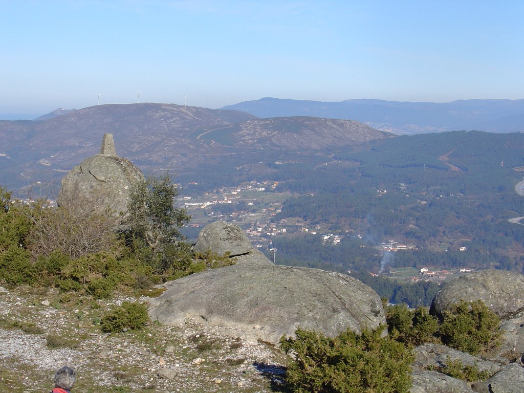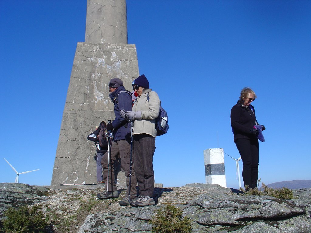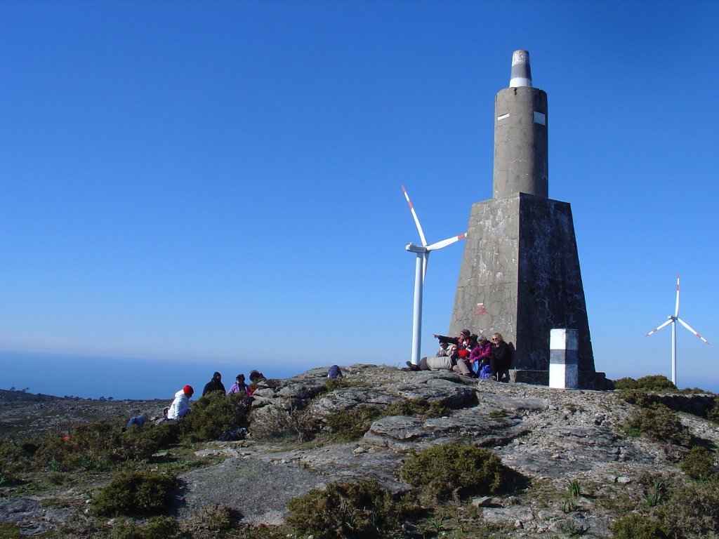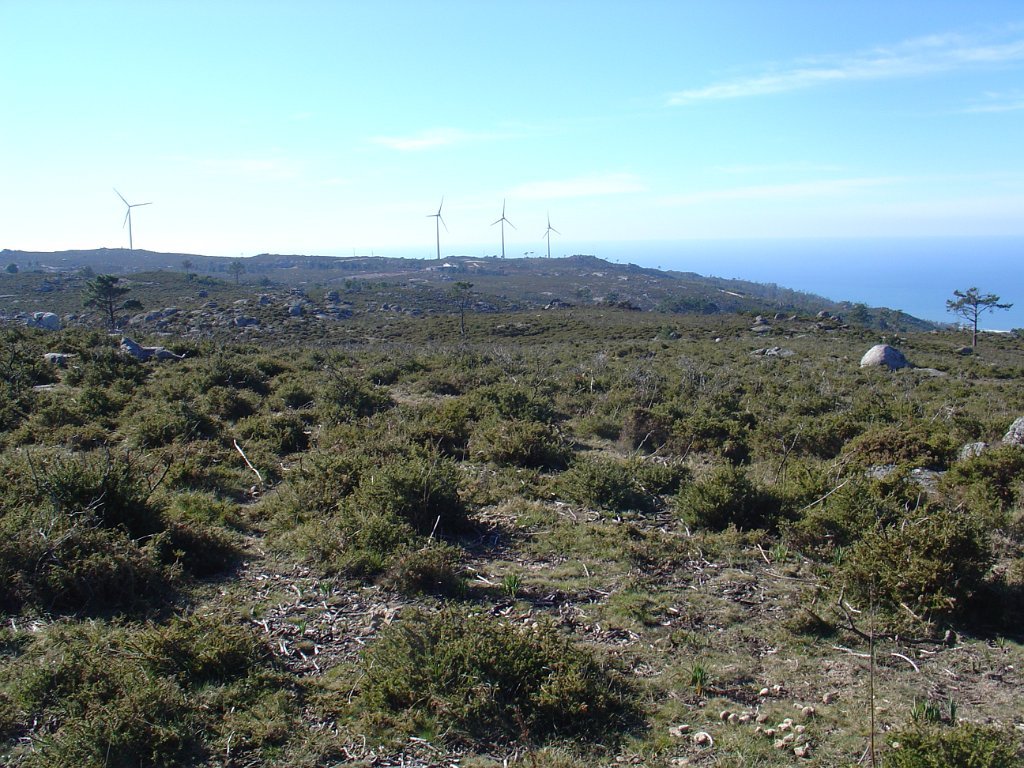 Já agrupados, seguimos por trilho estreito, observando a paisagem e subindo sempre a encosta, aproveitando o monumental lajedo granítico, até finalmente chegar ao planalto da chã de Afife, com as torres eólicas bem alinhadas à nossa frente, onde paramos para “meter qualquer coisa à boca”.