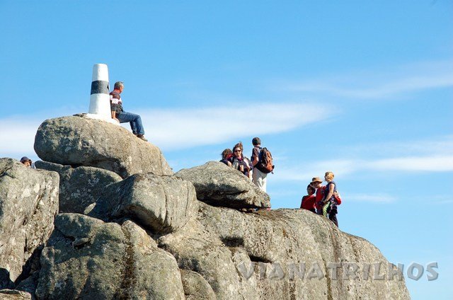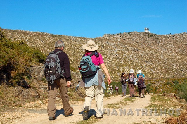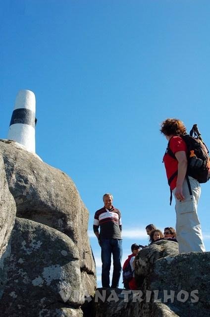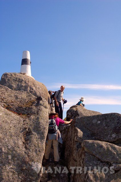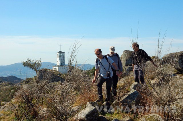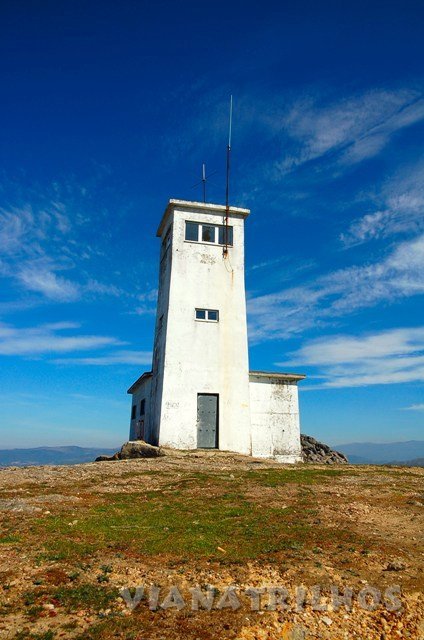 Após algum tempo de caminhar, e depois de uma curva, lá bem no alto aparece o Posto de Vigia do alto do Monte da Nó, objectivo que foi atingido, e que no alto, bem junto do geodésico deixou logo a impressão de ter valido a pena o esforço para cá chegar. Durante o tempo que aqui permanecemos, houve oportunidade para confirmar ser este talvez um dos mais belos miradouros sobre o vale do Lima.