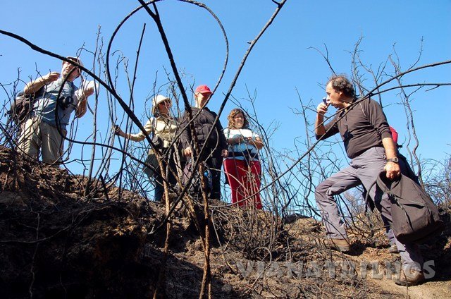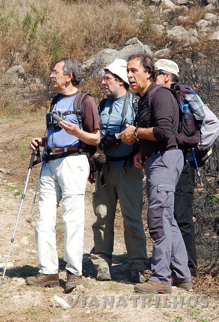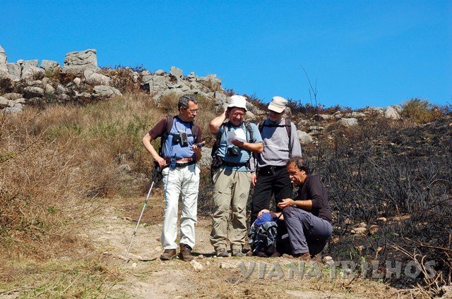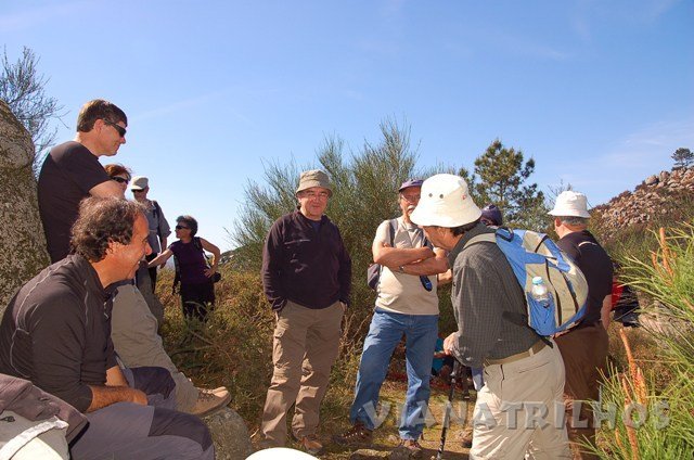 Mochilas nas costas prontos para partir, mas eis que se verifica a falta do João Tovar, que connosco vinha seguindo. Faz-se um telefonema e o mesmo havia-se perdido e andava à procura de rumo. Orienta-se o mesmo e espera-se um pouco pois que não há que deixar ninguém para trás. Logo depois chega o mesmo. Eram assim 10H00 quando demos corda ás botas e iniciámos o percurso.