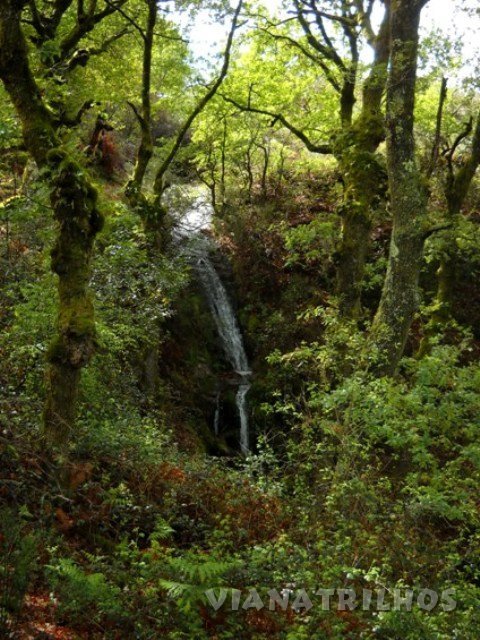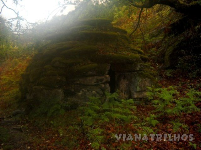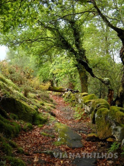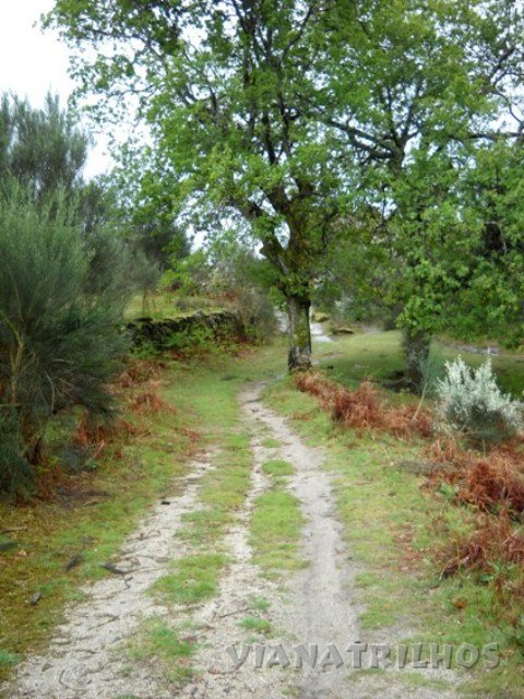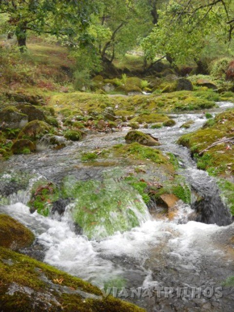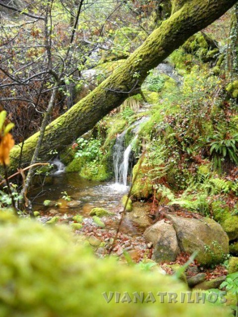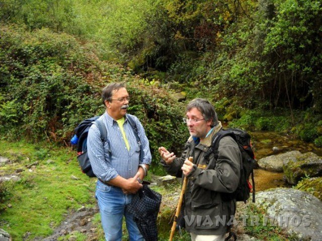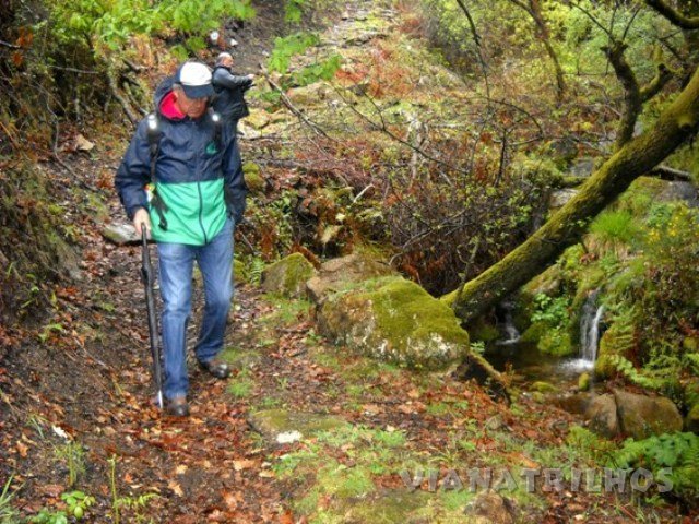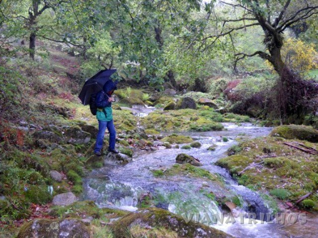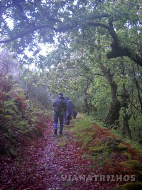 Junto à Capela de S. Lourenço iniciamos a caminhada com chuva que nos acompanhou uma boa parte da manhã, enquanto nos deslocávamos junto a um belo curso de água que, para a seca que temos passado, se apresentava bem caudaloso. O tempo, menos agradável era bem compensado com a beleza do bosque por onde caminhávamos.