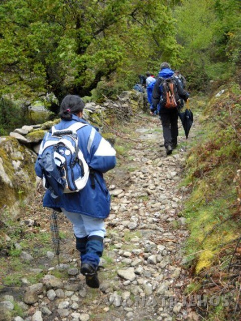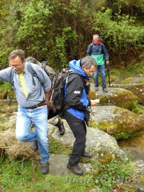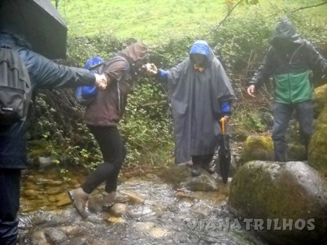 Quando a certa altura tivemos que passar de uma margem para a outra do rio e, devido ao seu caudal, o grupo uniu esforços e tratou de, com a ajuda de várias pedras recolhidas nas redondezas, facilitar a passagem a todos sem indesejadas quedas na água.