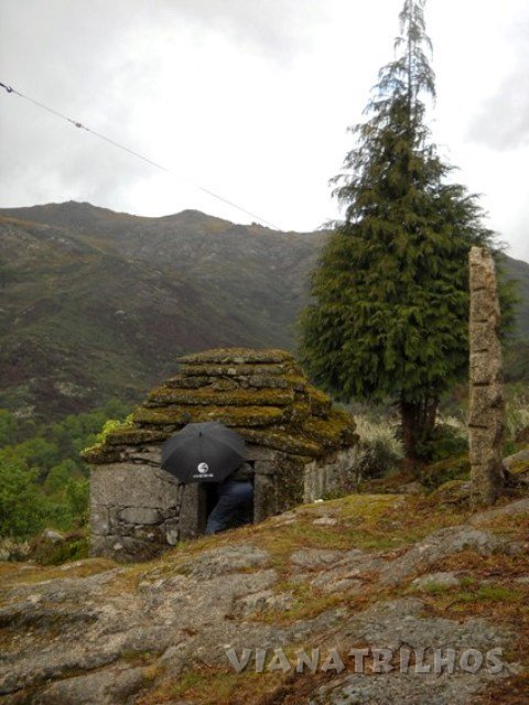Depois de uma última subida acentuada e quando estávamos a cerca de 500 metros do fim fomos surpreendidos por uma forte bátega de água, acompanhada de algum granizo. Sorte nossa que deparamos com um abrigo protector.