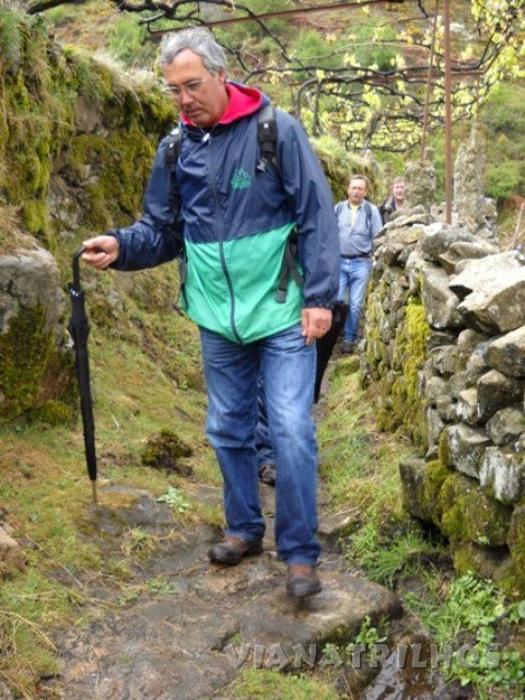 Entretanto o tempo melhorou, dispensando os guarda chuvas, e lá fomos andando com o terreno a apresentar-se bastante escorregadio, mas sem provocar consequências de maior.