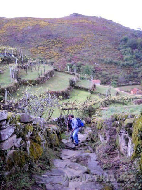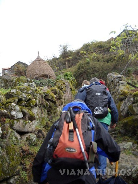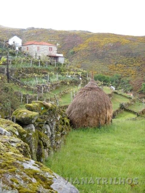 Depois de vencida uma pequena subida atingimos o Lugar de Oucias, na vizinha freguesia de Carralcova, com algumas boas recuperações de casas para turismo rural.