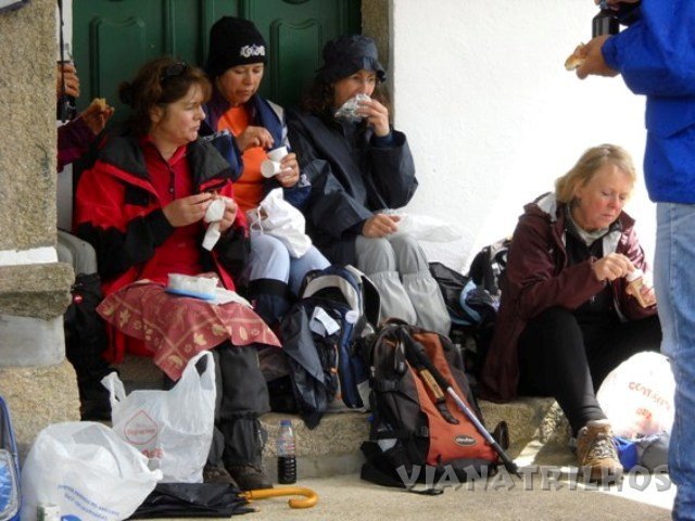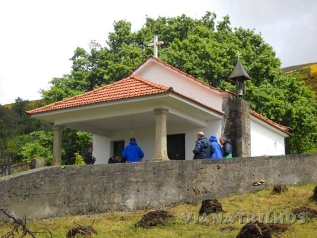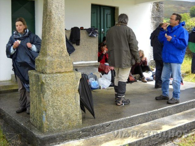 Retomada a marcha rapidamente atingimos a Capela de S. Lourenço para, abrigados no seu hall de entrada fazermos a nossa já bem merecida refeição que foi sendo adiada por causa da chuva e também foi facilitada pela quilometragem pequena e pelo ritmo de andamento.
