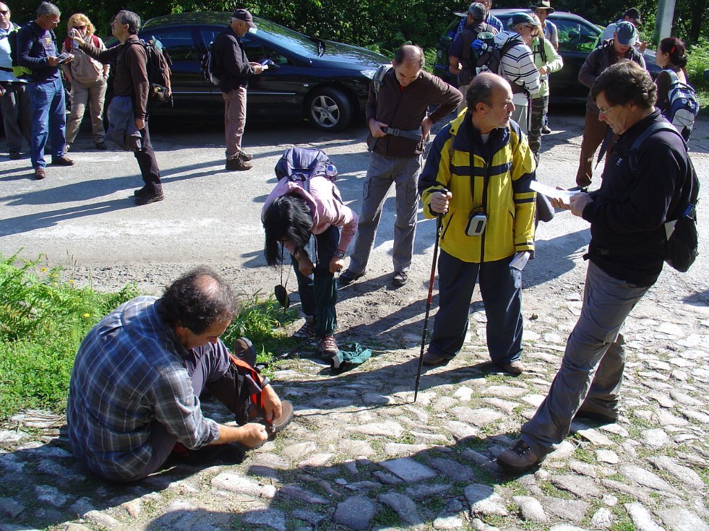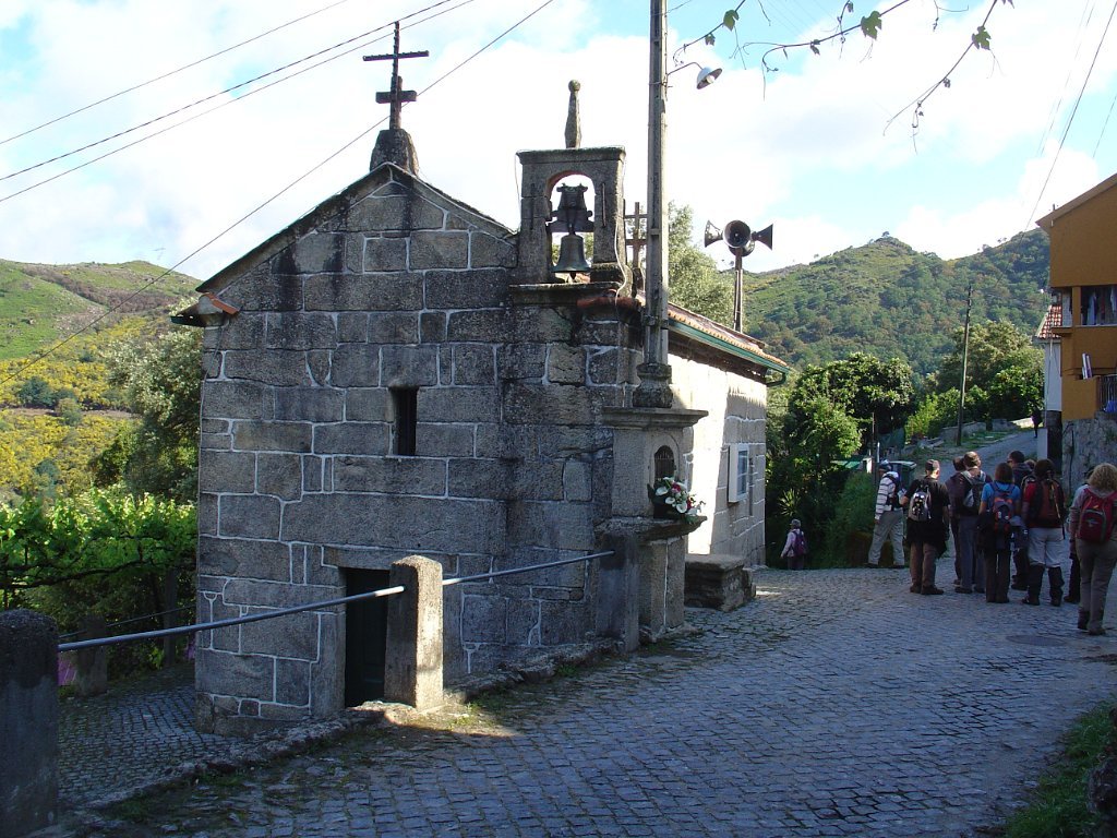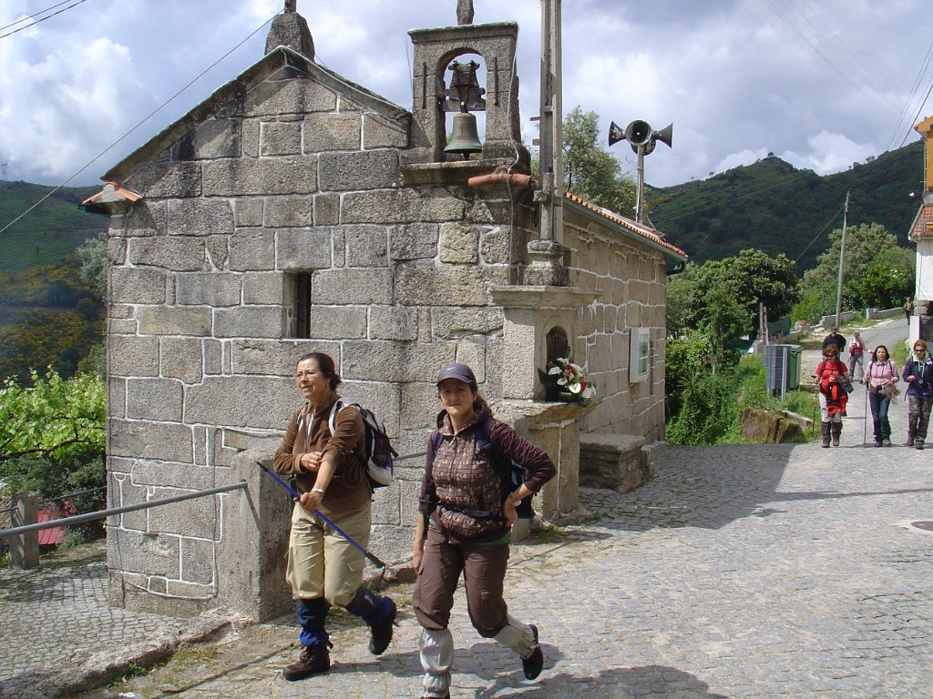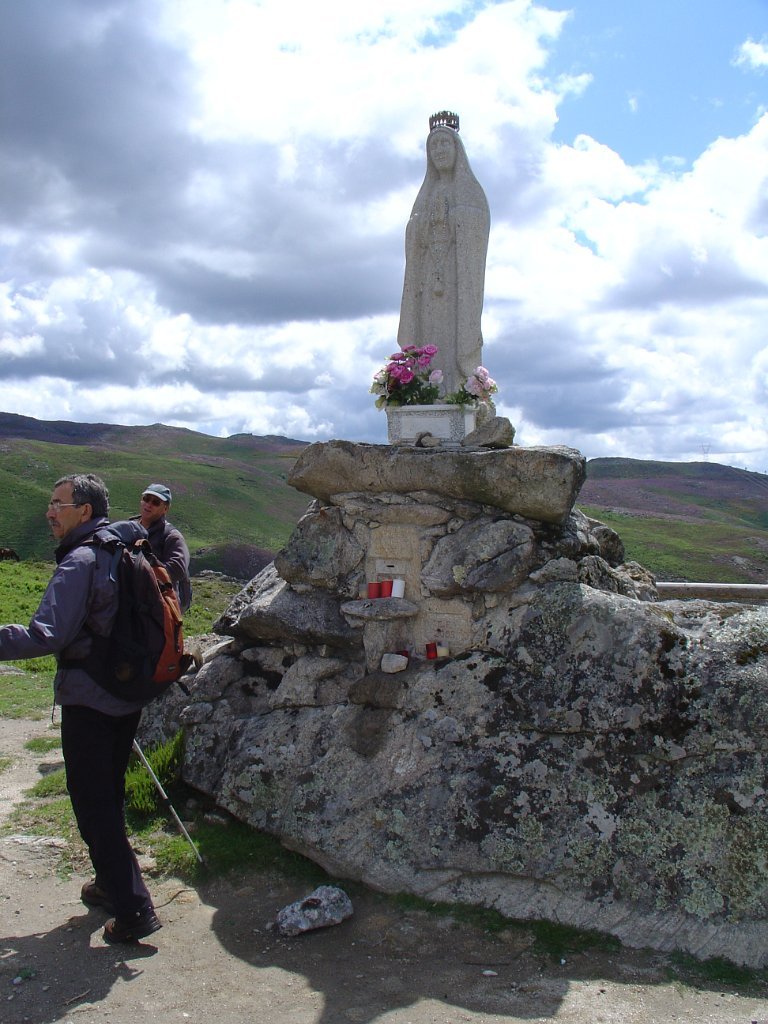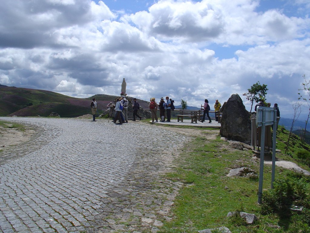 Aprontamo-nos para descer, porém, a foto geral junto à placa turística da Ermida foi tirada e ali ao lado a imagem da senhora do mesmo nome parecia abençoar quem a esta terra vem, mas a descida em paralelo e asfalto até Lourido acabou por aquecer as solas do calçado, com 16 Km andados.