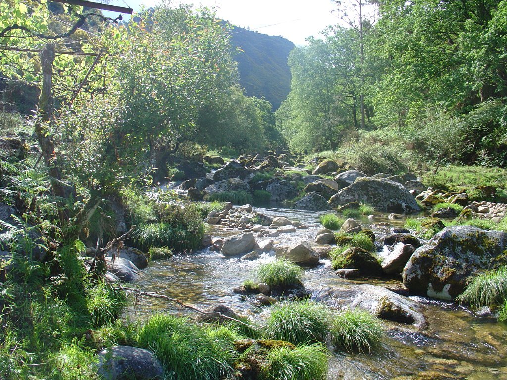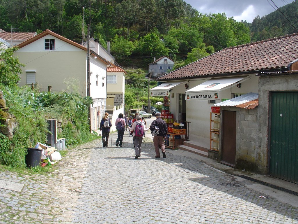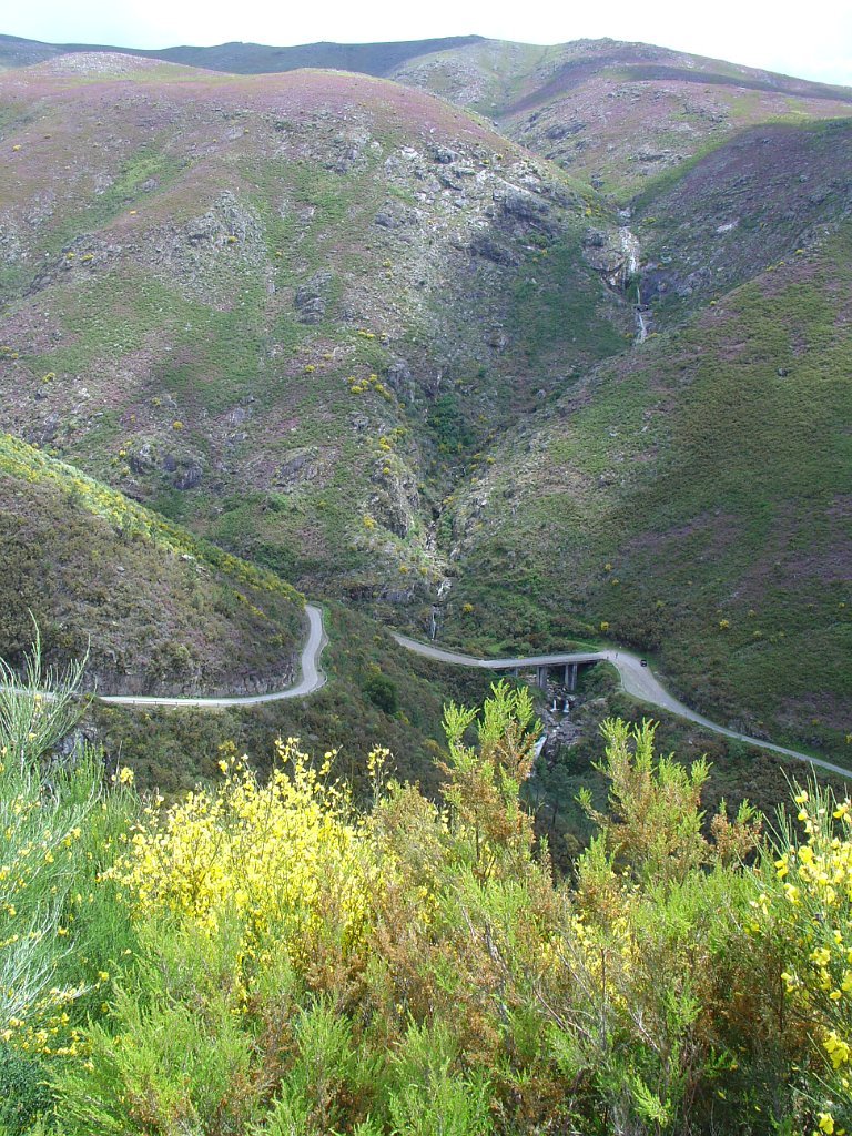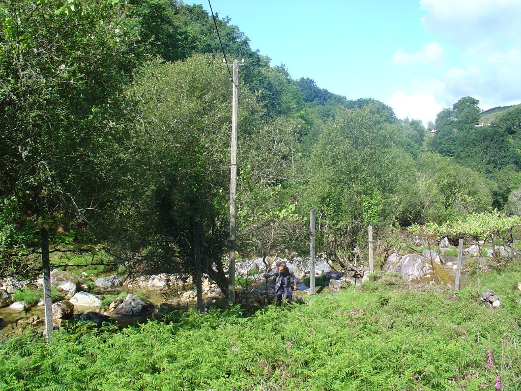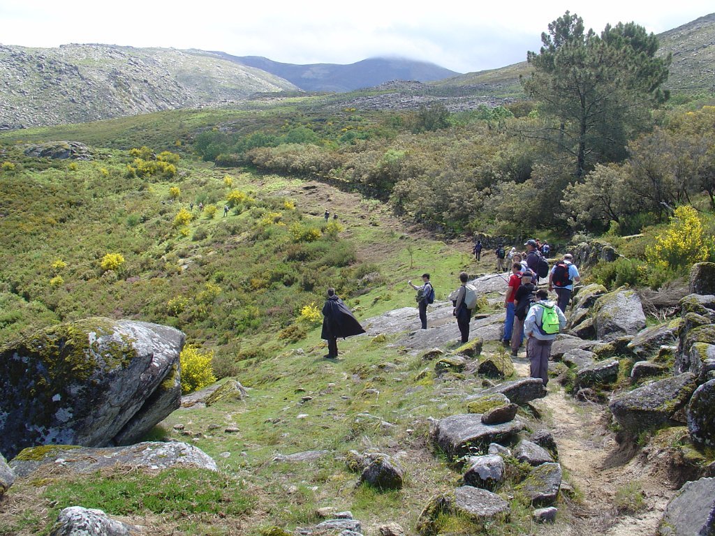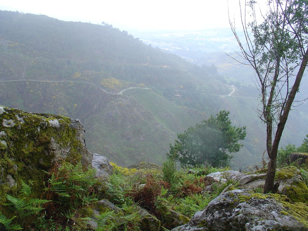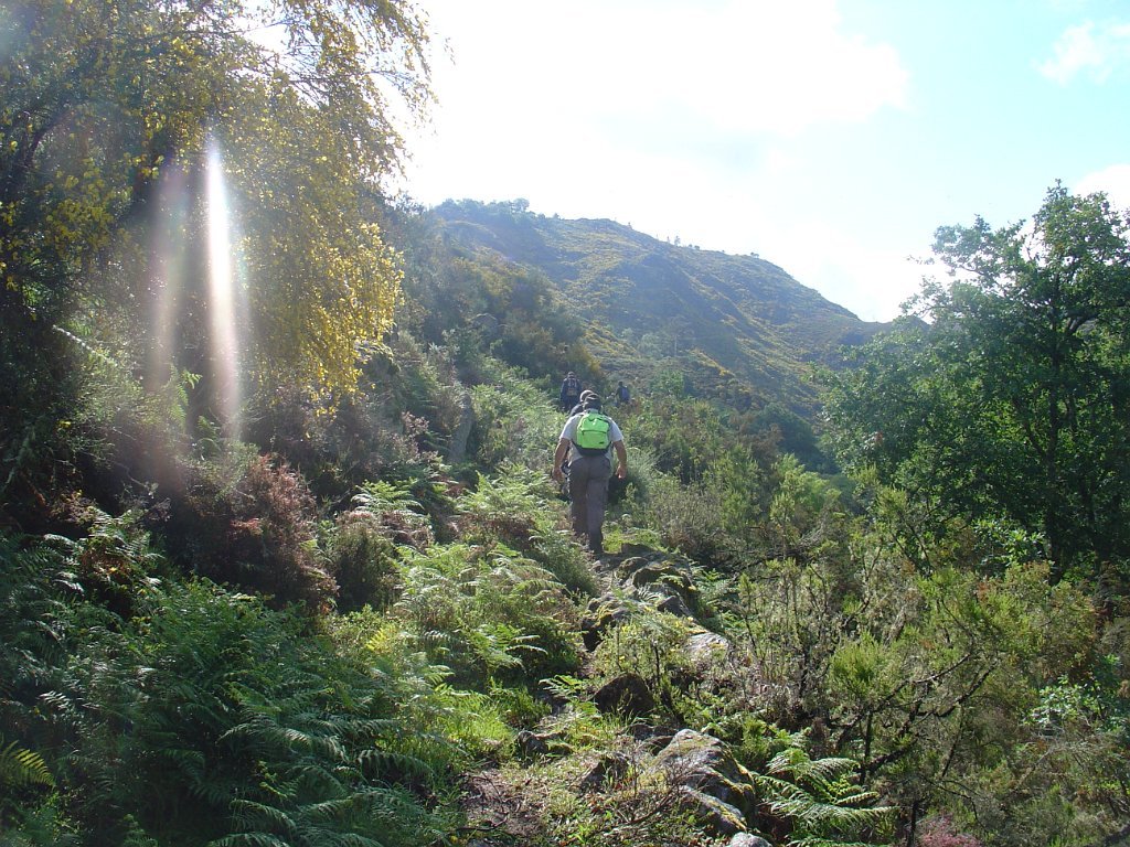 Lá atravessamos nas empondras do Froufe, rio para lá, rio para cá, com quedas de arrepiar qualquer truta, até que apanhamos o trilho original, outrora bem demarcado e limpo de vegetação e por onde passavam os carros de bois reduzidos no tamanho e típicos desta aldeia. Na subida, as giestas abafavam a urze e o tojo, escondendo o carreiro e dificultando a caminhada. Quanto mais subíamos, mais as giestas atrapalhavam a escalada, havendo necessidade de romper o caminho com as mãos…se a catana do Pimenta funcionasse, não havia necessidade…e para azarar o esforço dos caminheiros a chuva não se ficou pela ameaça, passando à molha efectiva, ainda que transitória.
