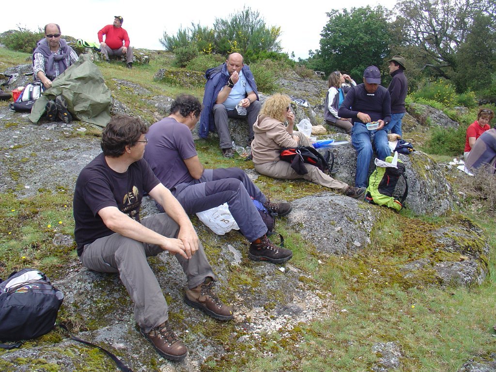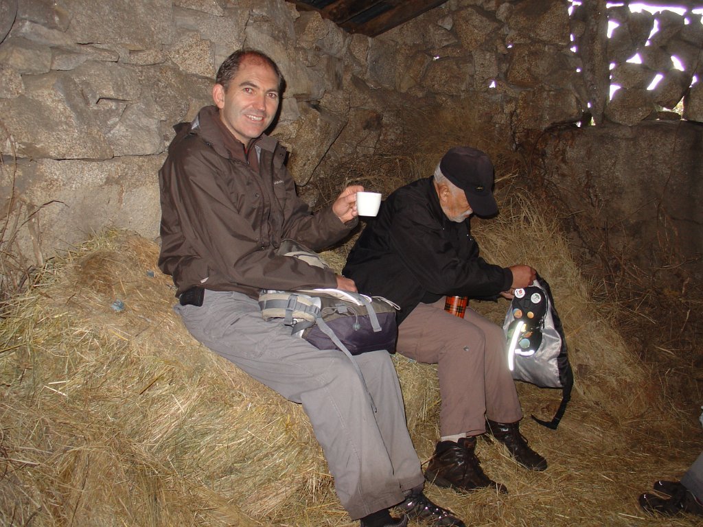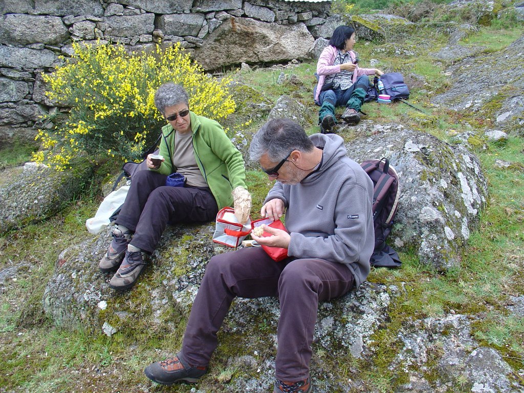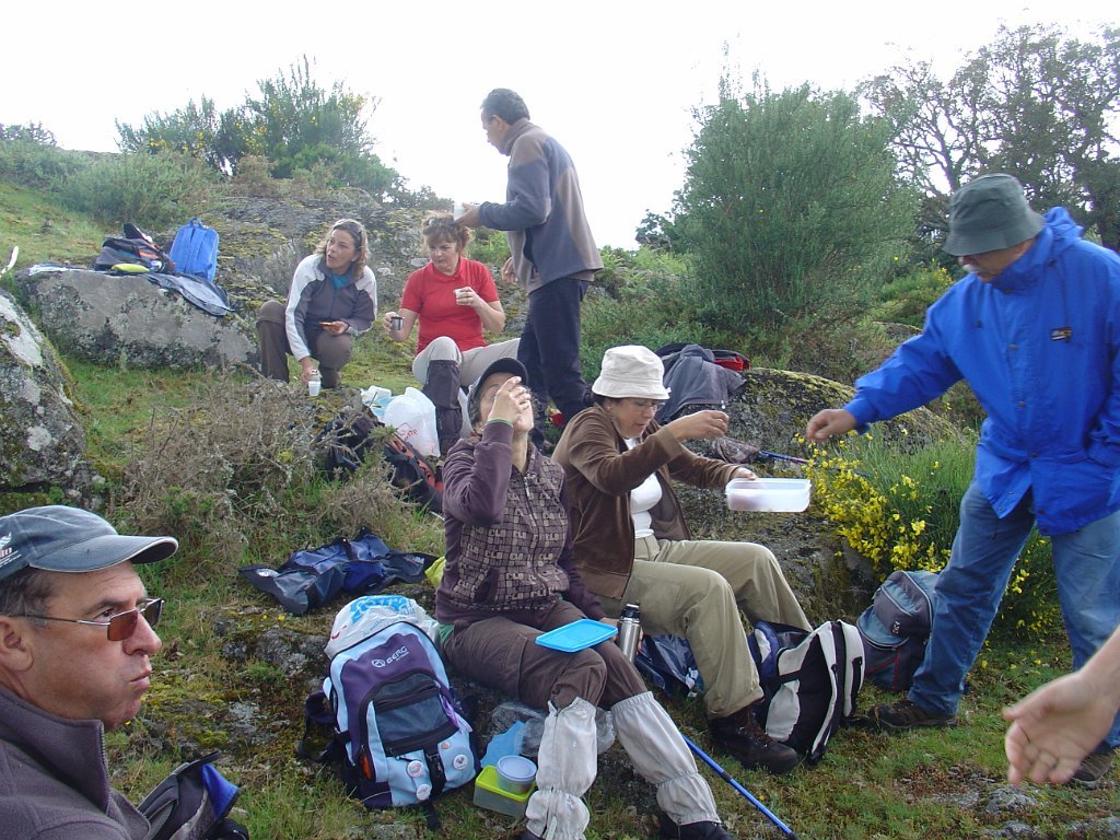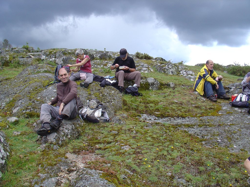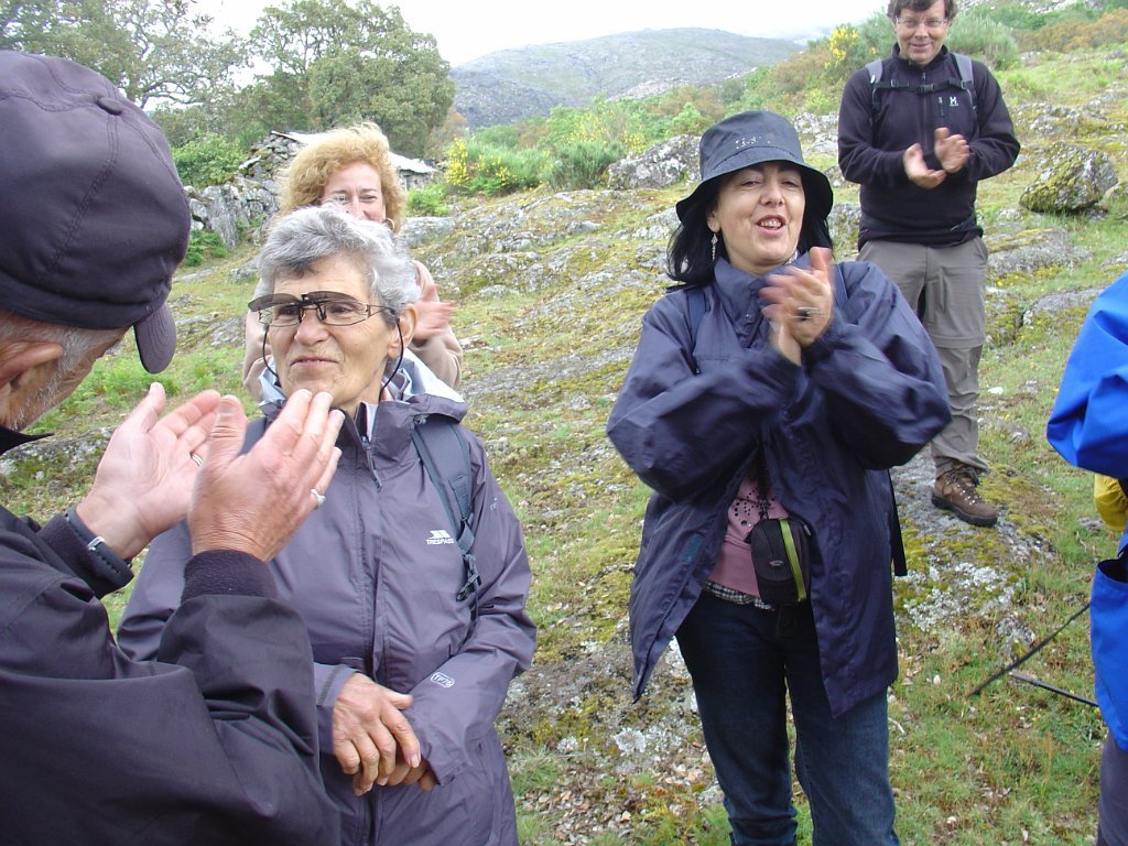 Nuvens negras apressaram a descida para a Ermida, quando se dá a reunião do grupo porque a inglesa veterana e vegetariana Louise fazia anos e junto a uma destelhada casa da branda cantamos os parabéns, com pulmões de montanha, notando-se alguma emoção na sua frieza de temperamento.