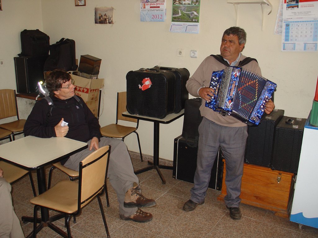A visita ao café do Carvalhal, outrora mais tasca, não podia faltar. O afamado invisual tocador de concertina, com renome além-fronteiras, proporcionou a todo o grupo a audição de três modinhas de folclore. Em jeito de debandada, demos uma olhadela, passe o termo, ao museu e nele pudemos ver num espaço envidraçado os pré-históricos exemplares da estátua menhir que serve de símbolo heráldico ao brasão da Ermida e a tal pedra dos namorados, a par de alfaias agrícolas que nos anos cinquenta do século passado (XX) eram instrumentos de trabalho.