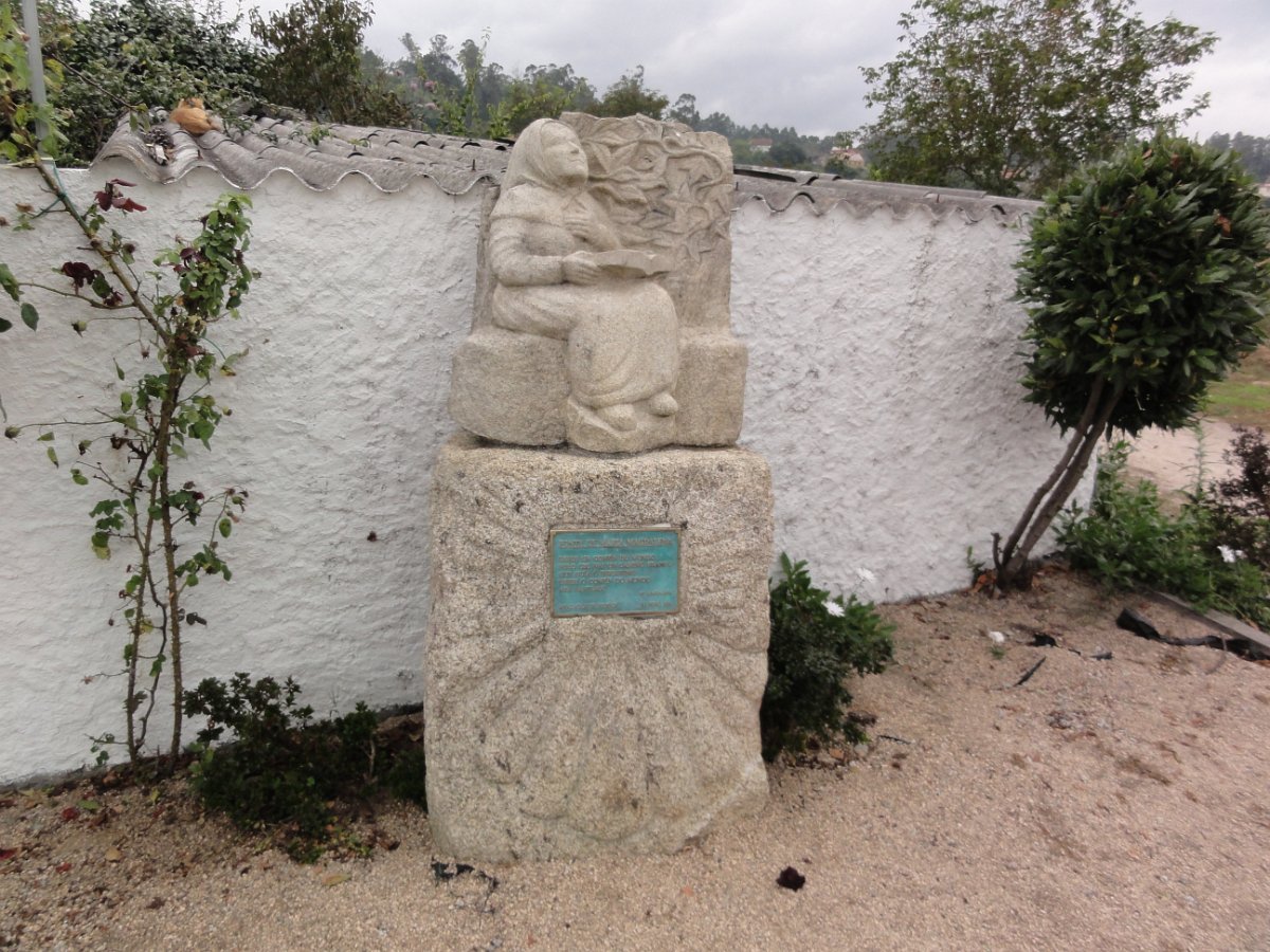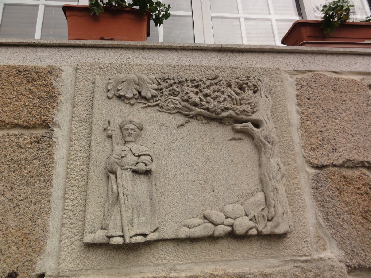Na placa pode ler-se: "caminhante aqui enfermou de morte San Telmo em avril de 1251 pede-lhe que fale com Deus ao favor teu".