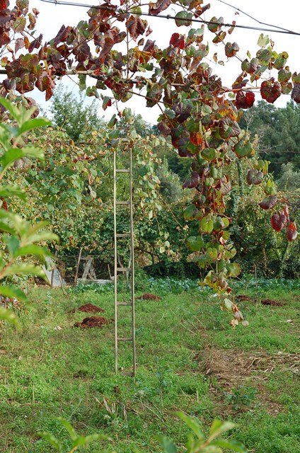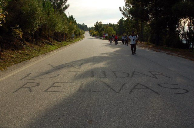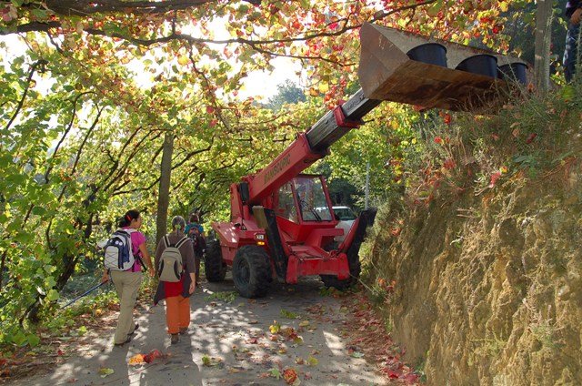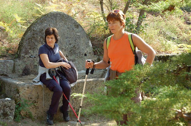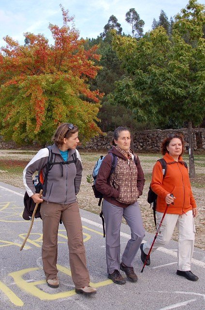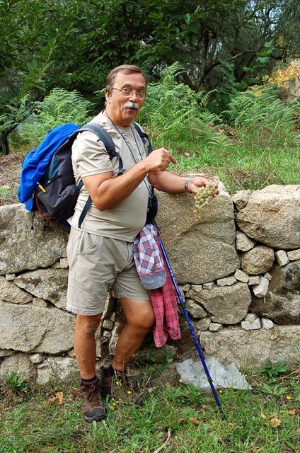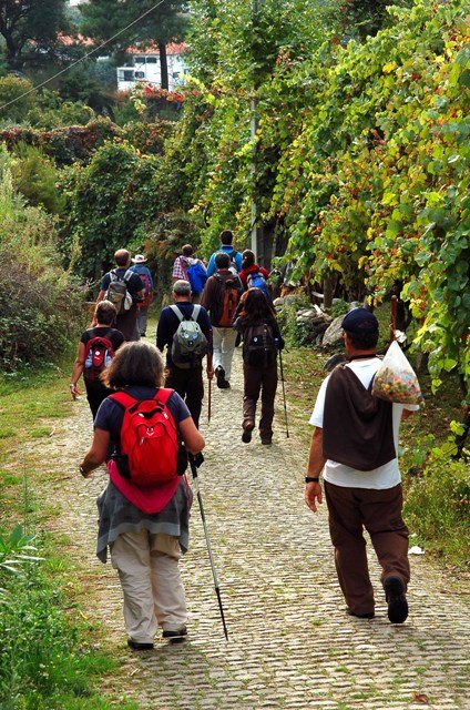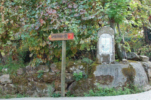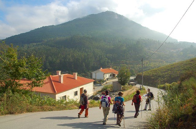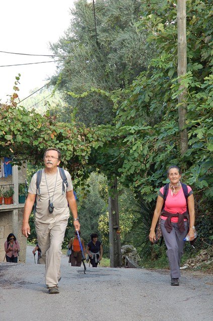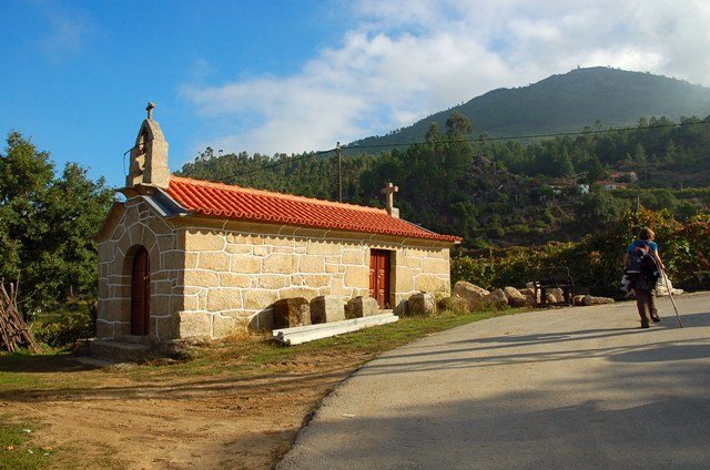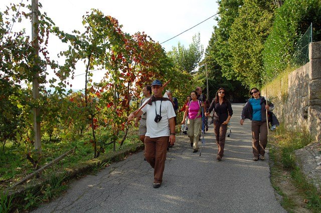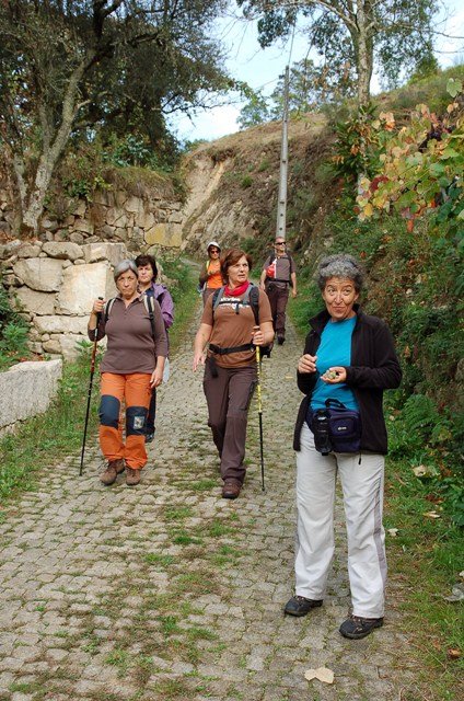 Lá fomos subindo através de caminhos antigos, passando ao lado da aldeia da Serra, Seixos Brancos e Trigal, para mais á frente já na aldeia de Campos passarmos pela pequena capela de S. Gonçalo. Até este ponto a subida foi feita suavemente por entre os citados núcleos urbanos onde pudemos apreciar toda a azáfama dos populares nas tradicionais vindimas, já se sentindo no ar o característico cheiro do amanho da uva.