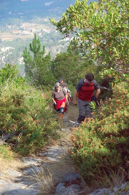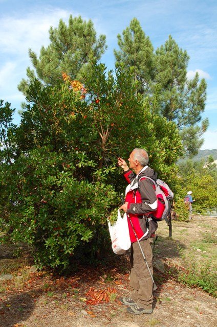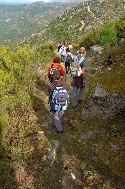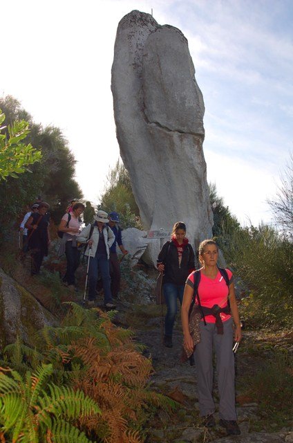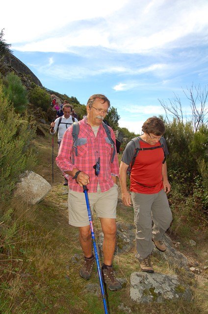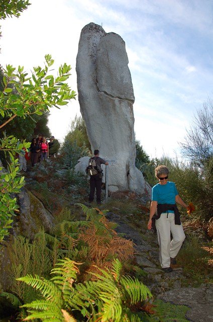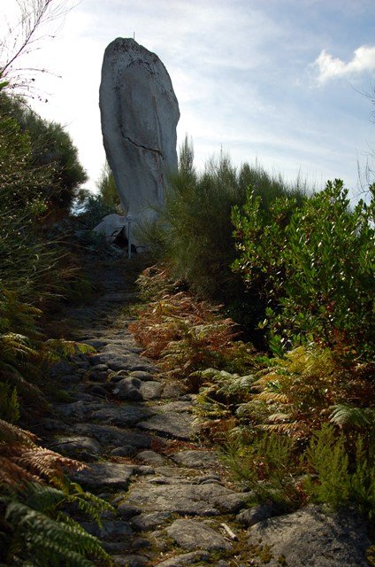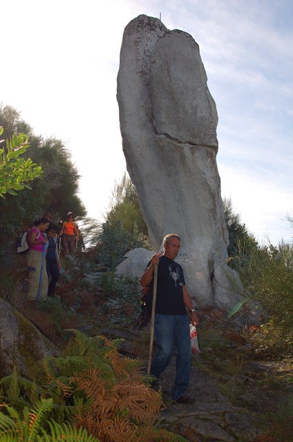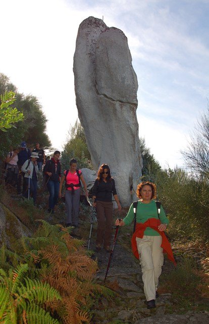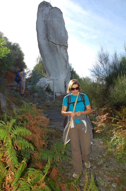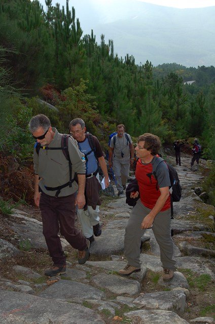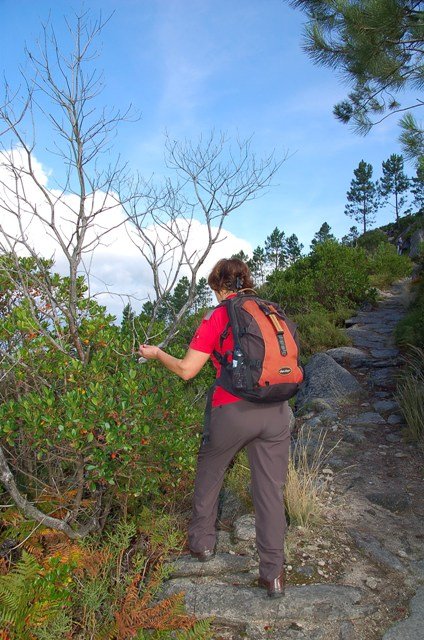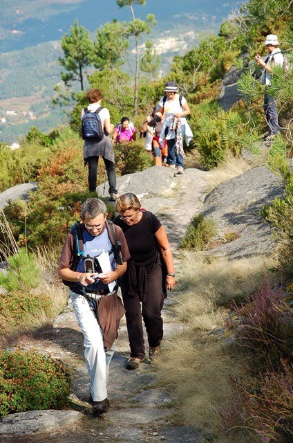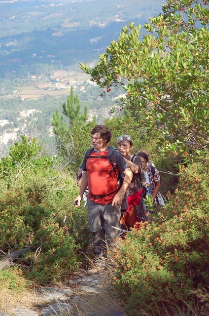 Passamos pelo local da Garganta dos Palhaços, apanhamos logo depois uma calçada de peregrinos que nos levou pela Pedra Alta, monumento geológico (Megalitico) de grande porte. Pelo caminho todos se iam entretendo na apanha de medronhos pois era grande a quantidade existente por toda a encosta do monte.