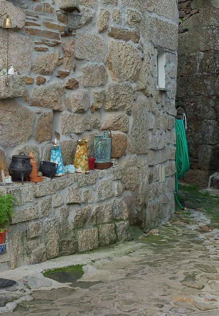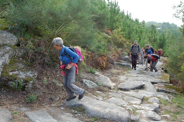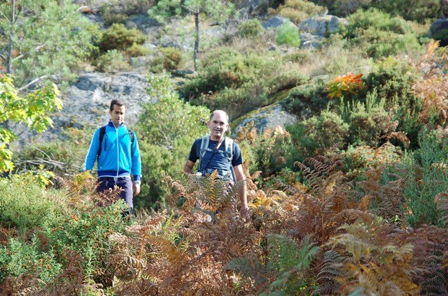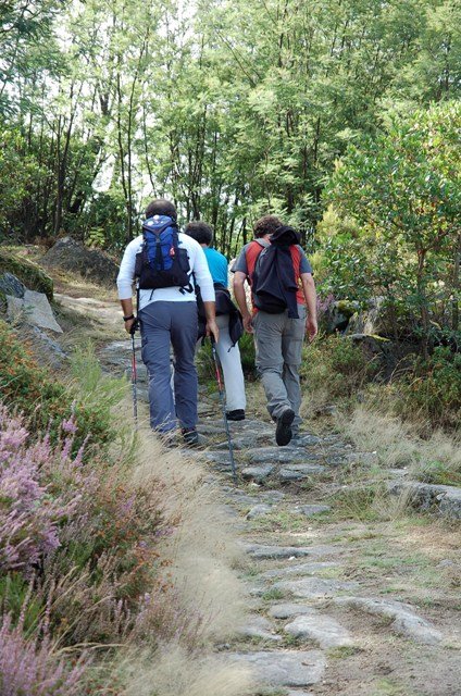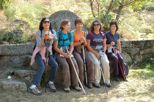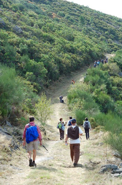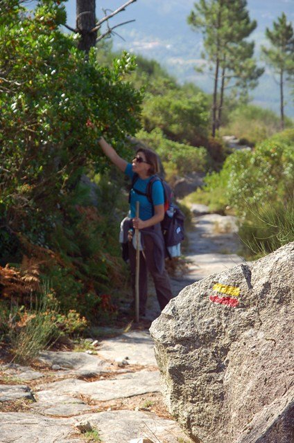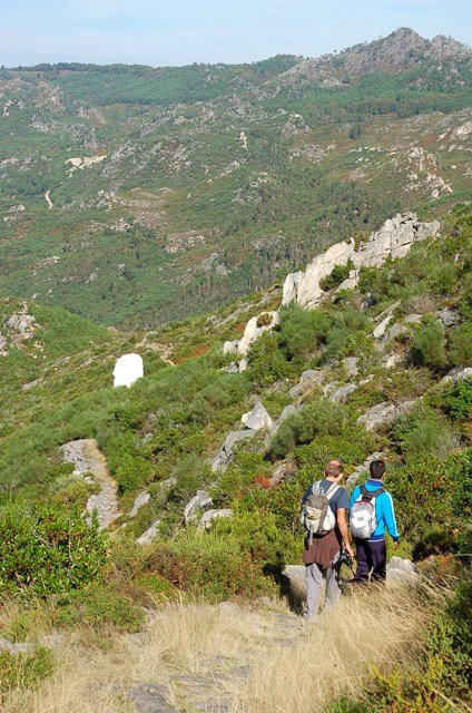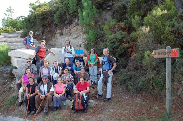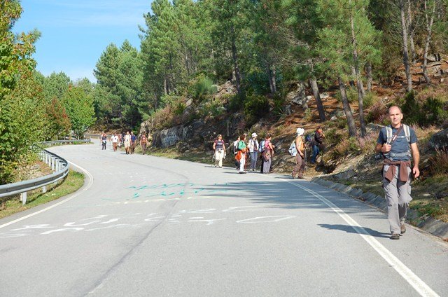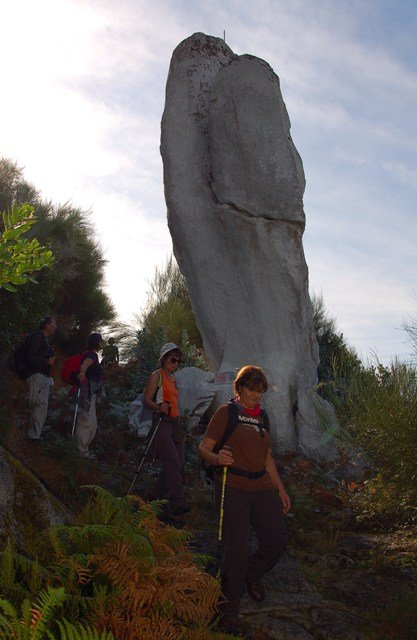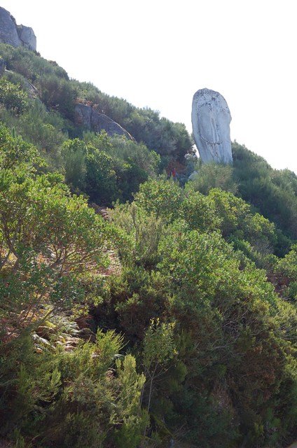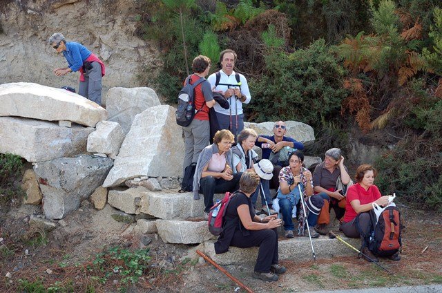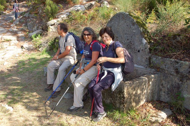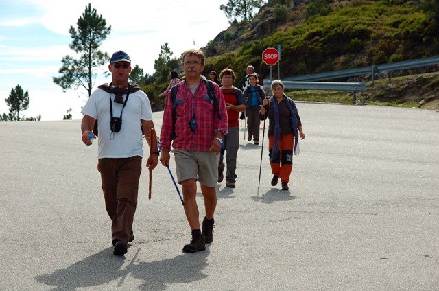Passamos pelo local da Garganta dos Palhaços, apanhamos logo depois uma calçada de peregrinos que nos levou pela Pedra Alta, monumento geológico (Megalitico) de grande porte. Pelo caminho todos se iam entretendo na apanha de medronhos pois era grande a quantidade existente por toda a encosta do monte.
