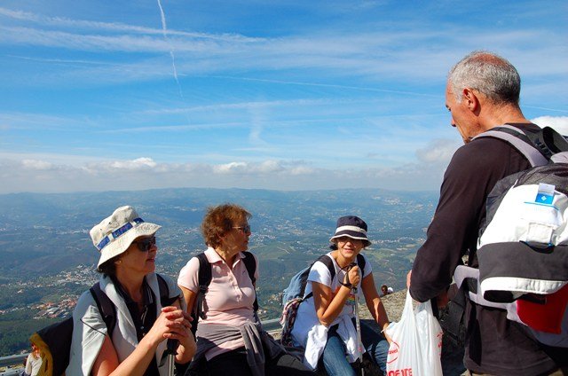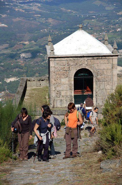 Pelo caminho cruzamos a fonte da Costa, depois as três capelas e após estas, apelando a um redobrar de energias com a visão já do santuário atingirmos finalmente pelas 12H55 o topo do monte. Daqui a vista estendeu-se sobre as paisagens das terras de Basto, serra do Alvão e da serra do Marão.