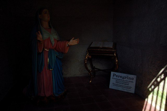 Não é um percurso fácil, por isso peregrinos na tentativa de aliviar um pouco o inevitável cansaço, vão rezando e cantando trovas à Senhora lá do alto.