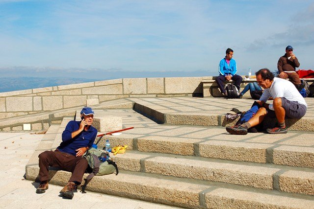 Bem instalados e em amena cavaqueira, telefonando para o Ernesto, Santos e Isabel, parecia que ninguém tinha vontade de iniciar o regresso. Mas o que tem de ser tem muita força, por isso cerca das 14H15 demos inicio á descida tomando para o efeito a vertente Norte do Monte Farinho, descendo da zona do santuário através de umas escadinhas, para mais abaixo tomar o caminho antigo dos peregrinos oriundos das aldeias do Norte.
