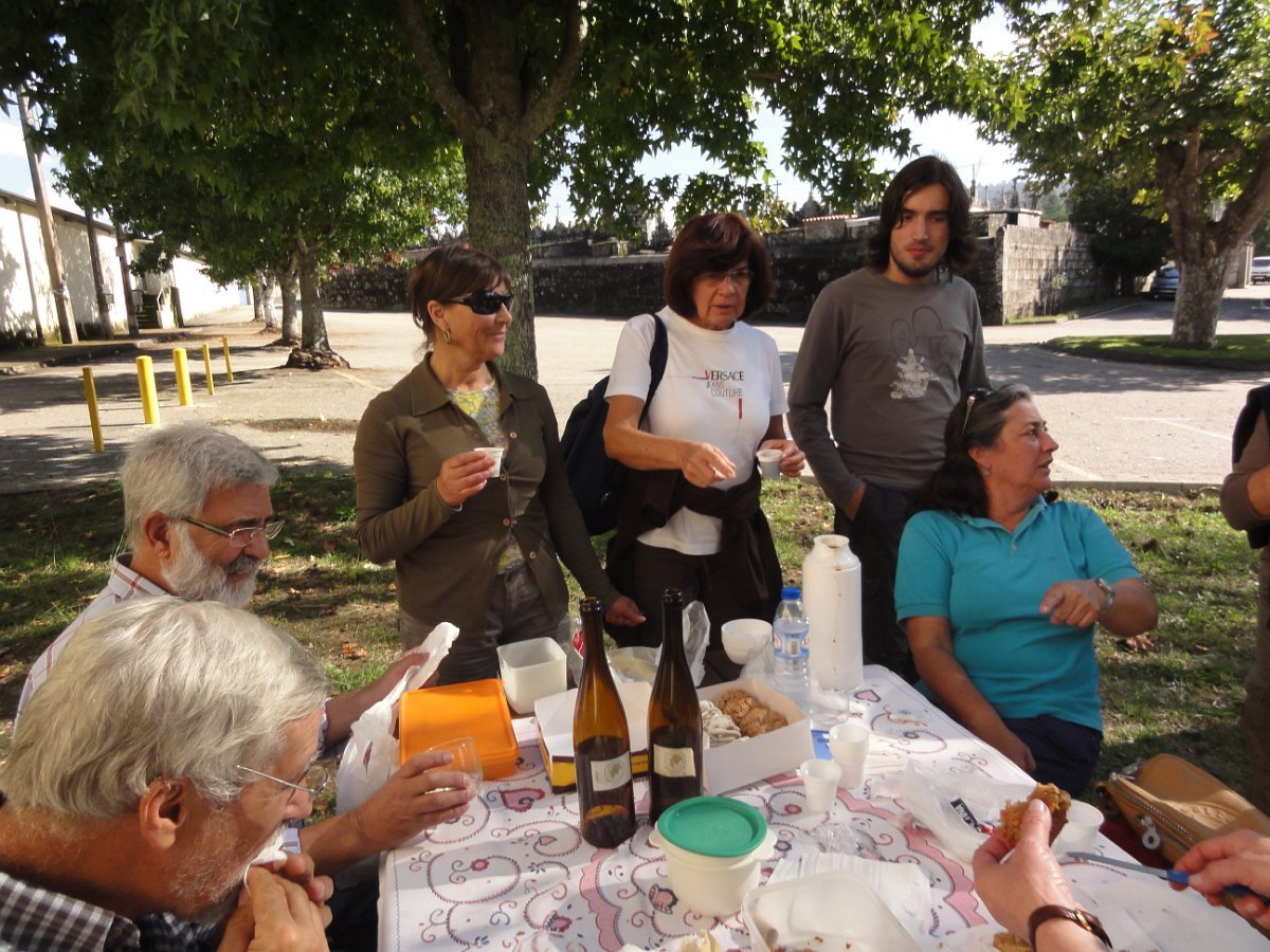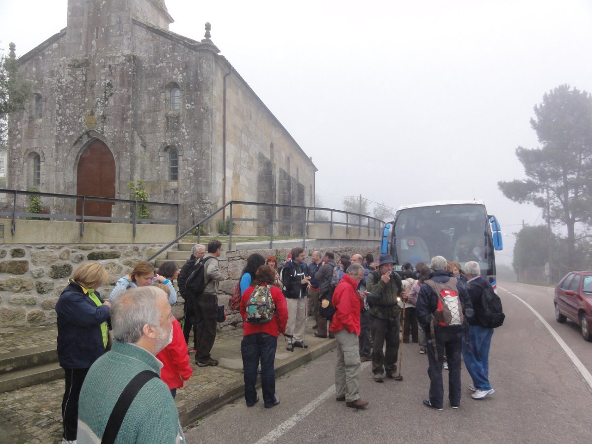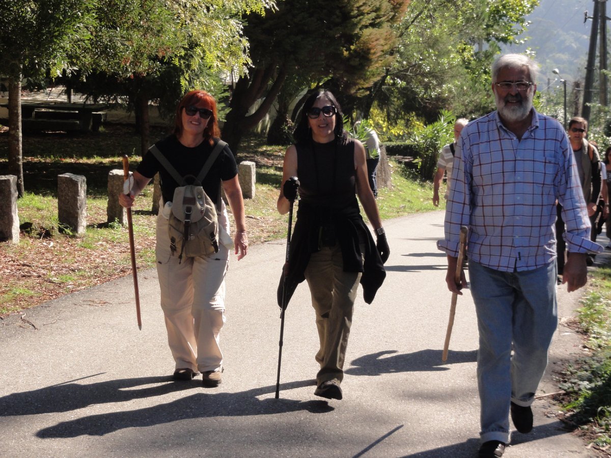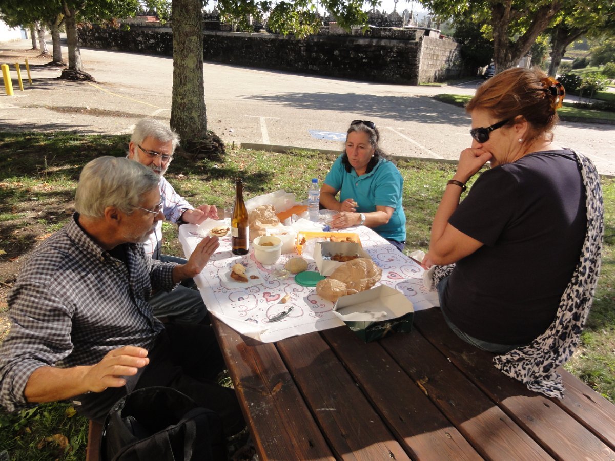 Seguimos pela estrada de Viso e logo viramos à esquerda. Iniciamos uma subida e pouco depois passamos uma zona de recreio com mesas de pedra e uma fonte de boa água - Fonte de Outeiro das Penas, onde está prevista a pausa de almoço.