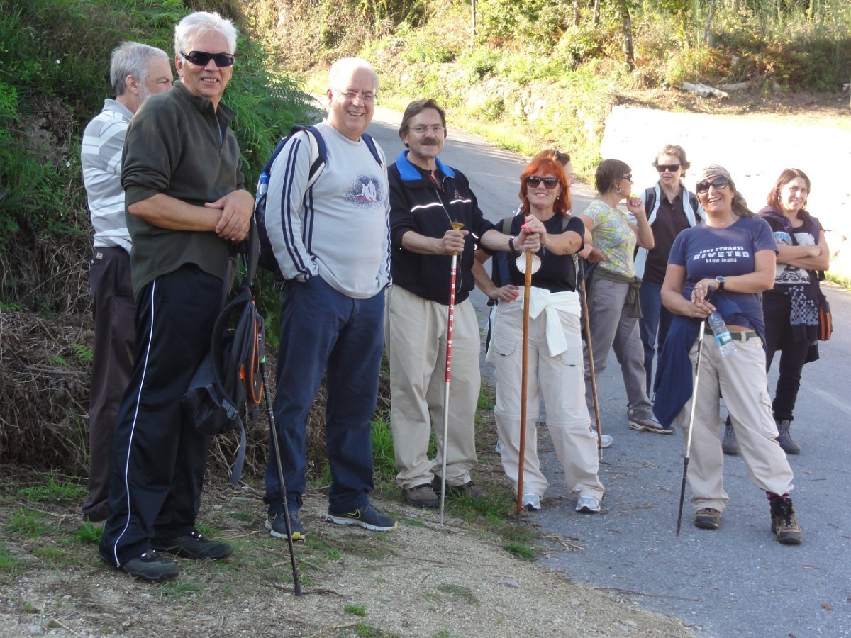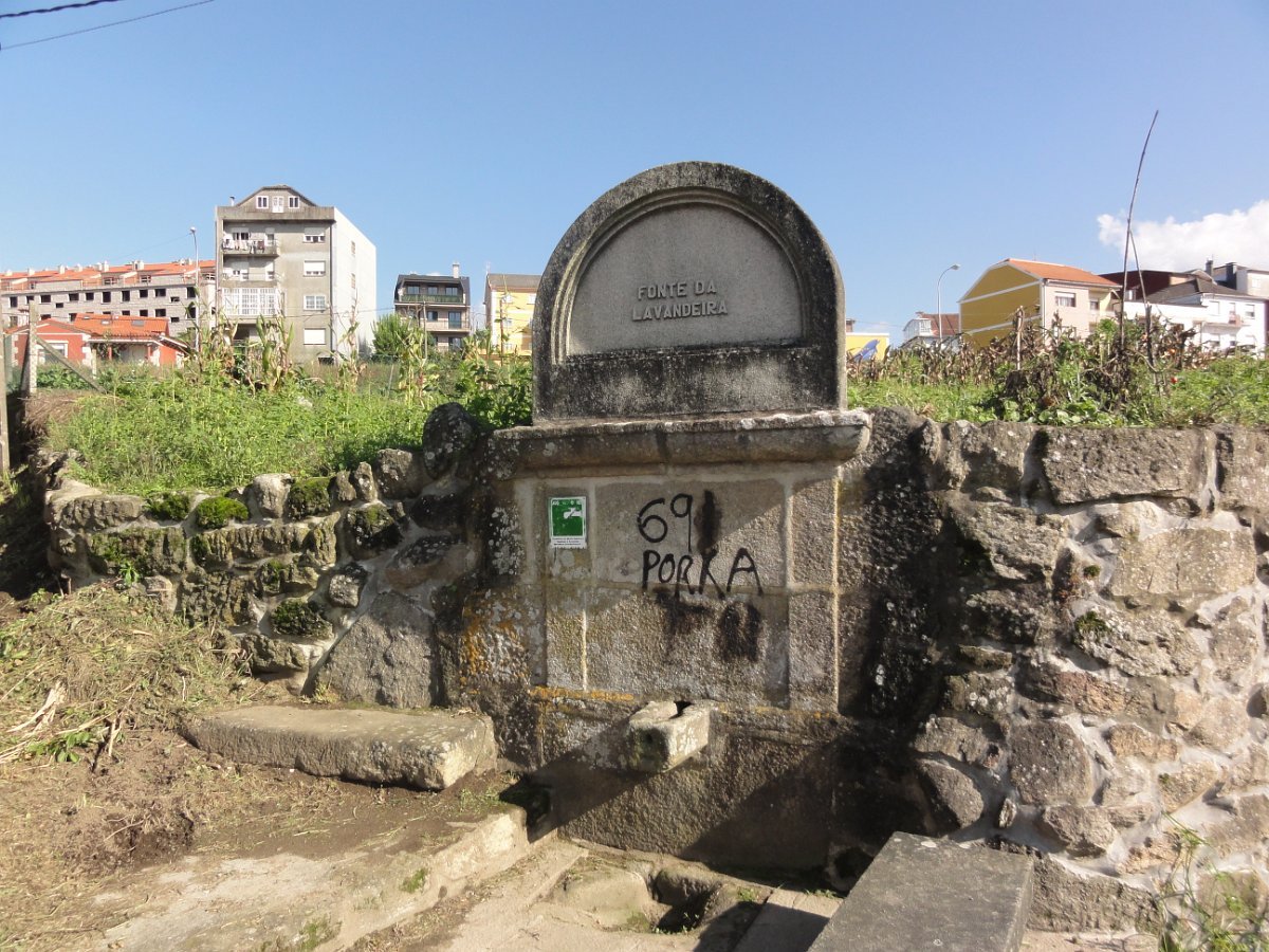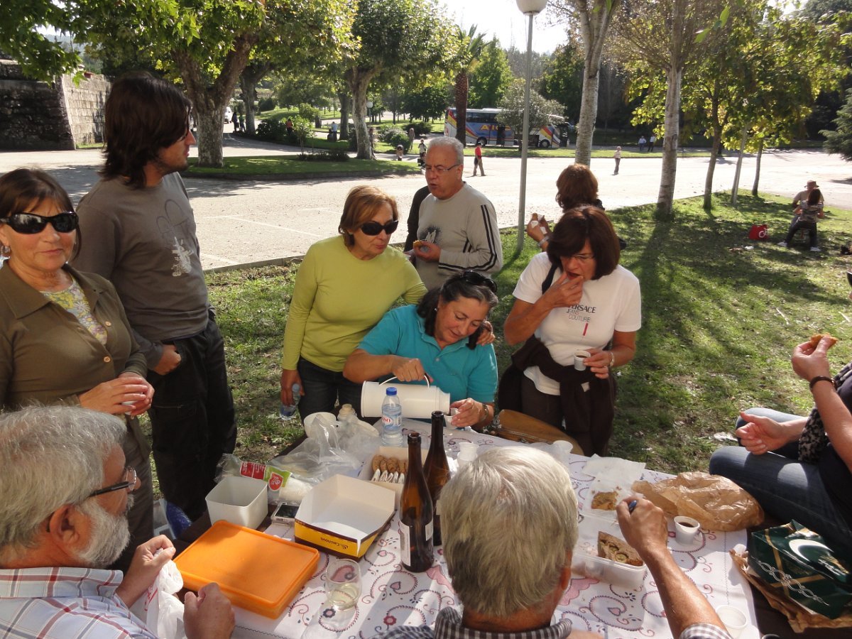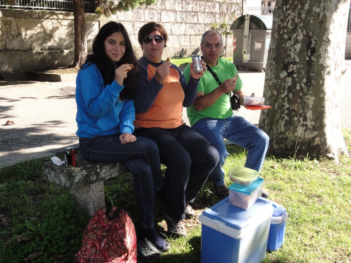 Seguimos pela estrada de Viso e logo viramos à esquerda. Iniciamos uma subida e pouco depois passamos uma zona de recreio com mesas de pedra e uma fonte de boa água - Fonte de Outeiro das Penas, onde está prevista a pausa de almoço.
