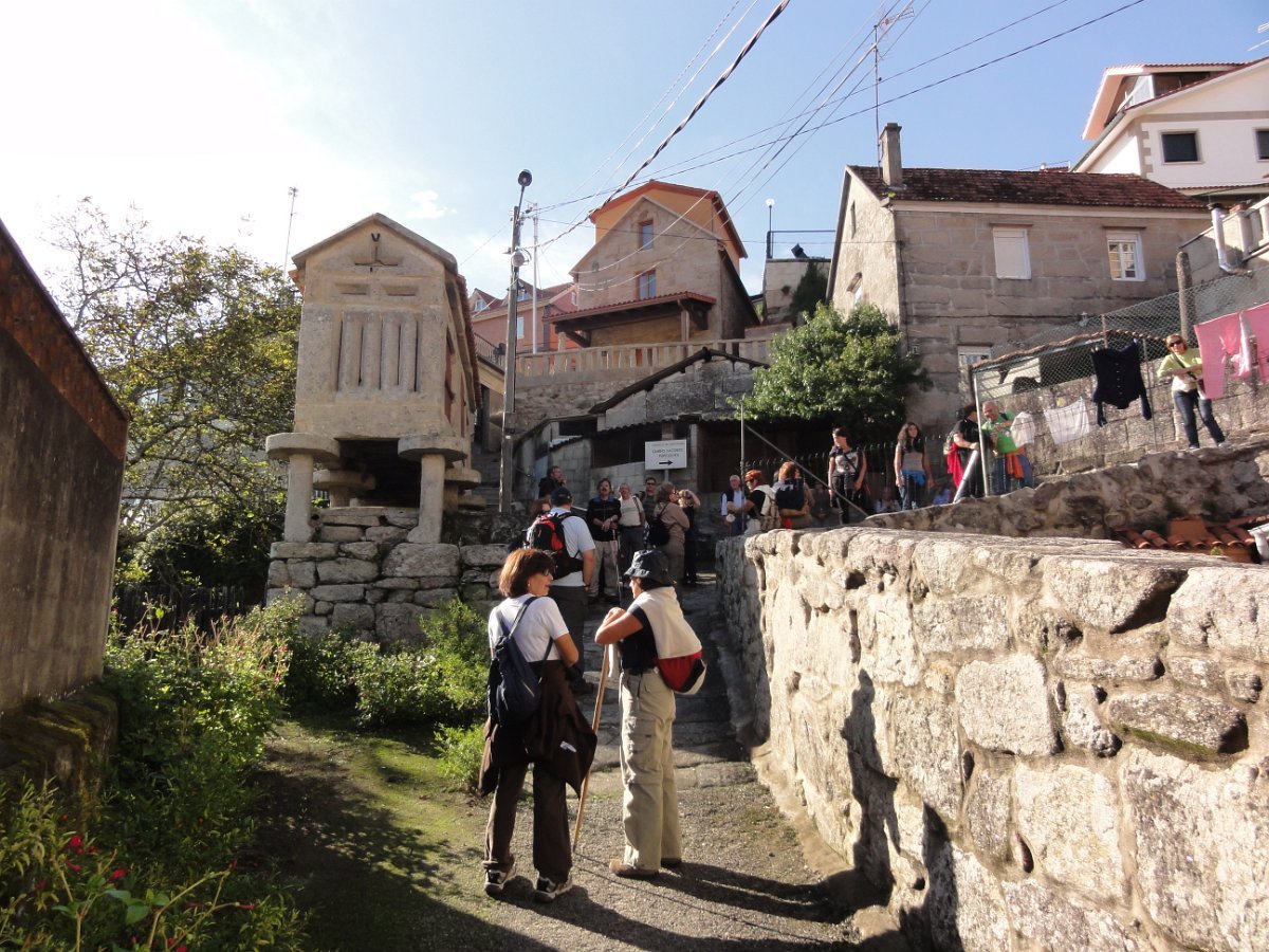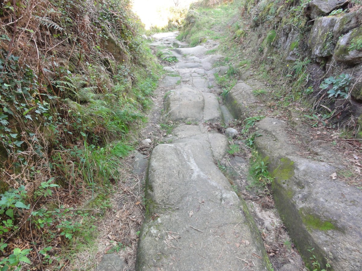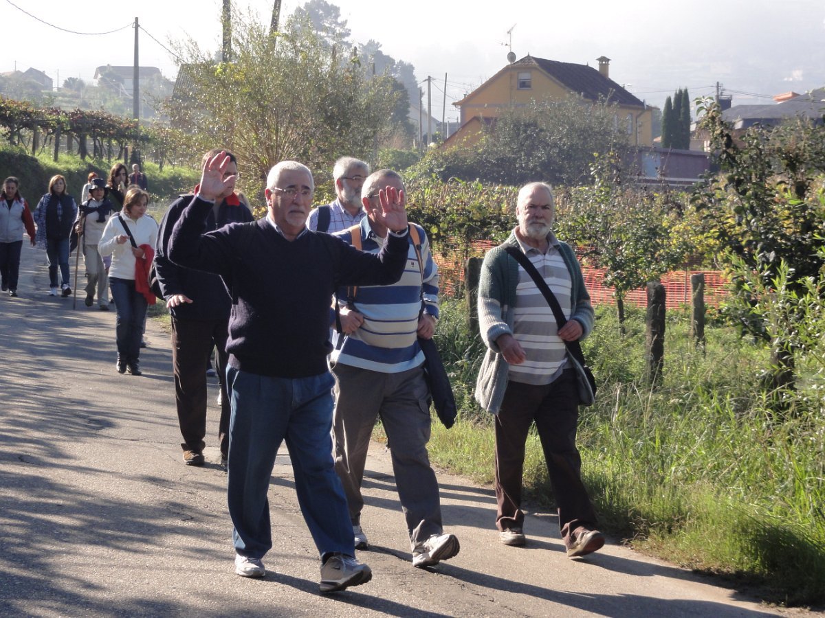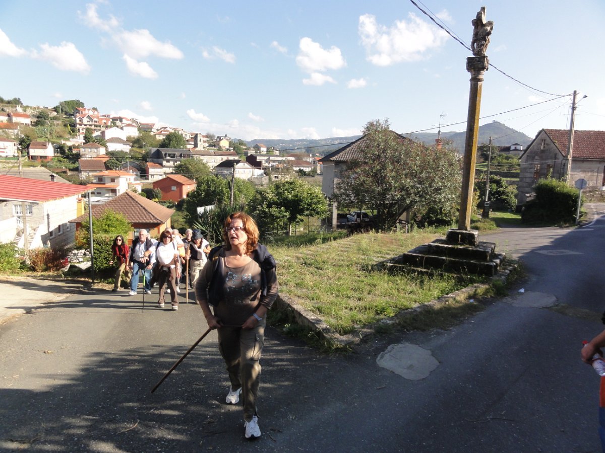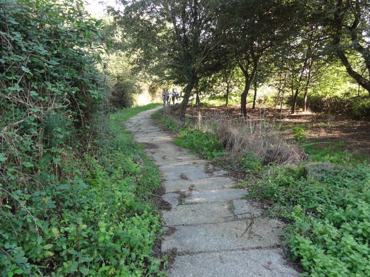 Continuamos a subir, envoltos pelo bosque e chegamos ao cume (Eido dos Mouro) onde podemos observar á nossa esquerda as ruínas de uma antiga “Casa de Postas”. Iniciamos a descida podendo observar a Ría de Vigo e a ilha de San Simón à esquerda, até encontrarmos de novo a N550 que percorremos durante 700 metros, entrando em Arcade que é a pátria das melhores ostras da Galícia e, onde a arquitetura rural da Galícia Sul conjuga como em nenhuma outra parte o sabor campesino com o marinheiro.