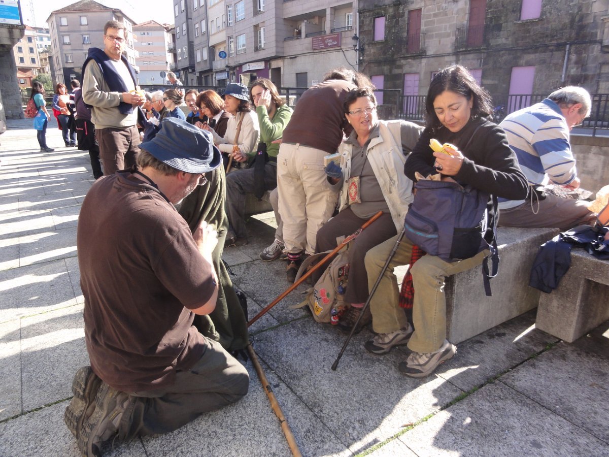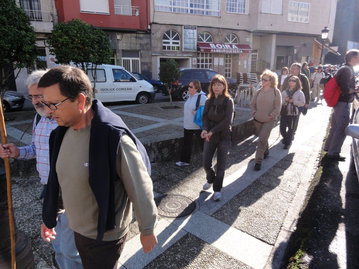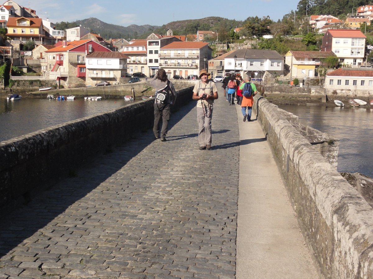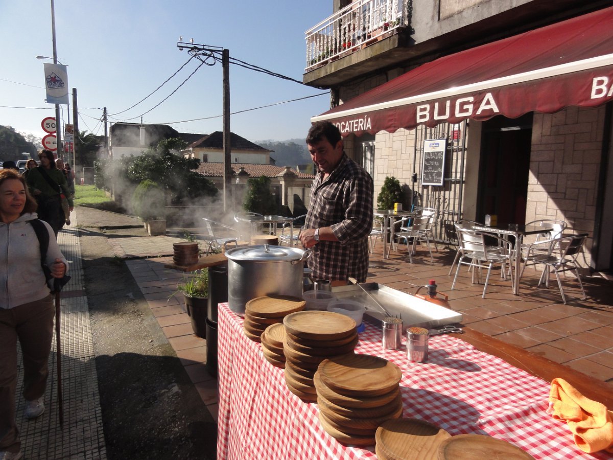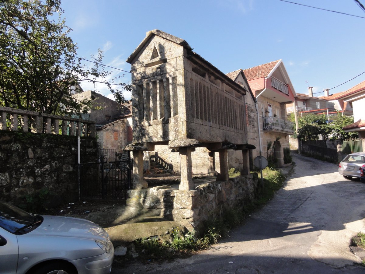 Continuamos a subir, envoltos pelo bosque e chegamos ao cume (Eido dos Mouro) onde podemos observar á nossa esquerda as ruínas de uma antiga “Casa de Postas”. Iniciamos a descida podendo observar a Ría de Vigo e a ilha de San Simón à esquerda, até encontrarmos de novo a N550 que percorremos durante 700 metros, entrando em Arcade que é a pátria das melhores ostras da Galícia e, onde a arquitetura rural da Galícia Sul conjuga como em nenhuma outra parte o sabor campesino com o marinheiro.