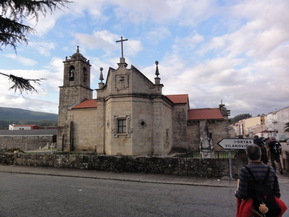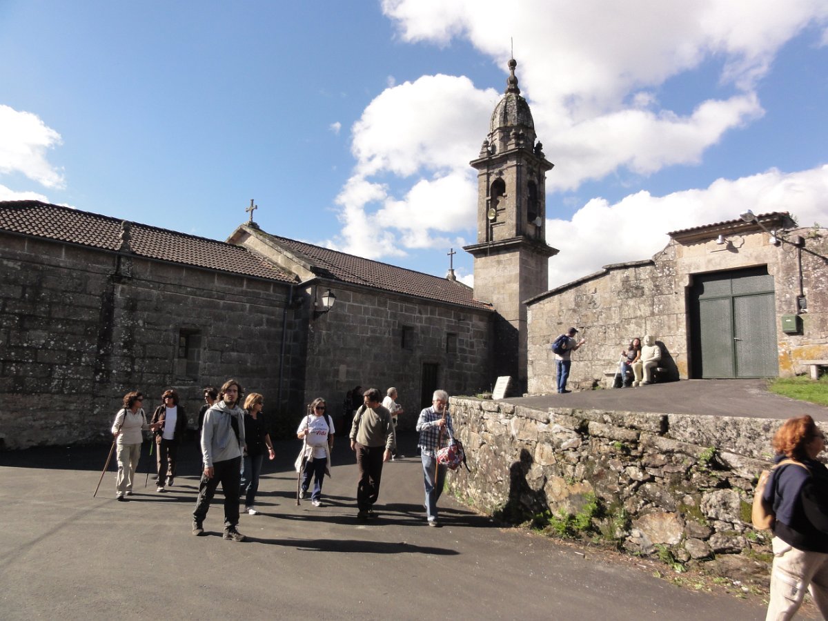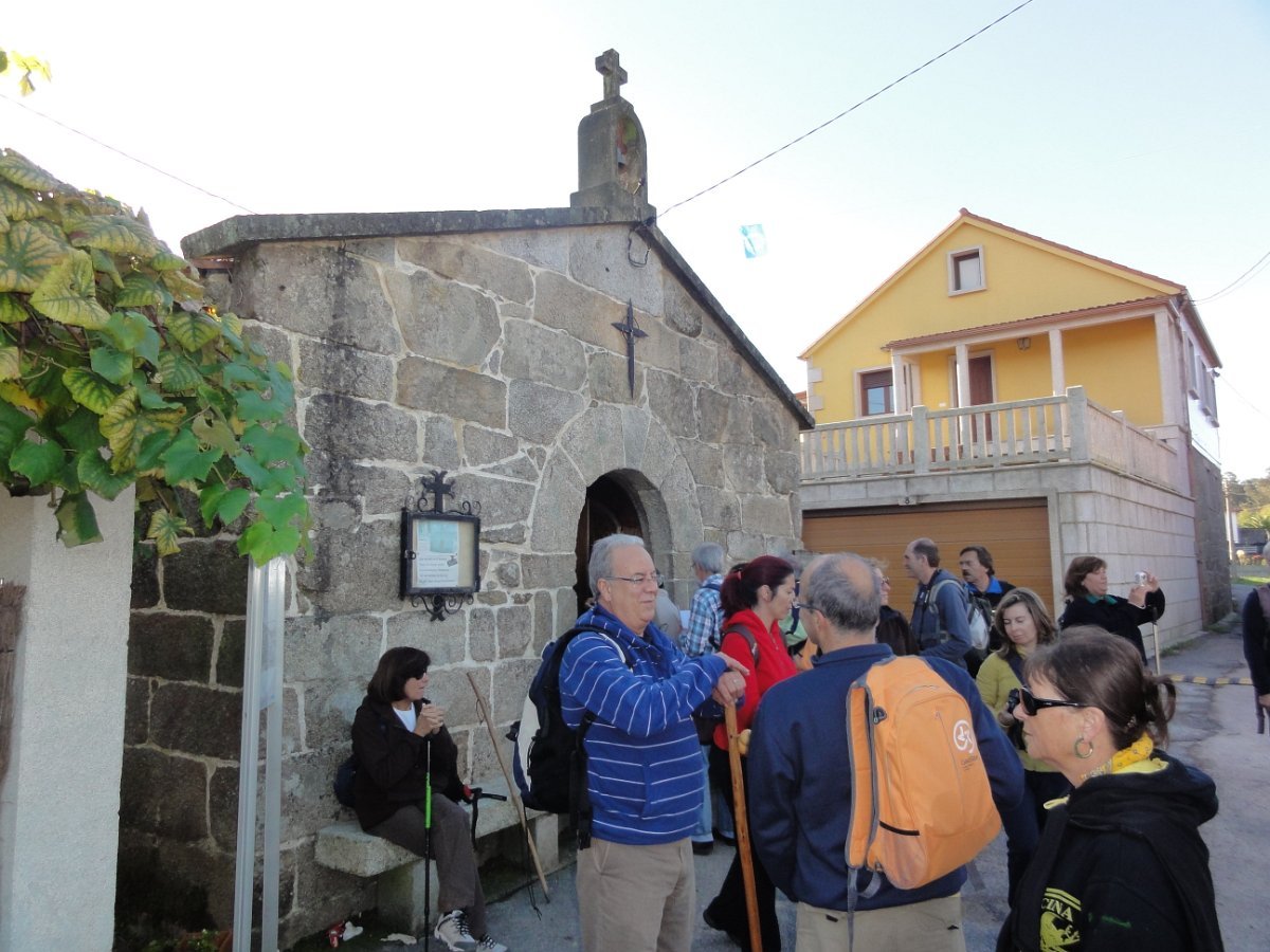 Cruzamos aqui a linha do caminho de ferro por um túnel inferior. Prosseguimos numa suave subida até alcançarmos a Igreja de Santa María de Alba com uma imagem do Apóstolo no cemitério. Estamos próximos do antigo lugar de Goxilde onde o Arcebispo Xelmírez descansou com as suas hostes no caminho de Compostela, depois de efectuar o famoso “Pío Latrocinio” de relíquias em Braga.