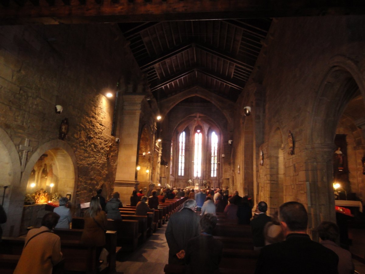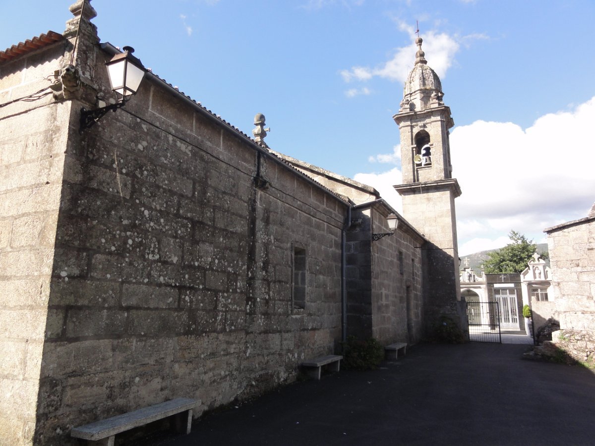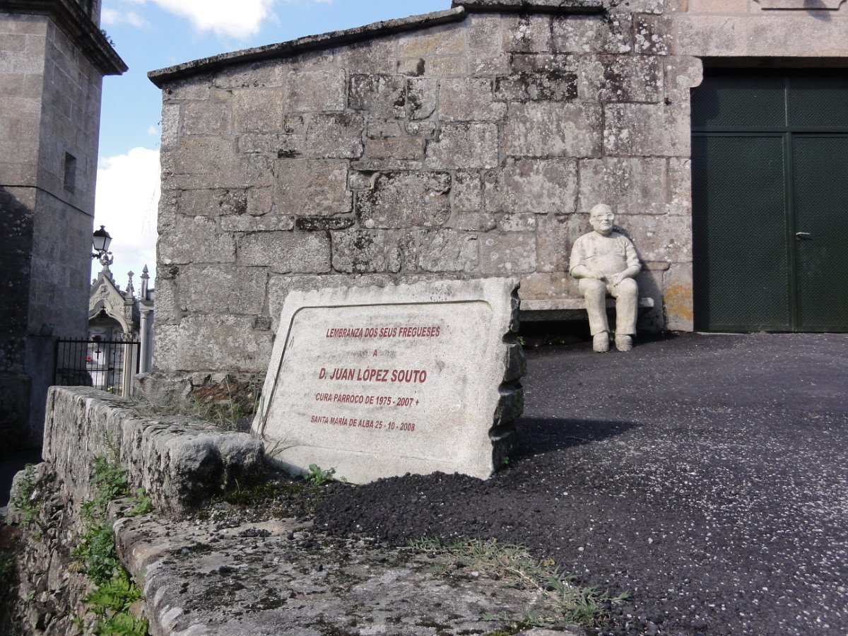 Cruzamos aqui a linha do caminho de ferro por um túnel inferior. Prosseguimos numa suave subida até alcançarmos a Igreja de Santa María de Alba com uma imagem do Apóstolo no cemitério. Estamos próximos do antigo lugar de Goxilde onde o Arcebispo Xelmírez descansou com as suas hostes no caminho de Compostela, depois de efectuar o famoso “Pío Latrocinio” de relíquias em Braga.