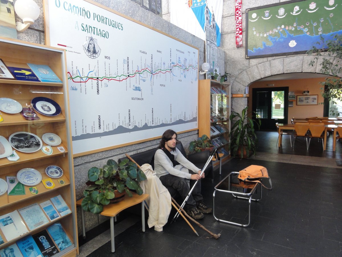 Depois de passarmos sob a linha do caminho de ferro e contornar à direita encontramos, desse mesmo lado, no alto da rampa de veículos o albergue de peregrinos.