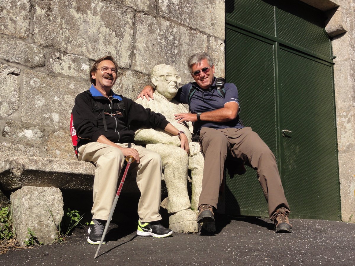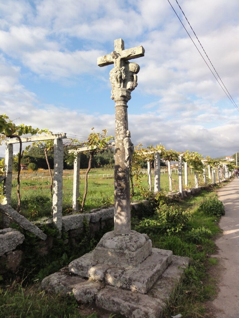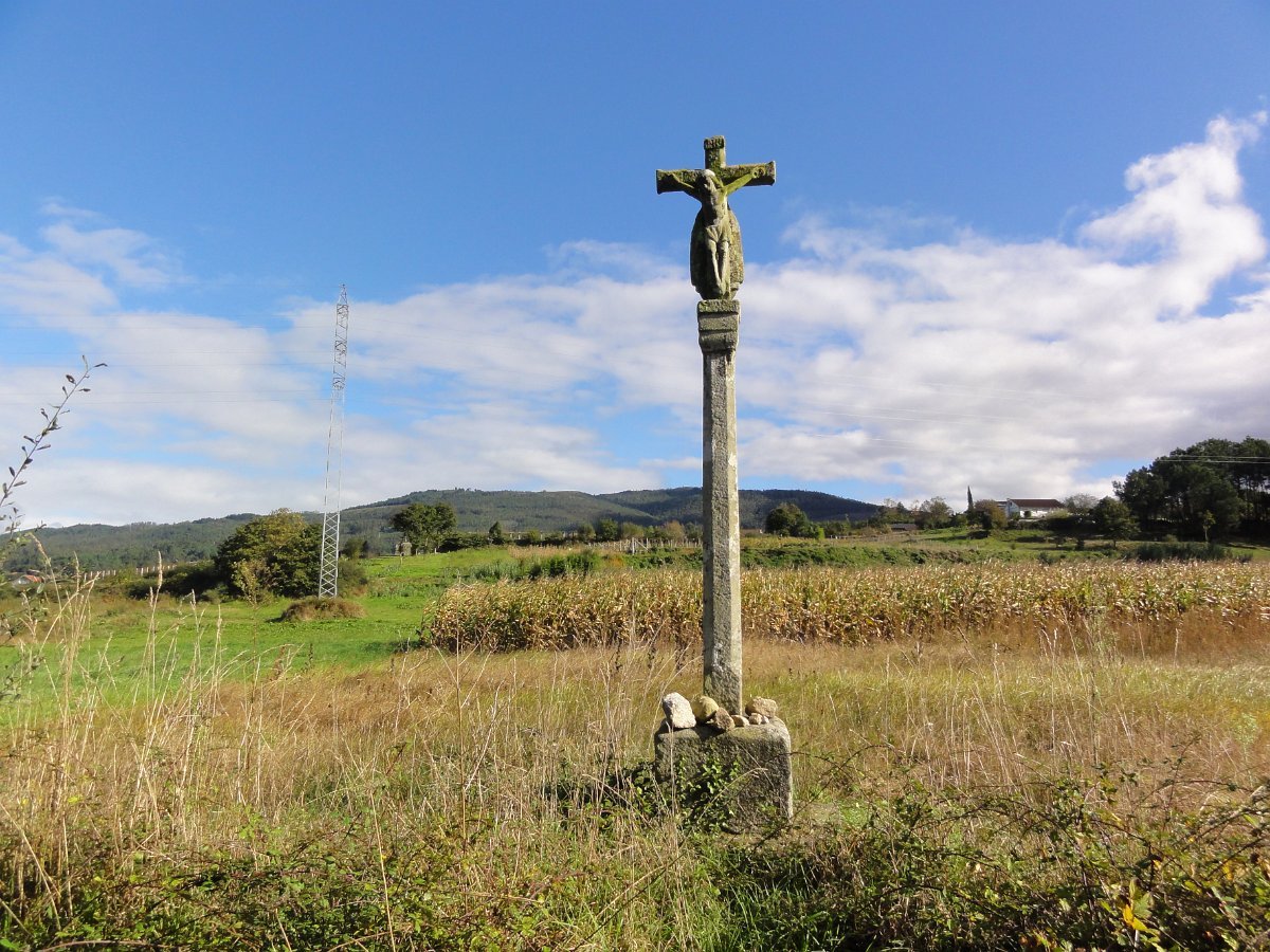 Prosseguimos por uma estrada solitária e passamos a San Mamed de Portela, com um antiguo cruzeiro que indica o bom Caminho. Seguimos para um encontro com um dos lugares míticos do caminho português, Ponte Valbón e o Cruzeiro de Amonisa, desde onde Santiago no fuste nos indica o Norte olhando para Compostela.