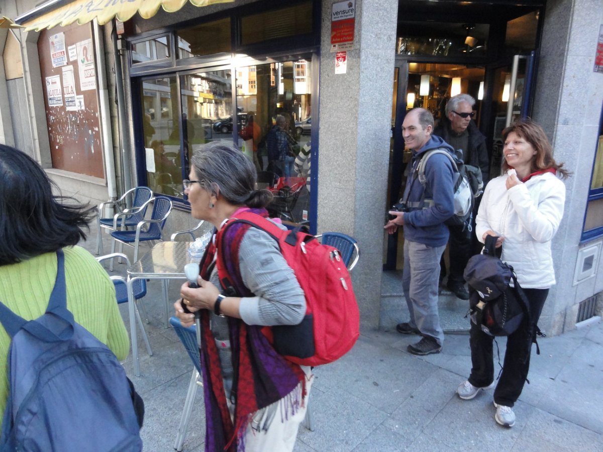 Saímos do albergue de Pontevedra, encaminhando-nos pela Rúa Virxen do Camiño até a sua Capela na Praça da Peregrina, continuamos seguindo a Rúa Soportales, Rúa Real e Rúa del Puente que nos deixam na “Puente del Burgo” na saída Norte da cidade.