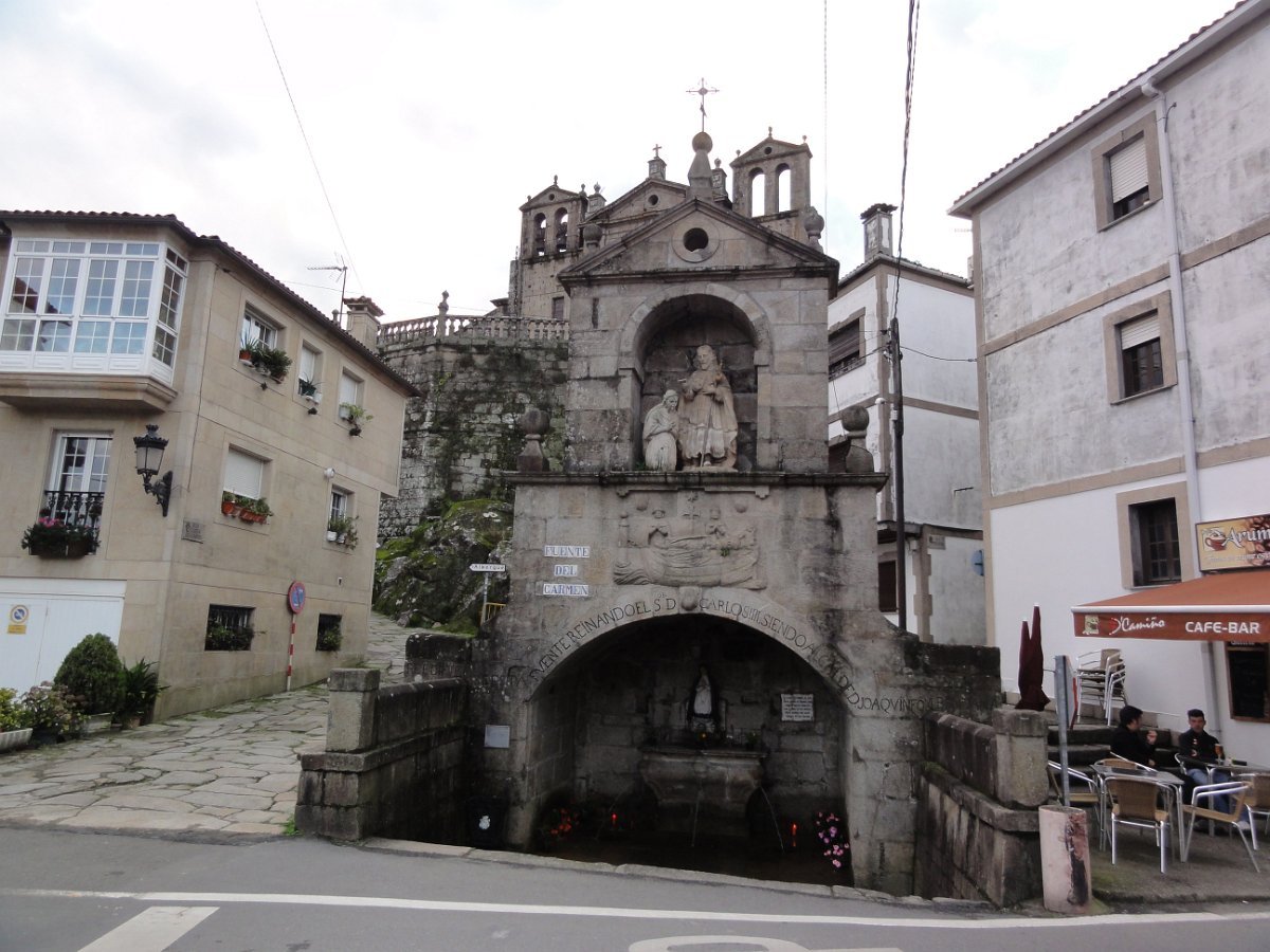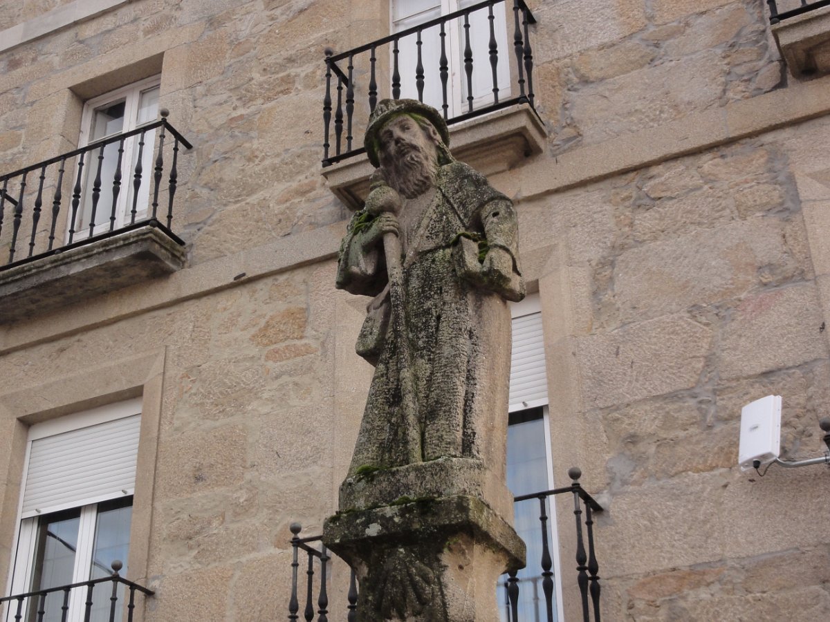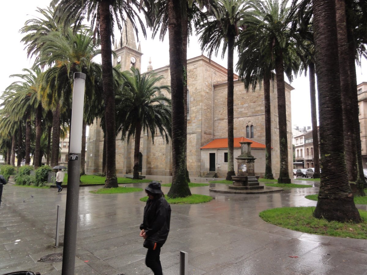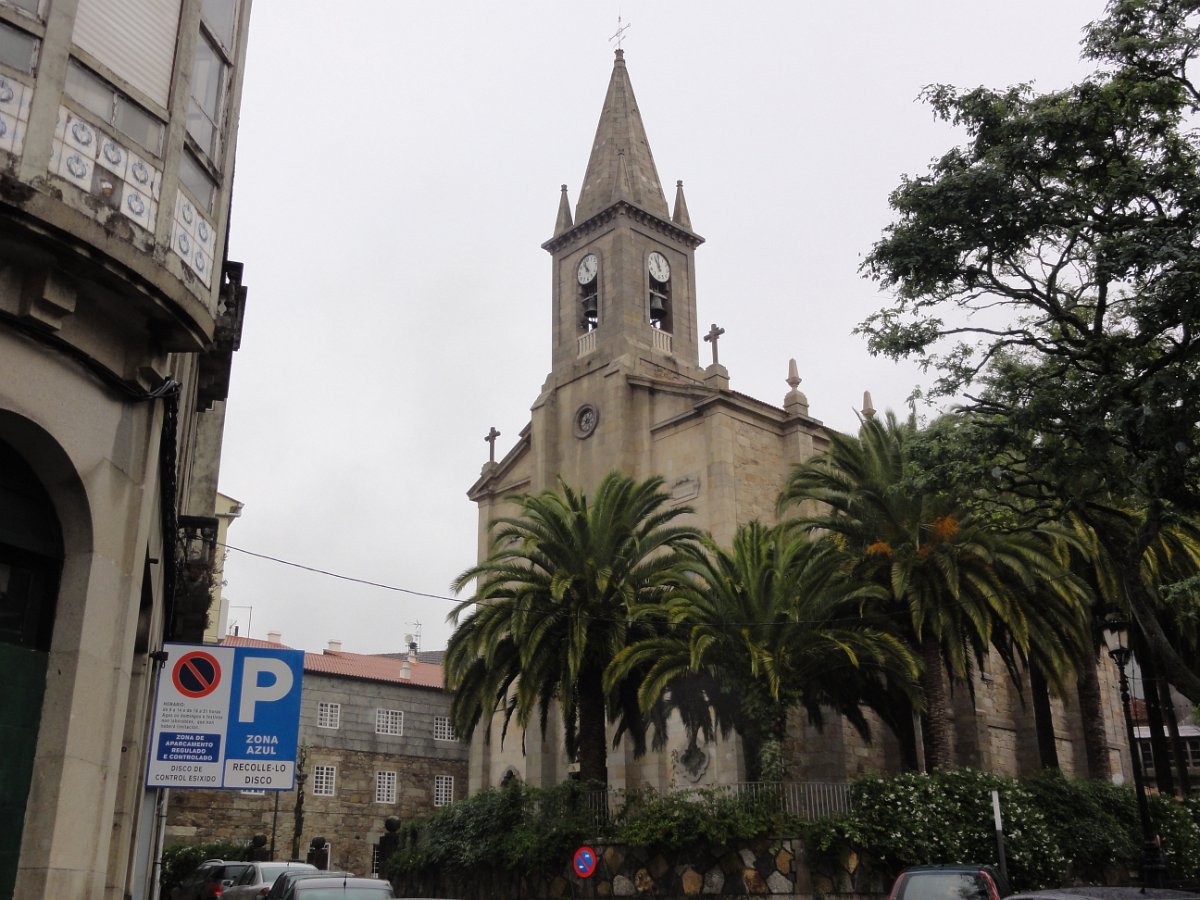 Entramos em Padrón junto ao mercado municipal. Ao fundo da alameda a igreja de Santiago de Padrón, de austero neoclassicismo, guarda testemunhos dos tempos precedentes, um púlpito gótico, com a imagem de Santiago Peregrino, pertencente à igreja do século XV que mandou construir o arcebispo Lope de Mendoza. Guarda debaixo do altar a peça mais jacobeia da vila: o Pédron, na qual, segundo a tradição, se amarrou a barca que transportou o corpo do Apóstolo e os seus dois discípulos Tedoro e Atanásio.