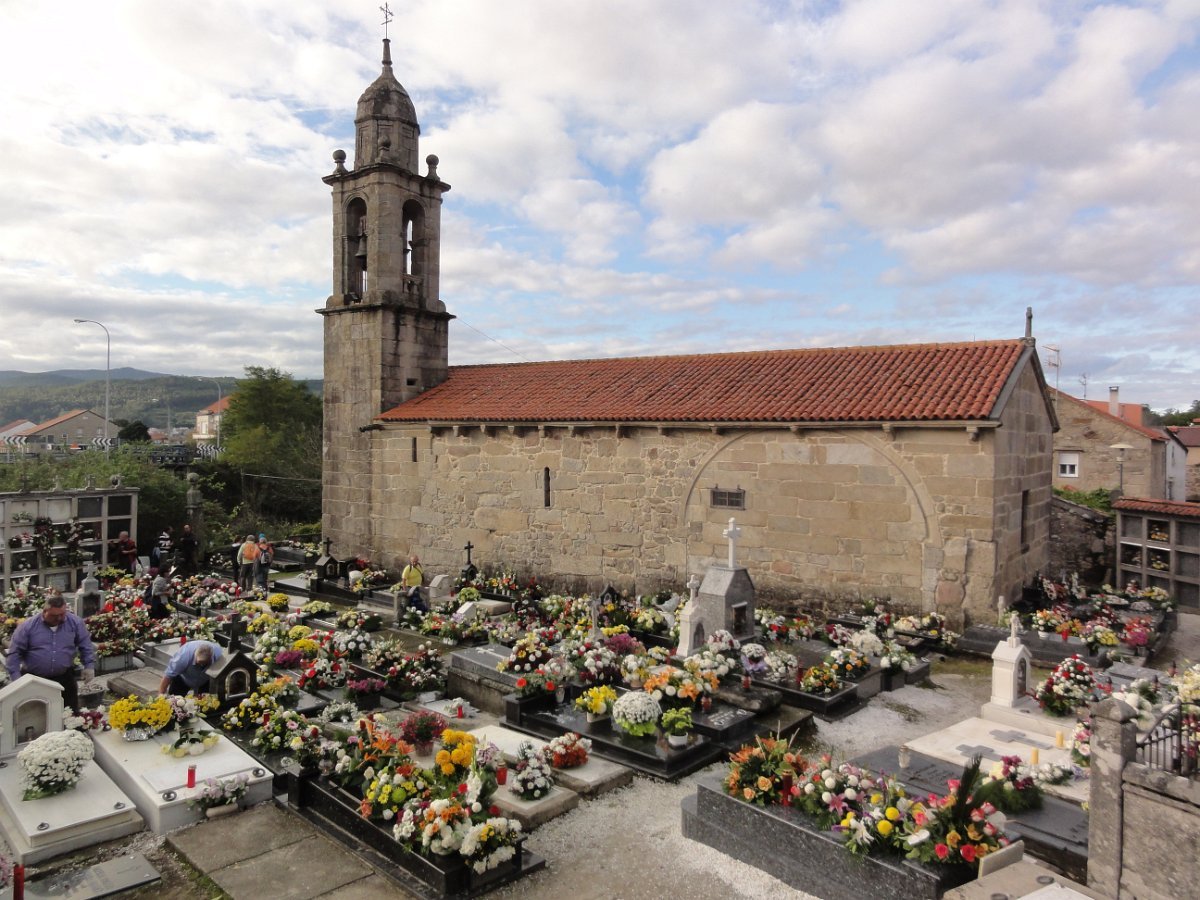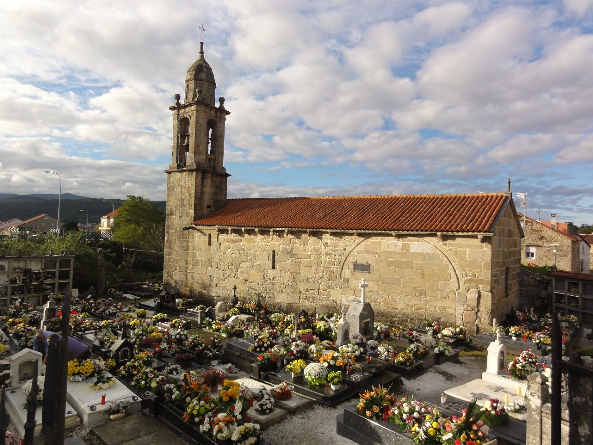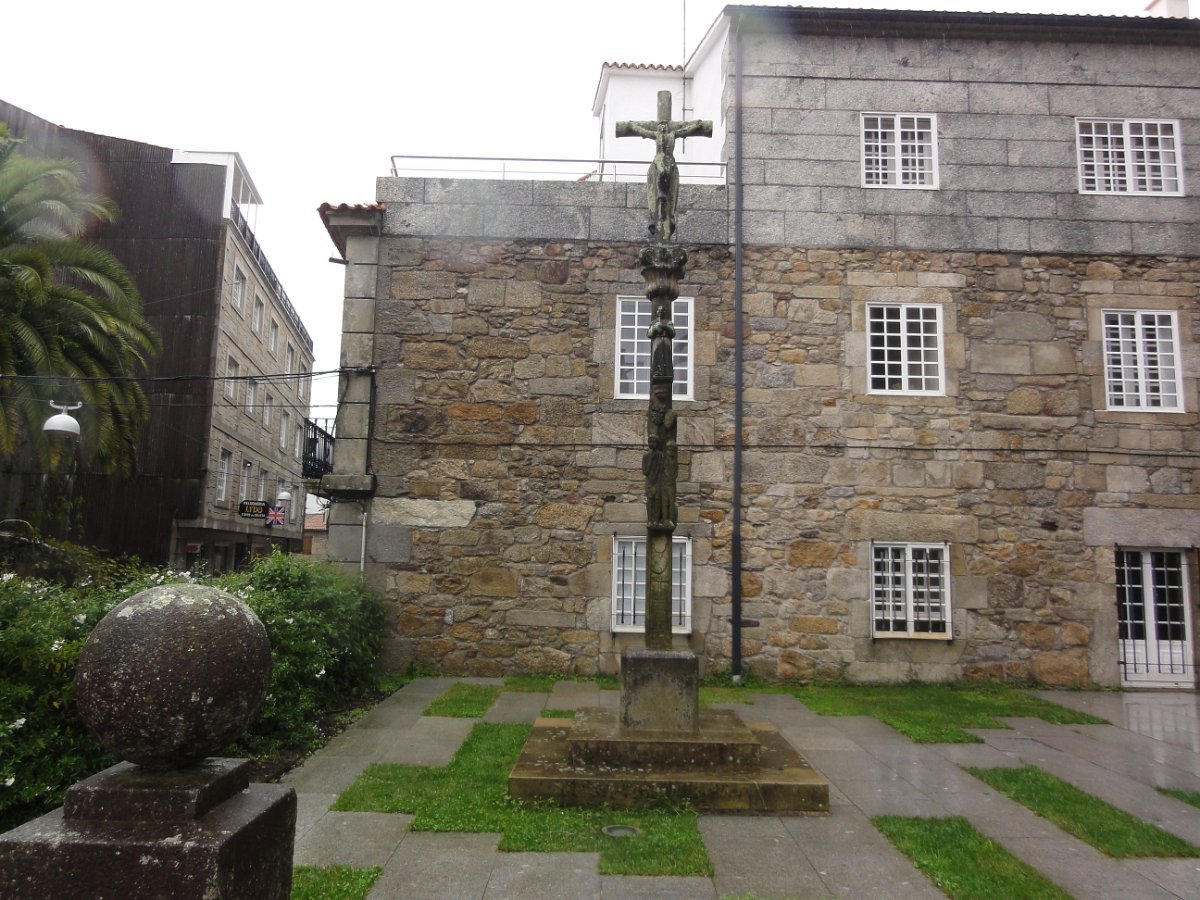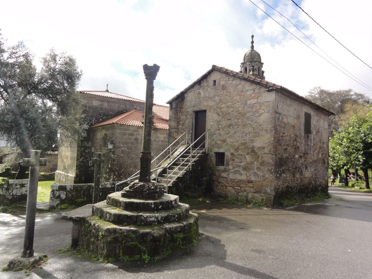 Entramos em Padrón junto ao mercado municipal. Ao fundo da alameda a igreja de Santiago de Padrón, de austero neoclassicismo, guarda testemunhos dos tempos precedentes, um púlpito gótico, com a imagem de Santiago Peregrino, pertencente à igreja do século XV que mandou construir o arcebispo Lope de Mendoza. Guarda debaixo do altar a peça mais jacobeia da vila: o Pédron, na qual, segundo a tradição, se amarrou a barca que transportou o corpo do Apóstolo e os seus dois discípulos Tedoro e Atanásio.