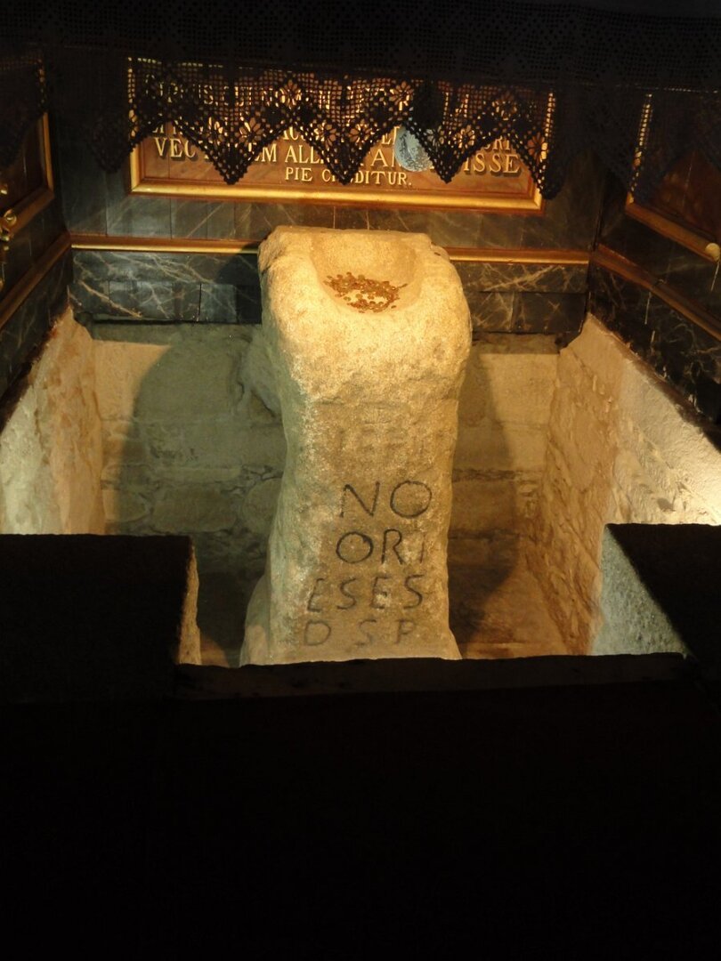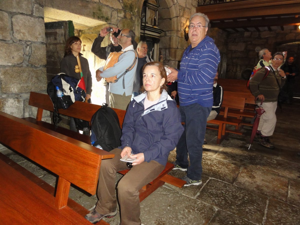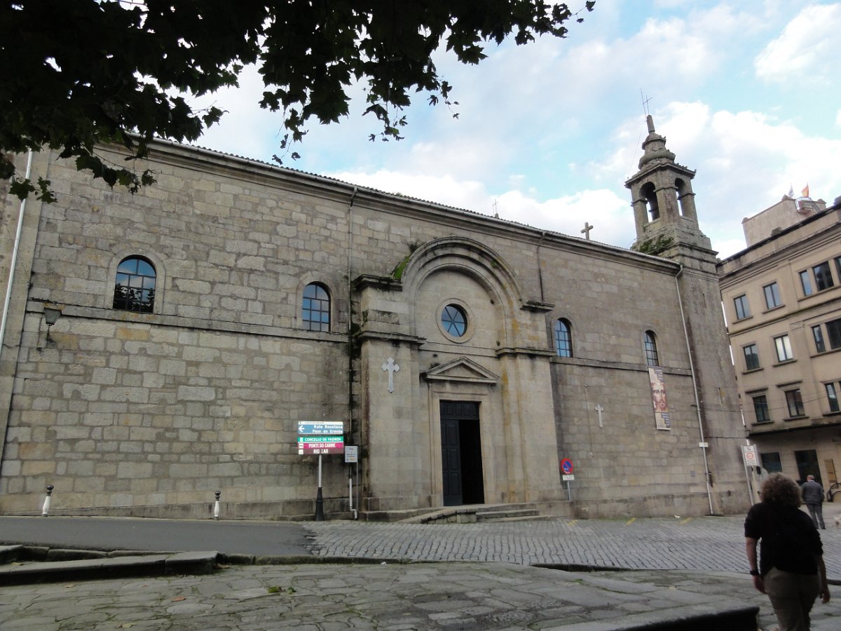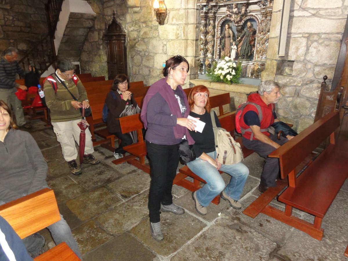 Entramos em Padrón junto ao mercado municipal. Ao fundo da alameda a igreja de Santiago de Padrón, de austero neoclassicismo, guarda testemunhos dos tempos precedentes, um púlpito gótico, com a imagem de Santiago Peregrino, pertencente à igreja do século XV que mandou construir o arcebispo Lope de Mendoza. Guarda debaixo do altar a peça mais jacobeia da vila: o Pédron, na qual, segundo a tradição, se amarrou a barca que transportou o corpo do Apóstolo e os seus dois discípulos Tedoro e Atanásio.