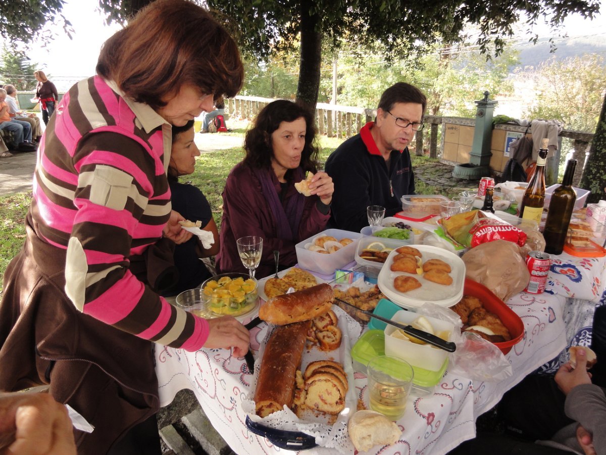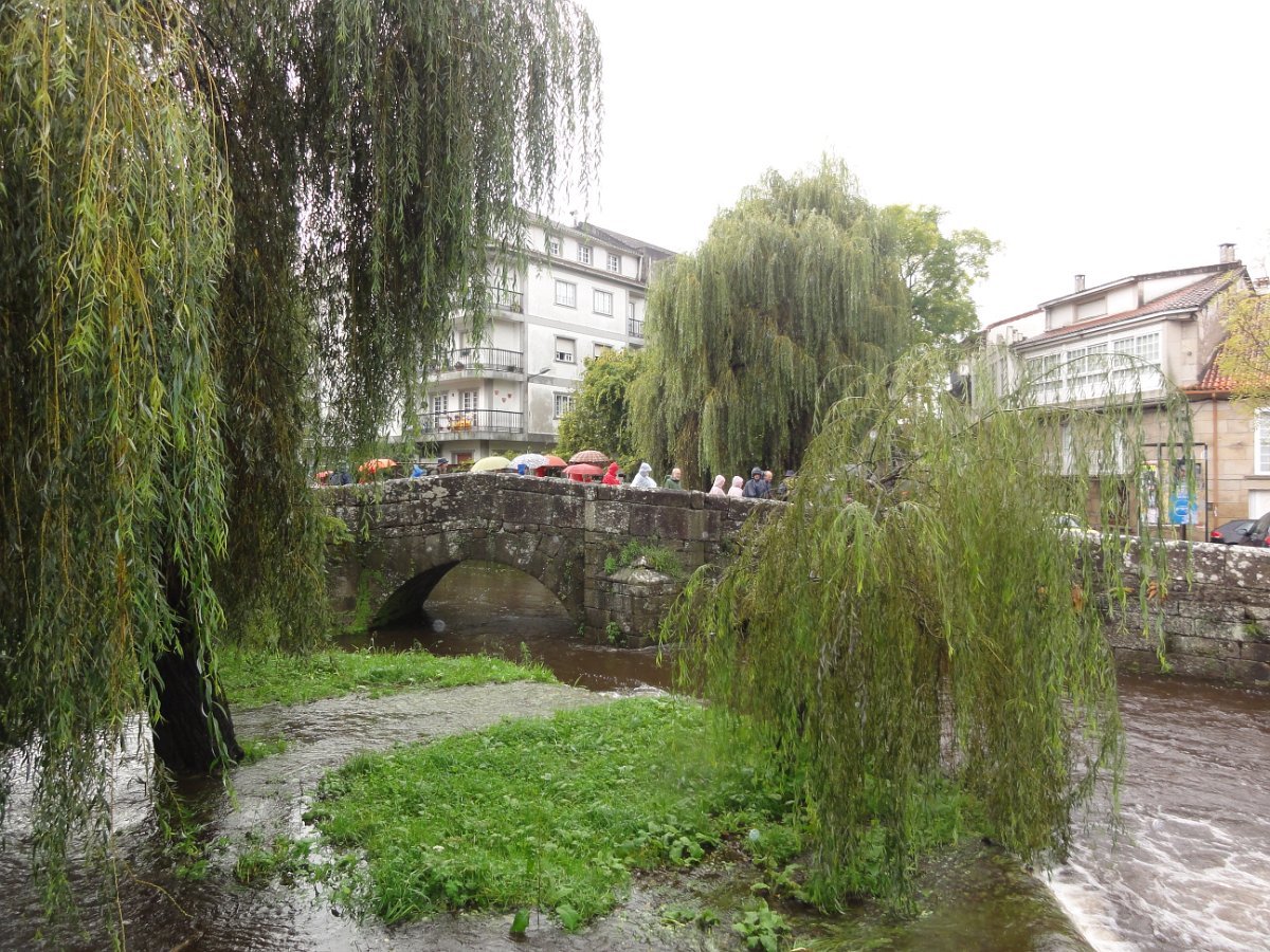 A ponte sobre o rio Umia aproximou-nos da fonte de águas termais que dão nome à vila desde a época romana. Como em muitos outros lugares da Galiza, Caldas possui águas termais de grande qualidade. Celtas e romanos ficaram aqui, graças aos benefícios hídricos do lugar. Os romanos chamaram-na “Aquis Celenis” e constitui uma das paragens habituais para os peregrinos, que aproveitam as propriedades curativas das águas, para tomar um repouso no caminho. Seguimos pela rua Real e cruzamos a Ponte Bermaña, peça medieval de enorme encanto, alcançamos o vale do rio Bermaña.