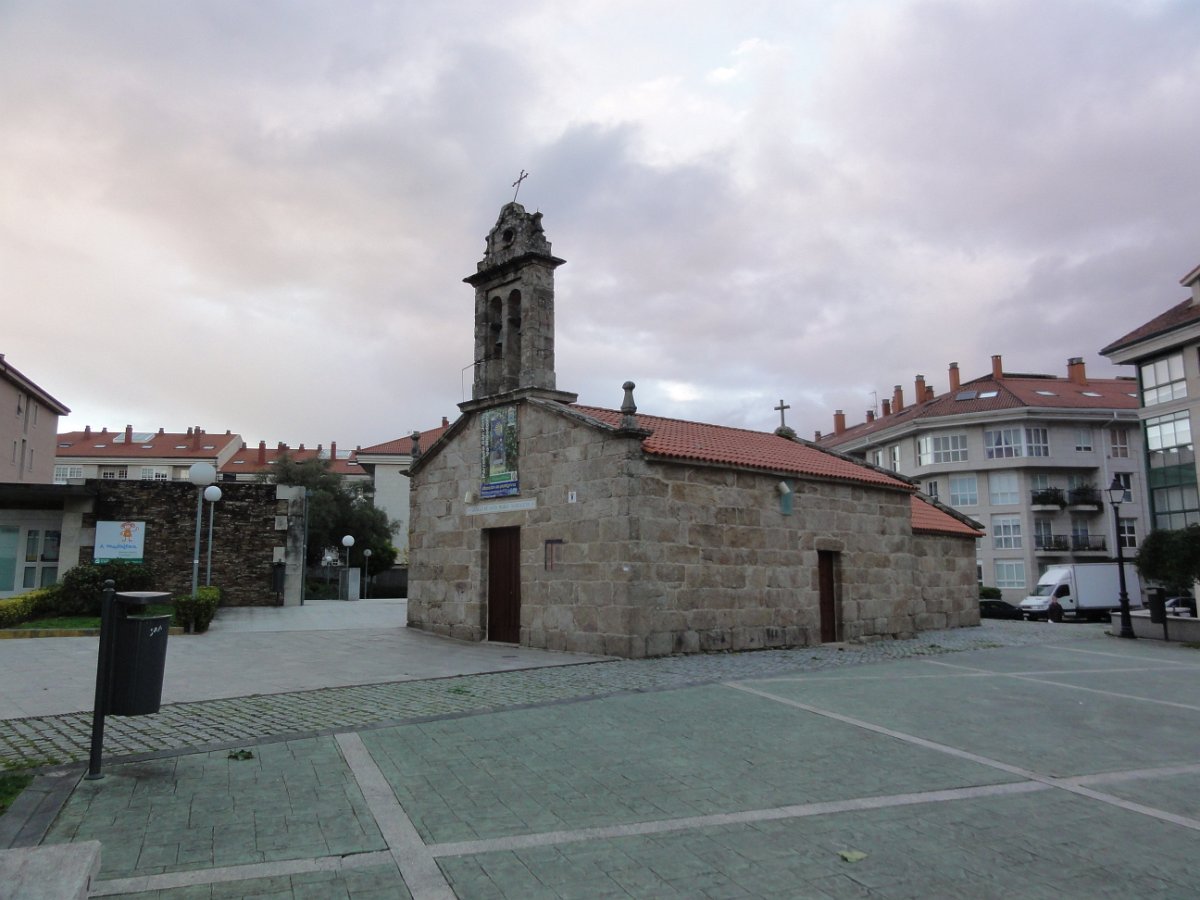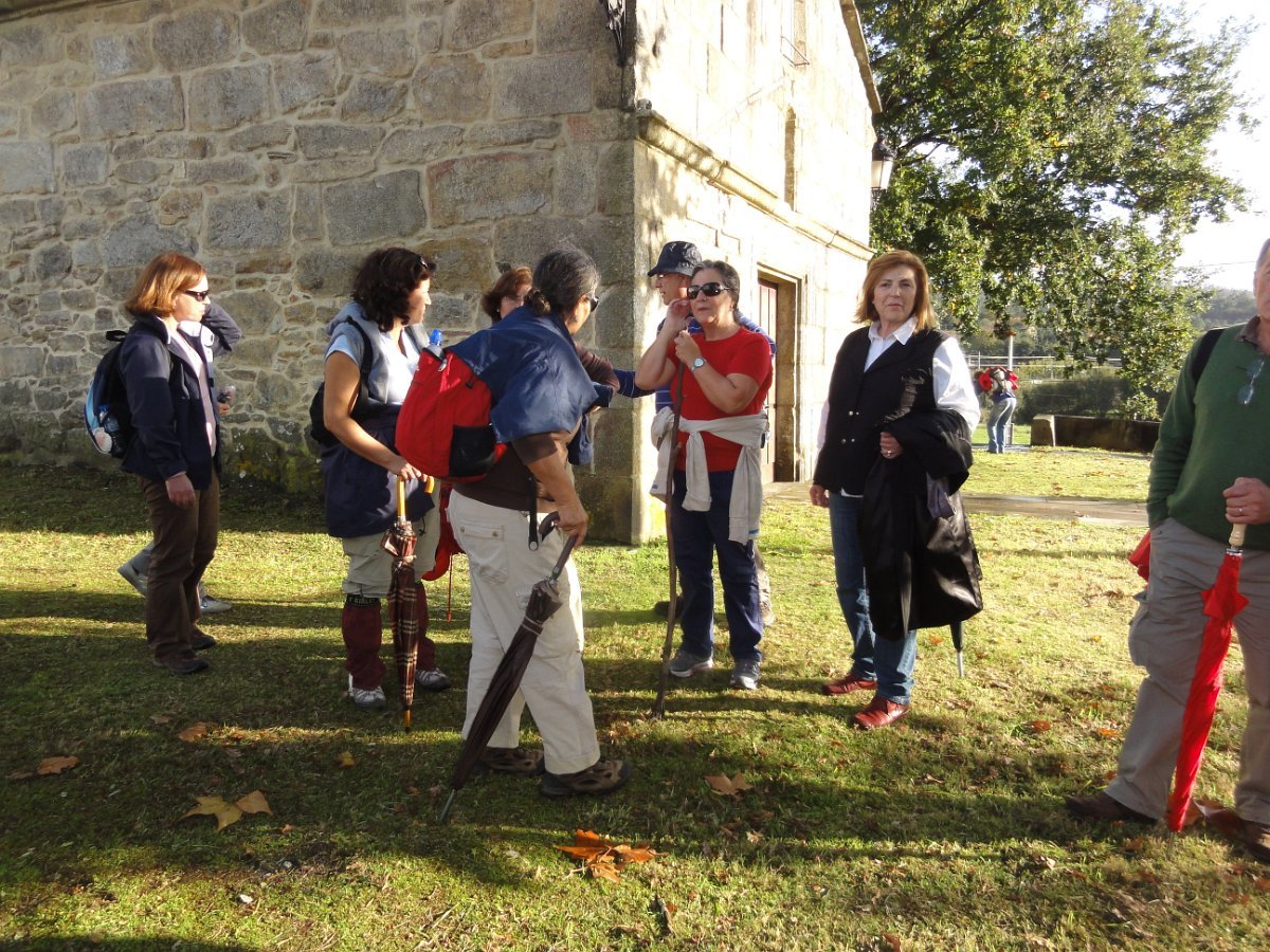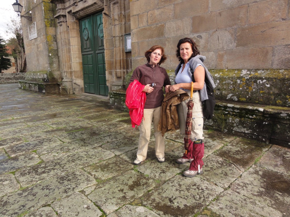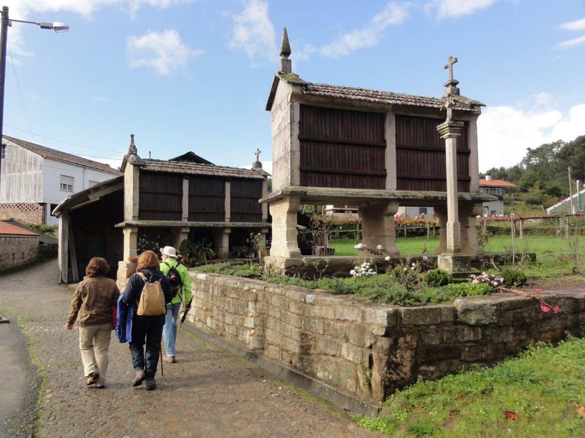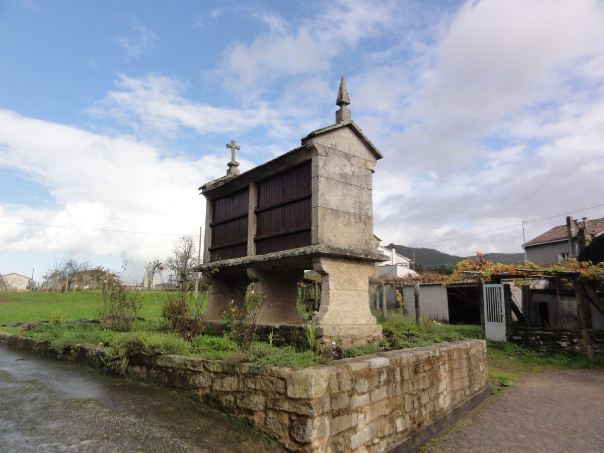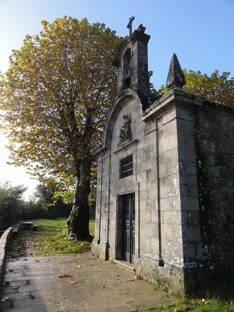 Passada Iria Flavia seguimos mais uma vez a N550, ao longo de um quilómetro saindo depois para poente para percorrer o curioso enfiamento de aldeias - Romaris, Rueiro, Cambelas, Anteportas, Tarrío e Vilar - até chegar, de novo, junto à N550, ao magnífico Santuário da Nosa Señora da Escravitute.