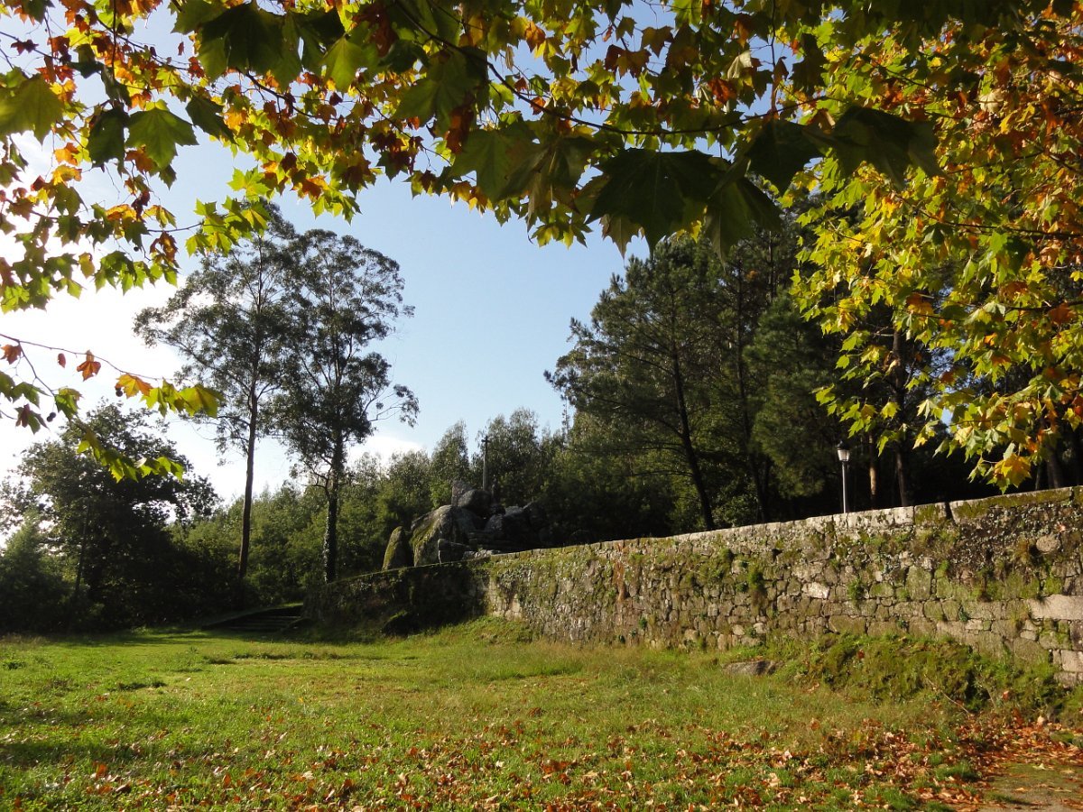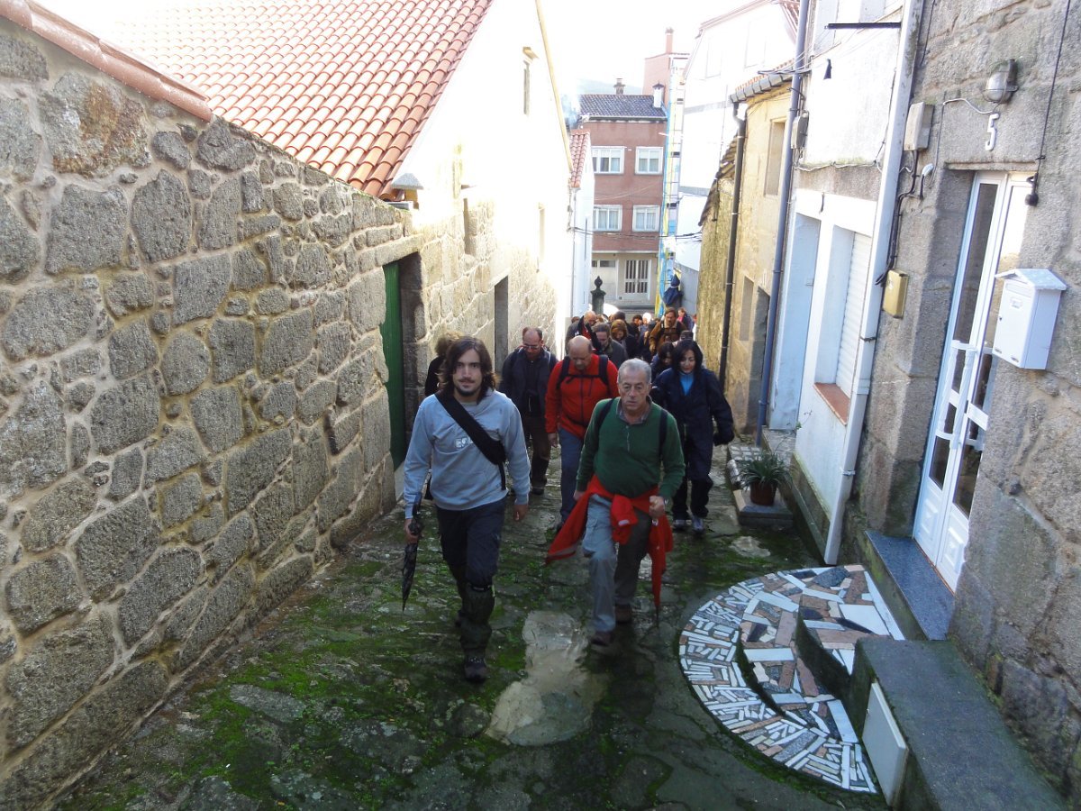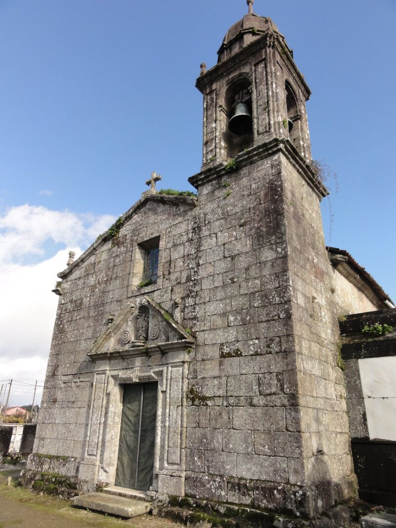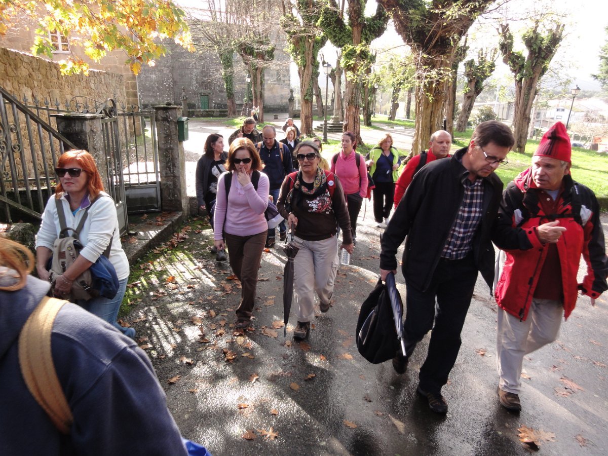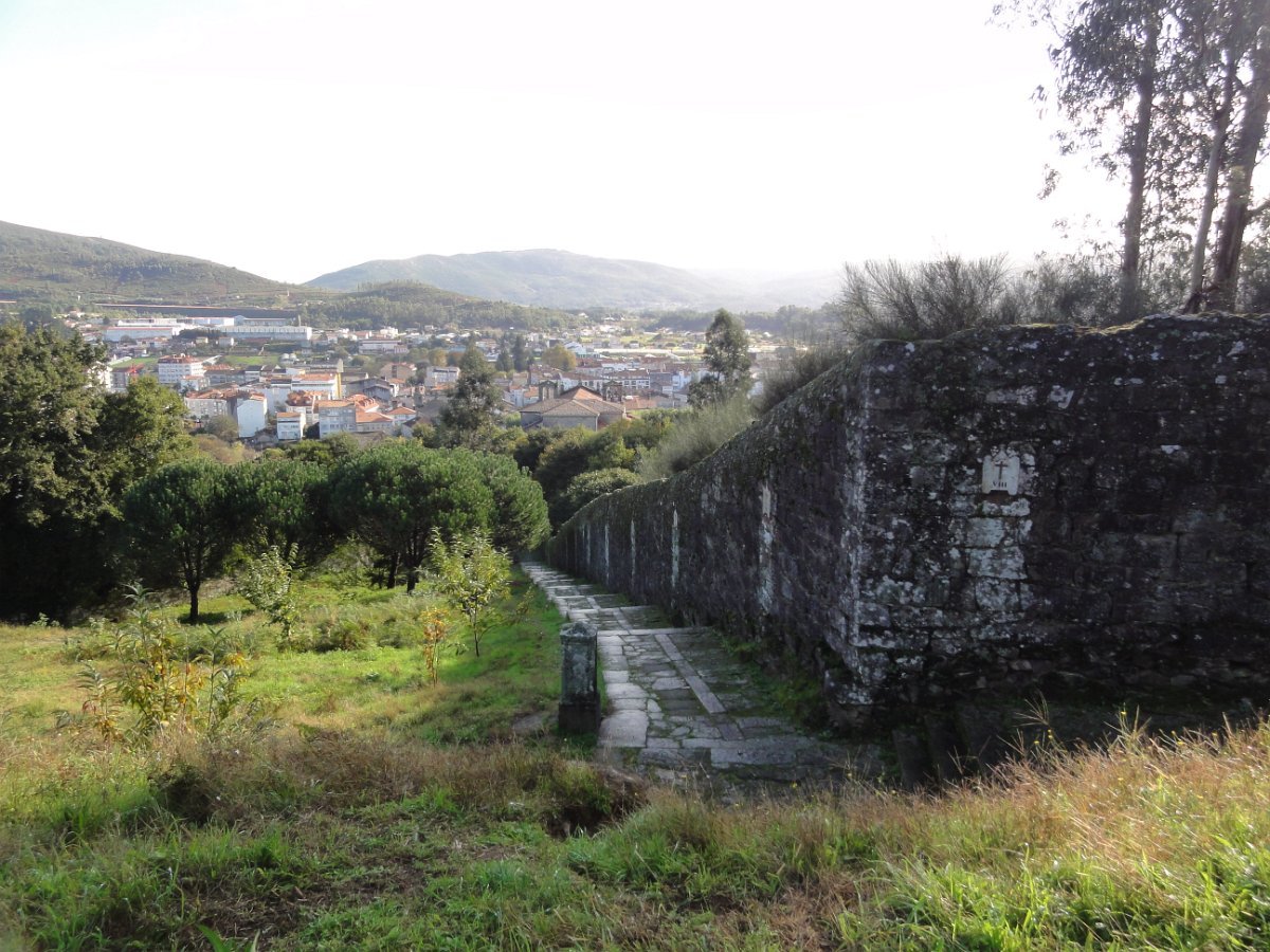 Passada Iria Flavia seguimos mais uma vez a N550, ao longo de um quilómetro saindo depois para poente para percorrer o curioso enfiamento de aldeias - Romaris, Rueiro, Cambelas, Anteportas, Tarrío e Vilar - até chegar, de novo, junto à N550, ao magnífico Santuário da Nosa Señora da Escravitute.