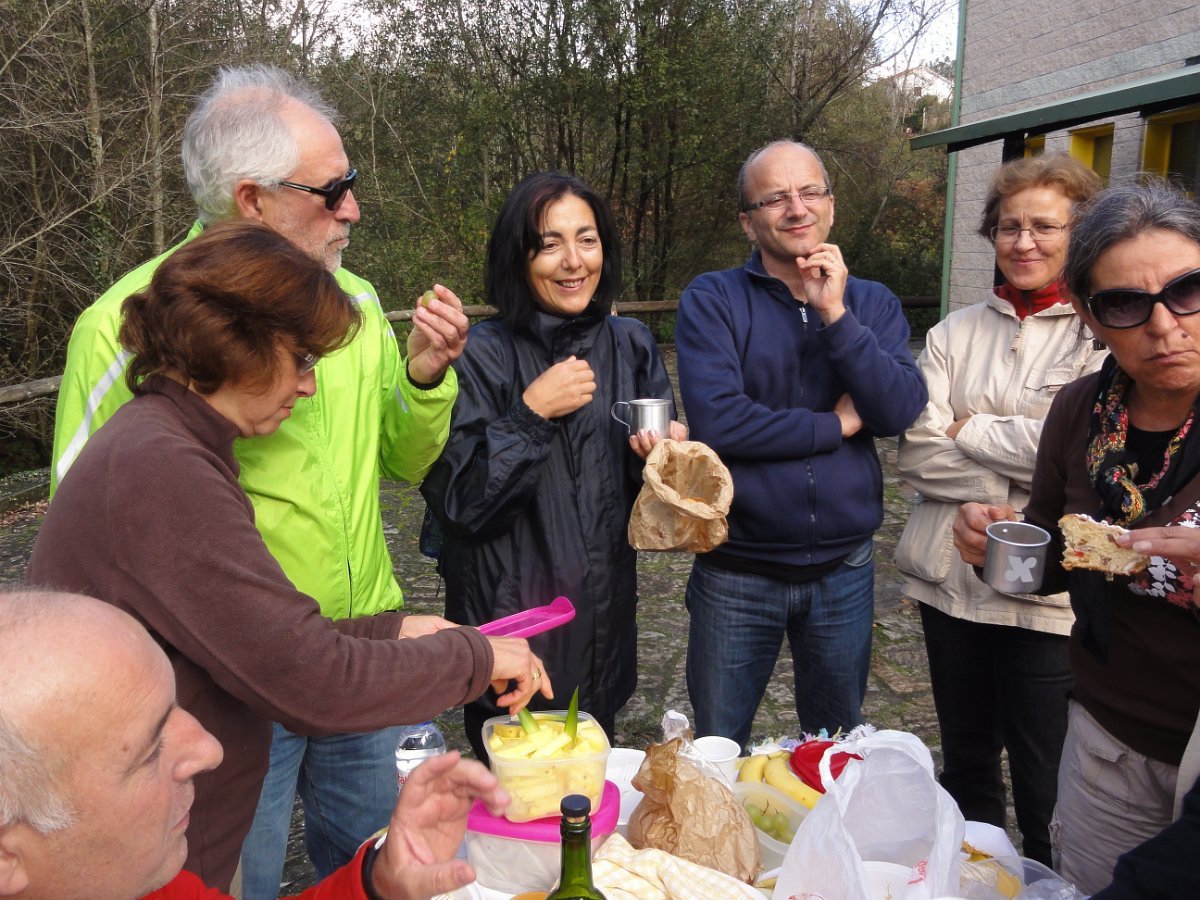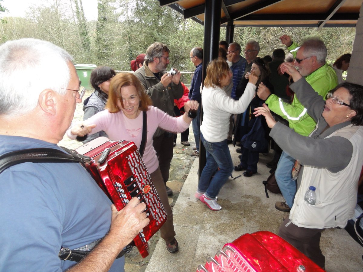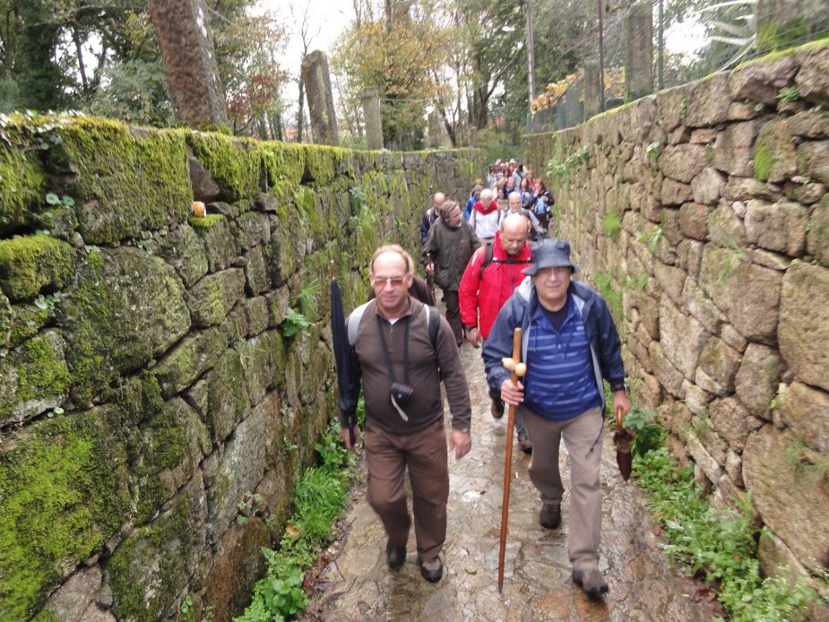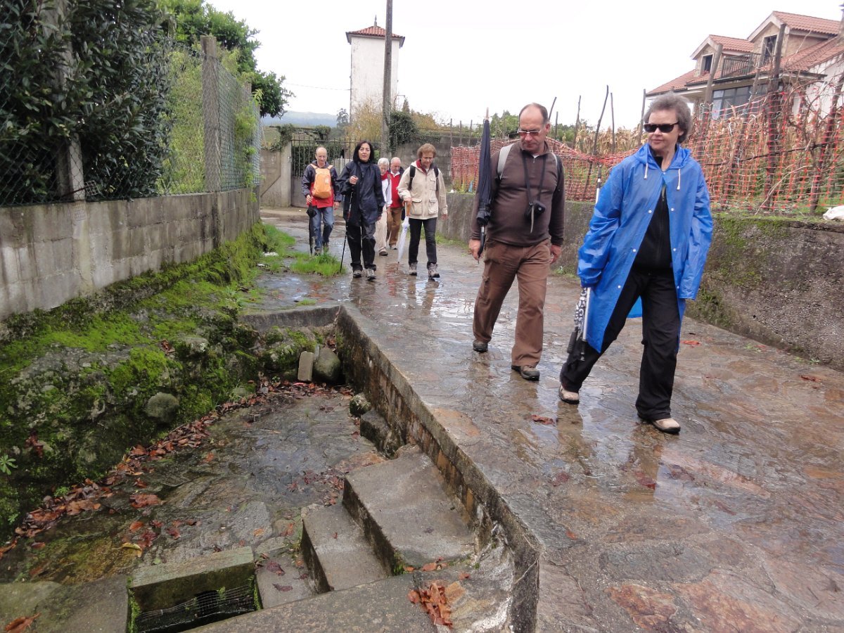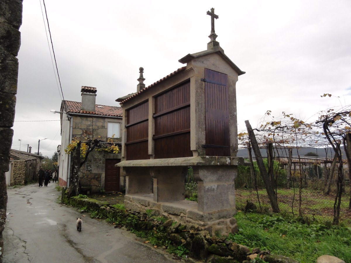 Depois de passarmos pela Igreja de Santa Maria de Cruces, continuámos entre bosques até chegar à pequena povoação de Angueira de Suso descendo novamente à N 550 que percorremos, pela sua berma, durante cerca de um quilómetro. . É a última vez que encontramos esta via na Peregrinação