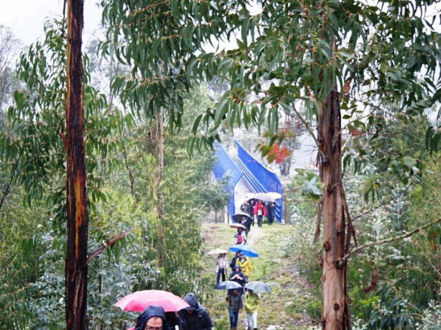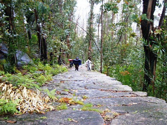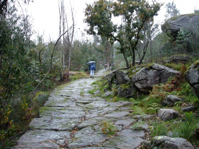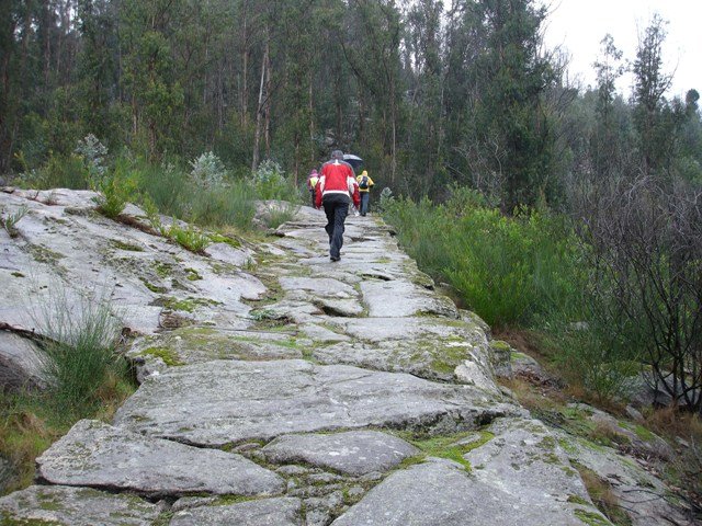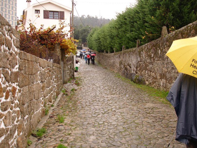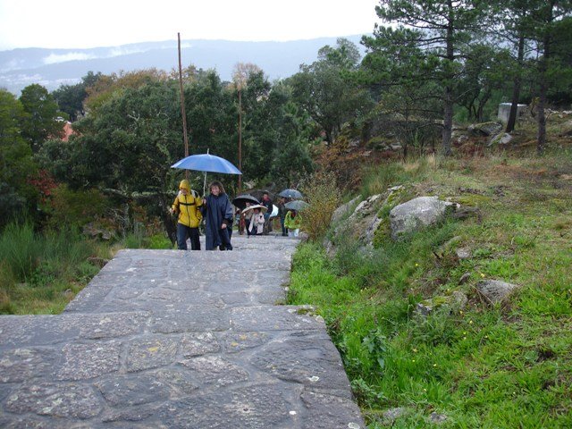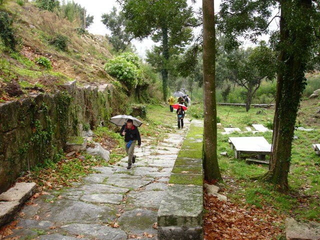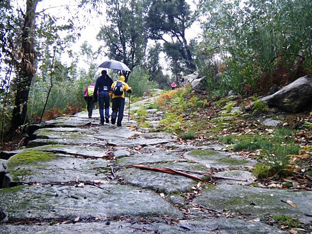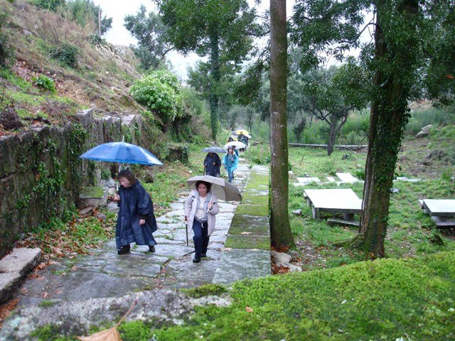 Aqui iniciamos a subida da tão bonita como penosa calçada de acesso ao topo do monte, mas cuja dificuldade foi por todos ultrapassada ainda mesmo com a chuva a cair.