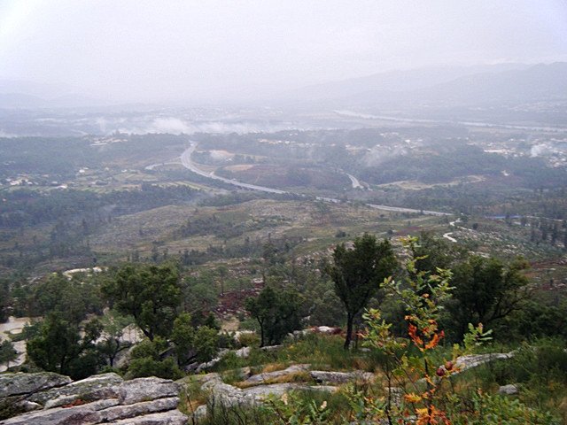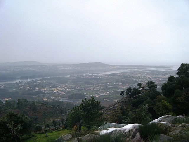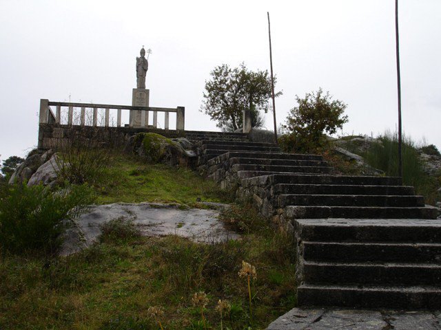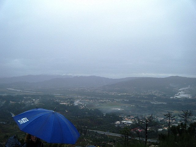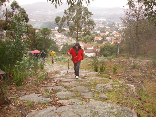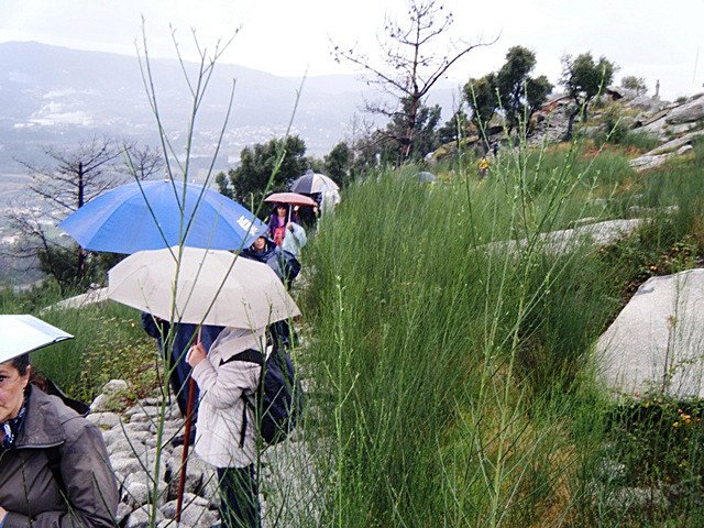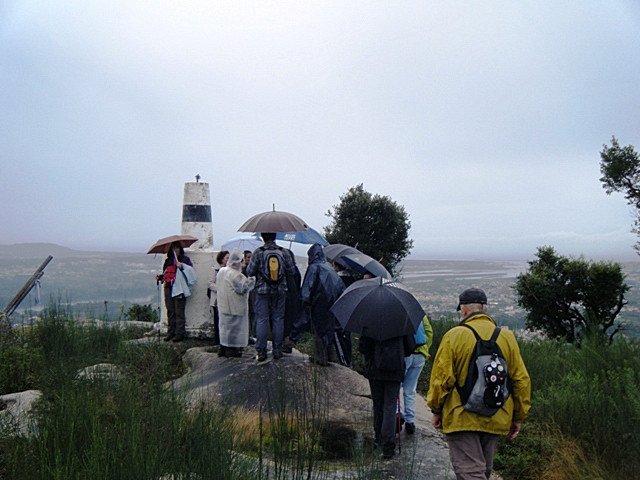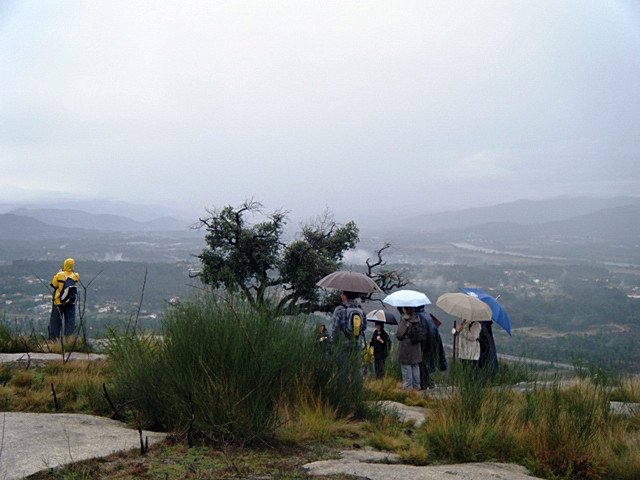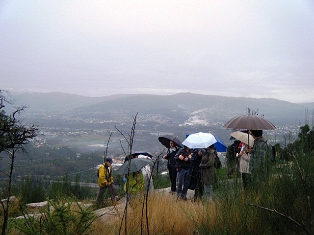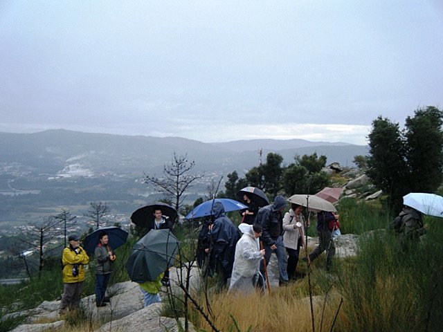 Durante a subida parando de quando em quando, olhando para trás sobre o vale da Ribeira Lima, a vista ia-se perdendo com tanta grandeza. Assim um a um todos atingiram o alto e se fez o reagrupamento, enquanto uns preferiram abrigar-se e vestir roupas secas, uns poucos resolveram subir mais um pouco sobre as muralhas do antigo castro da idade do Ferro que mesmo sem estar escavado, se reputa de importante, com ruínas de habitações, restos de muralhas, acrópole, facho, cerâmicas, etc., a par de penedio erosionado no decorrer dos séculos. Valiosa área patrimonial aberta a quantos a demandam em busca de religiosidade, convívio, ócio e mesmo por atractivos culturais, atingindo-se assim o geodésico que assinala o ponto mais elevado do monte.