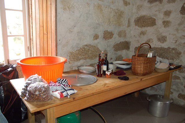 Entrei na sala, as mesas postas com bancos de correr, o vinho e o pão espalhado pelas mesas com a respectiva palamenta, notava-se alguma azáfama, as cozinheiras queriam colaborar e ajudar, andava tudo frenético, enquanto outros aguardavam serenamente o dito cujo no pote. O pão quase desapareceu e a prova de vinhos e outras bebidas sucediam-se, a caminhada ao longo do Lethes deixou marcas bem evidentes no estômago.