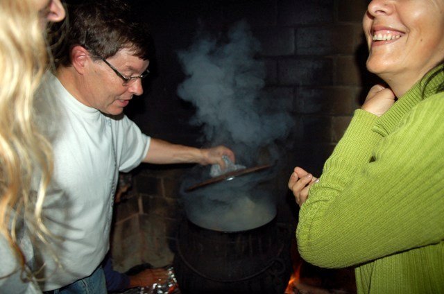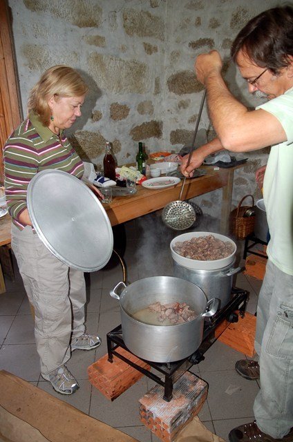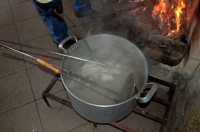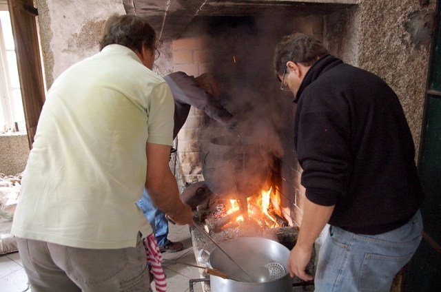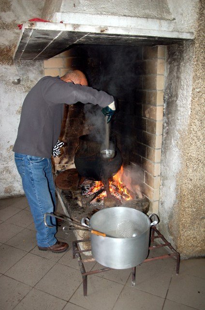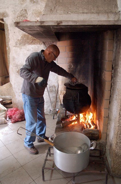 Chegados finalmente, junto à lareira, com o Pote sobre forte braseiro, e já sob o tecto da “Casa da Música”, salão assim designado por aqui acolher sobre medas de palha as bandas de música que aqui actuavam nas festividades dedicadas ao santo (patrono dos animais do campo) e que todos os anos se realiza nos dias 30 e 31 de Dezembro, nos preparamos para az parte final.