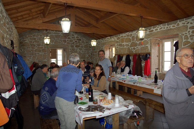 Veio, finalmente, o famoso cozido no pote acompanhado de umas batatas bem cozidas e muito jeitosas e uma hortaliça rendilhada a tapar a sua corpulência; nos entrefolhos da hortaliça a carne surgia viçosa, quente e apetitosa, ele era a entremeada e o chouriço, ele era a orelheira, a farinheira, carne de vaca e frango. As travessas iam ficando nuas e sem nada para comer, tendo-se notado a presença de uma maioria vegetariana e vai daí as hortaliças desapareceram num ápice (atenção para a próxima). Doces, tartes e bolos, foram a rodos. Cá por mim provei um doce de castanhas, cuja receita no final vos deixo, porque vale a pena experimentar.