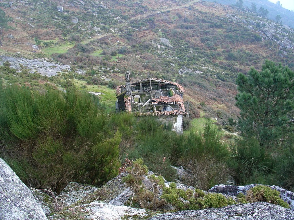 Tirada a foto conjunta, dirigimo-nos para o seu pequeno cemitério, onde o Miguel recordou uma recente tragédia da aldeia, com a morte de um homem e seus 2 filhos menores, surpreendidos pela explosão de uma bilha de gás. Logo de seguida seguimos para a branda de Rodrigo, onde infletimos à esquerda, subindo uma pedregosa ladeira, com mais de 300 m de desnível , que liga ao estradão que passa junto da branda de Lamelas.