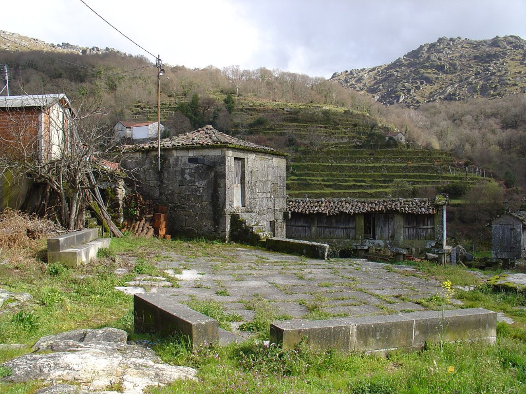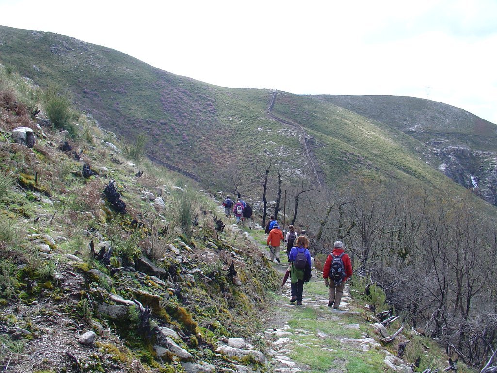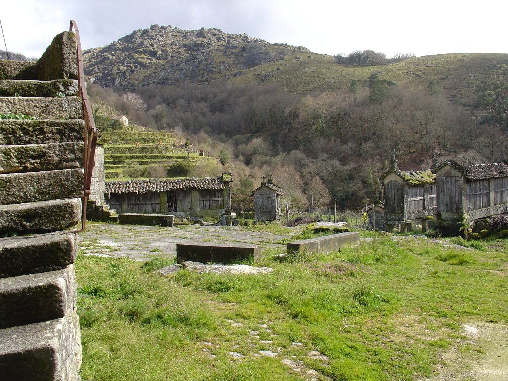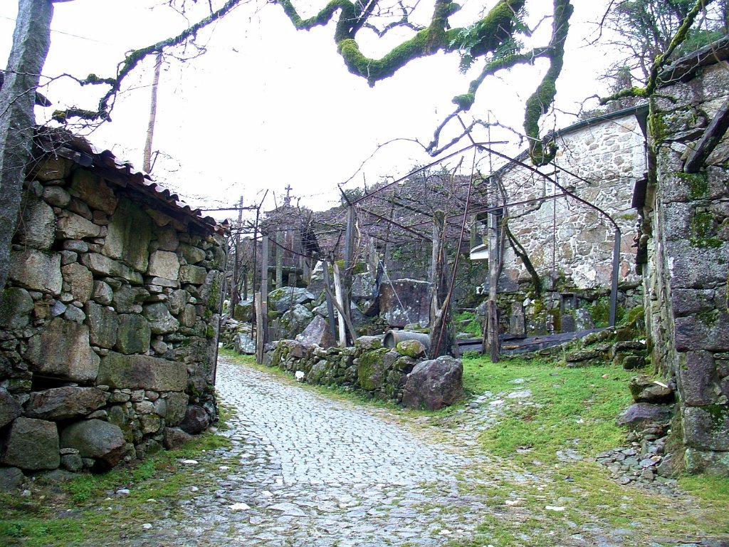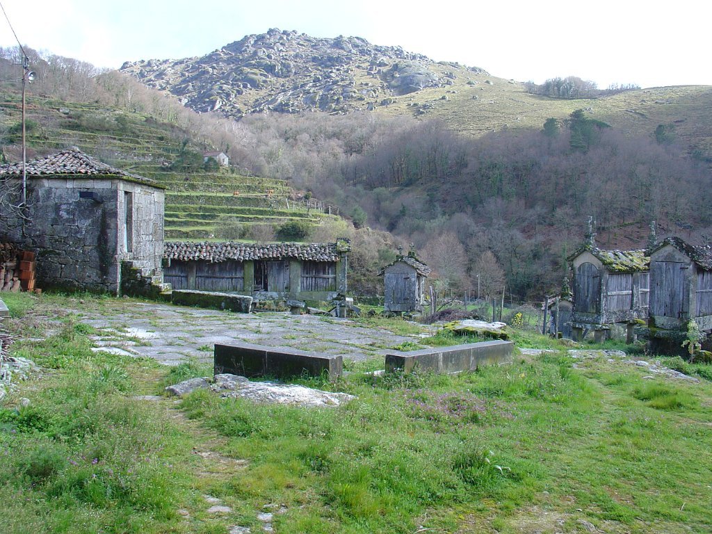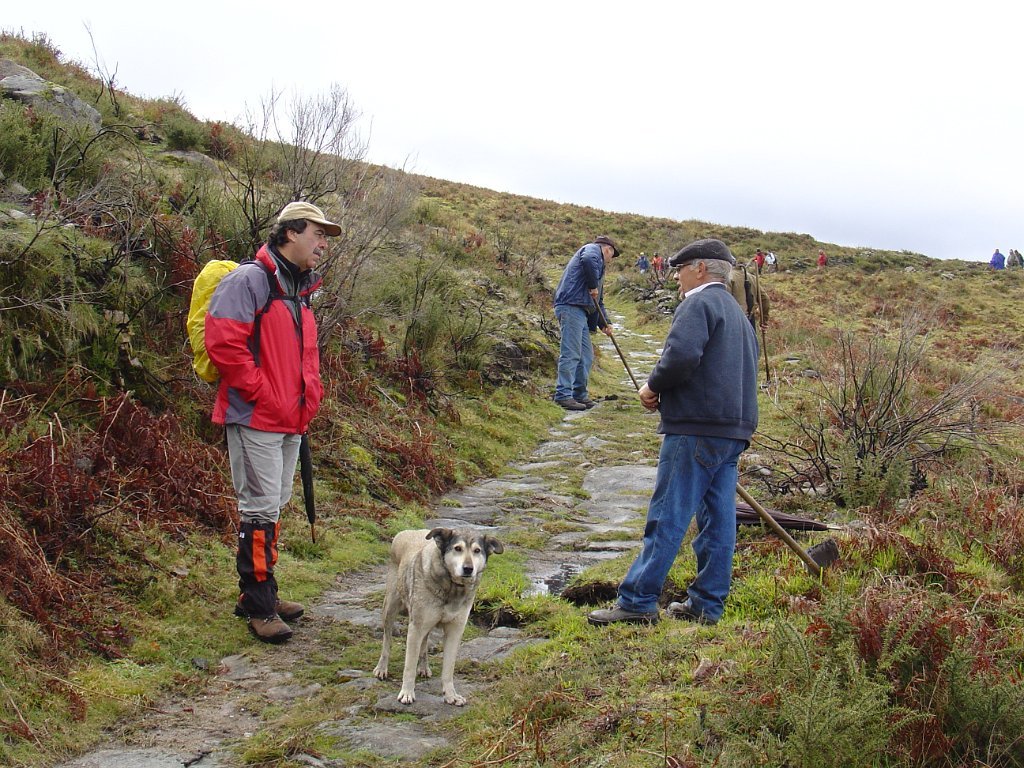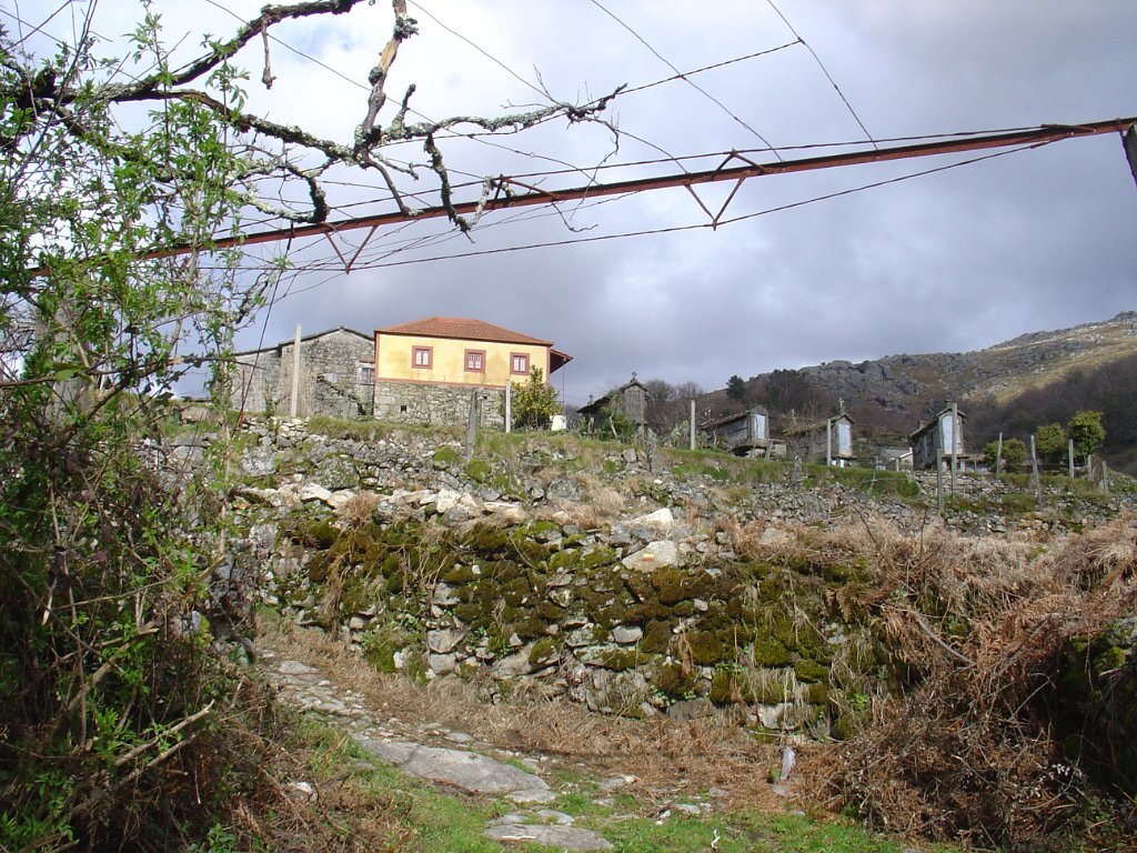 Depois de alguma hesitação iniciamos a subida pelo meio das casas e espigueiros da aldeia, encontrando vários dos seus habitantes a fazer a manutenção da calçada rural de acesso à serra, limpando-o da vegetação e refazendo os drenos.