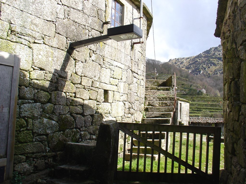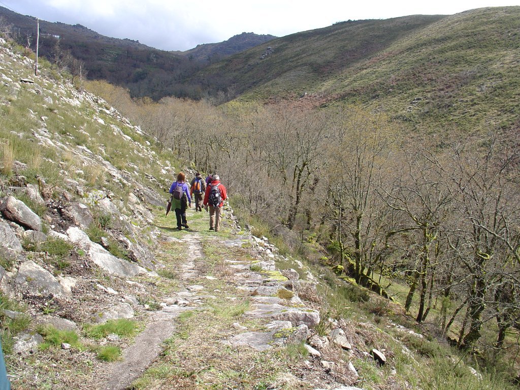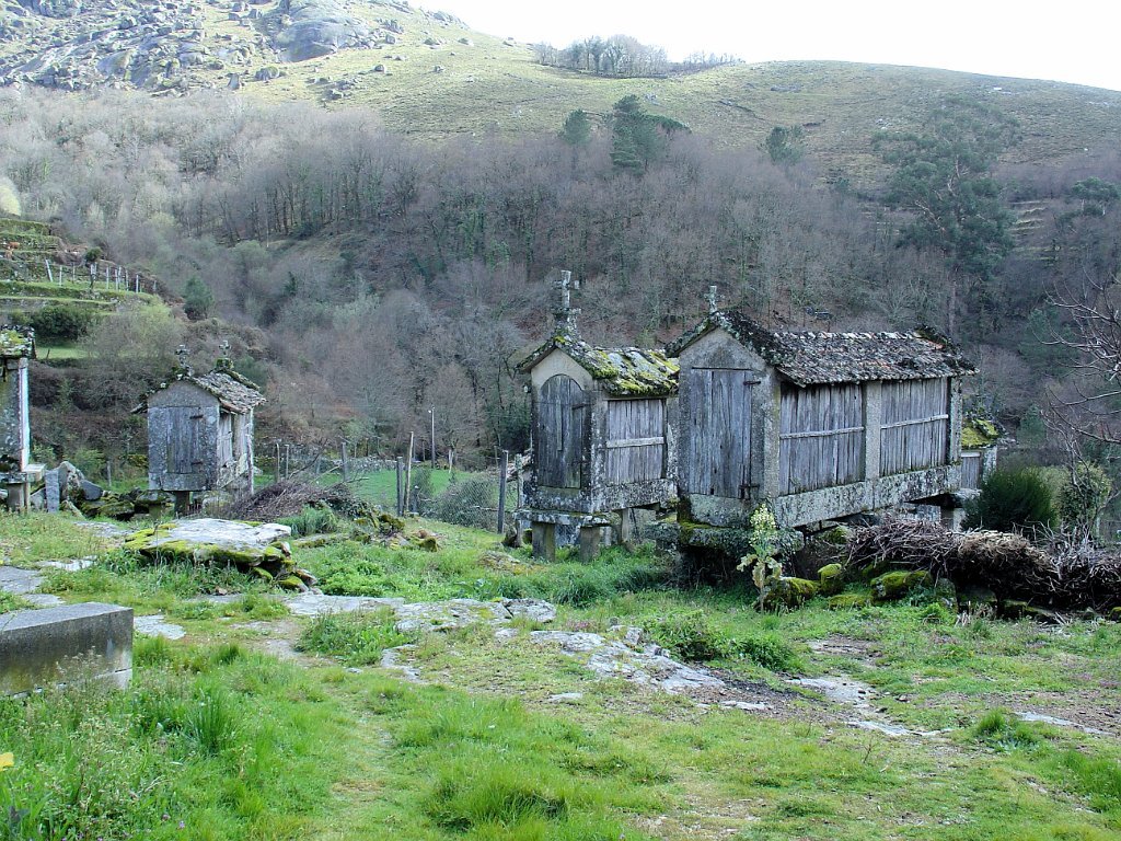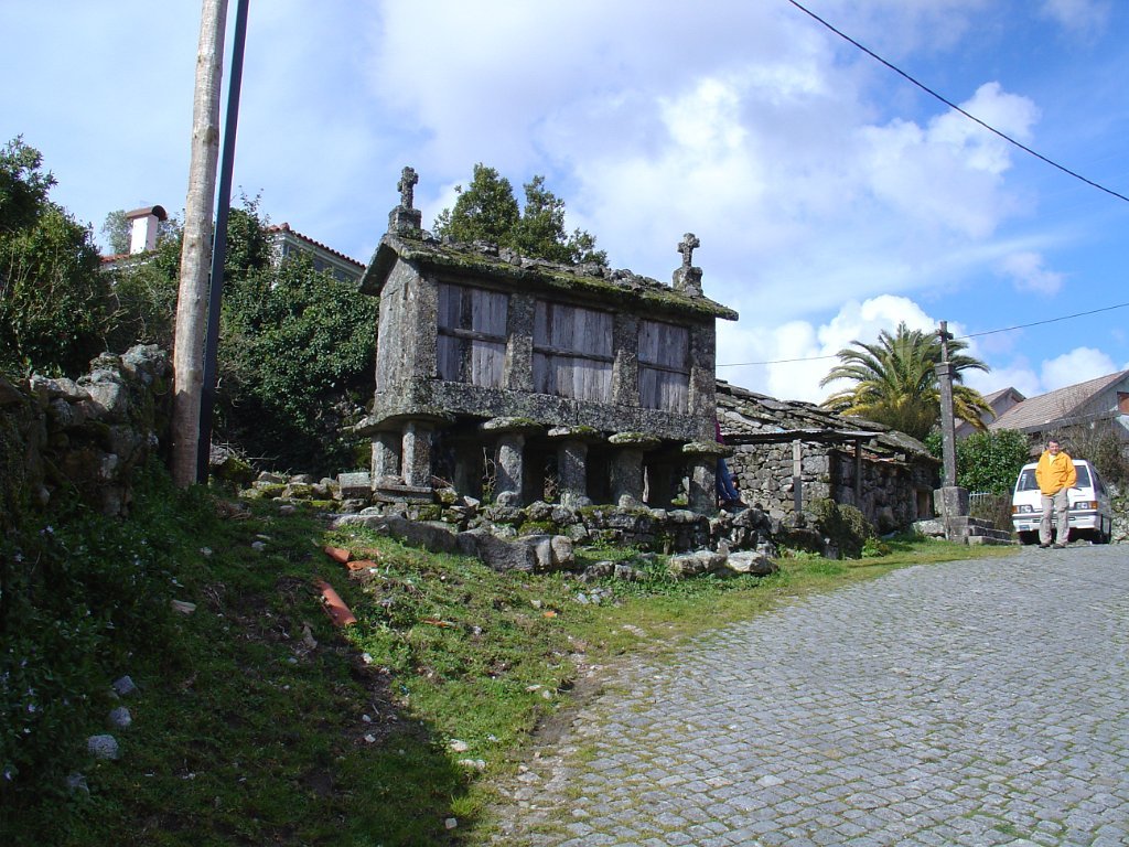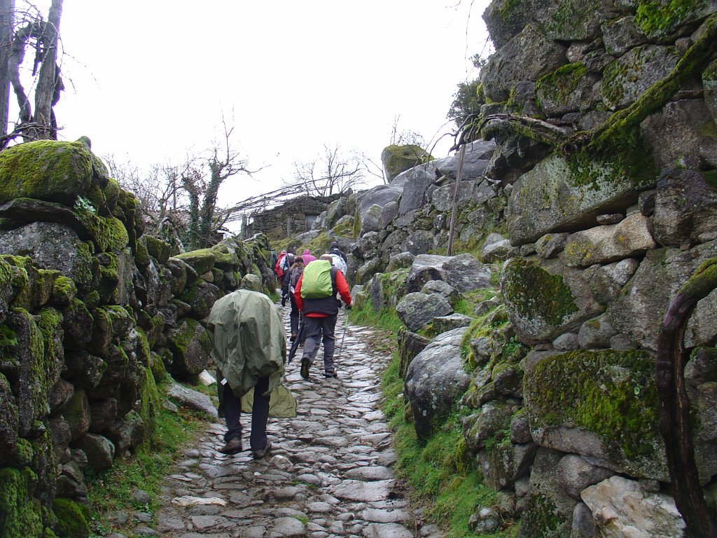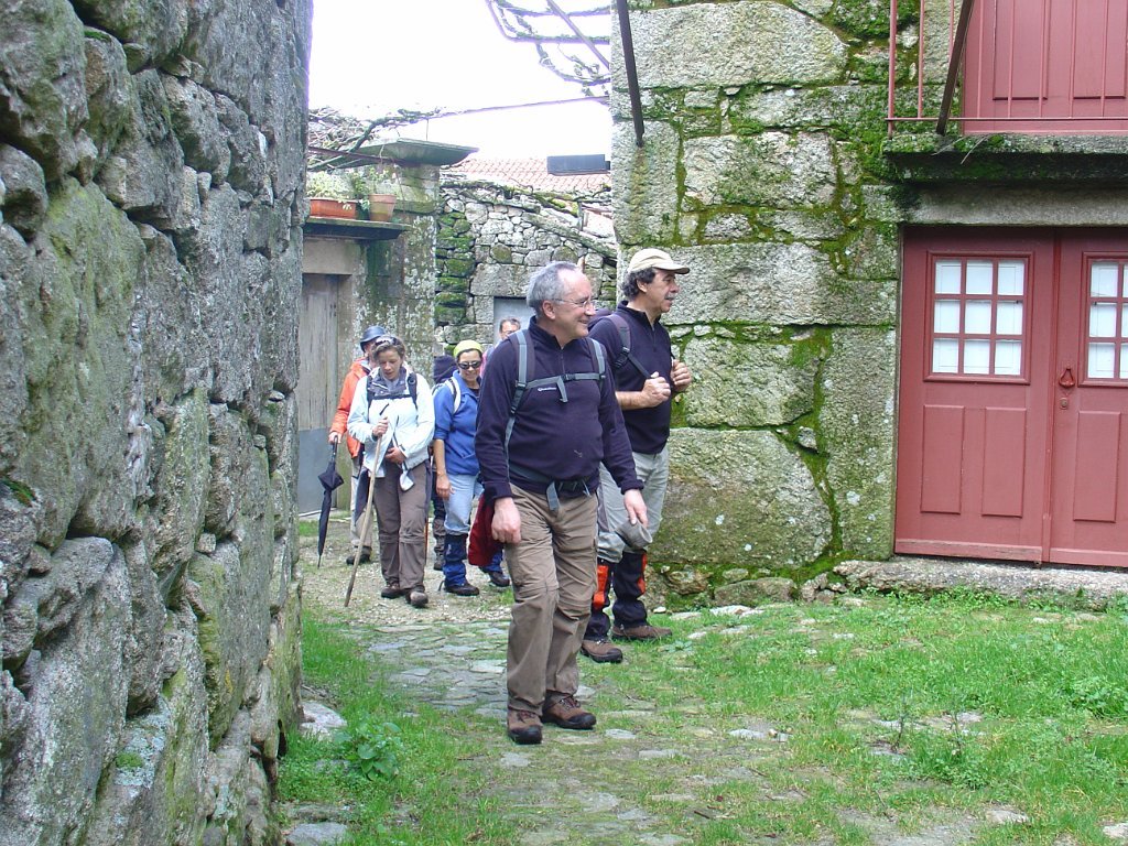 Depois de alguma hesitação iniciamos a subida pelo meio das casas e espigueiros da aldeia, encontrando vários dos seus habitantes a fazer a manutenção da calçada rural de acesso à serra, limpando-o da vegetação e refazendo os drenos.