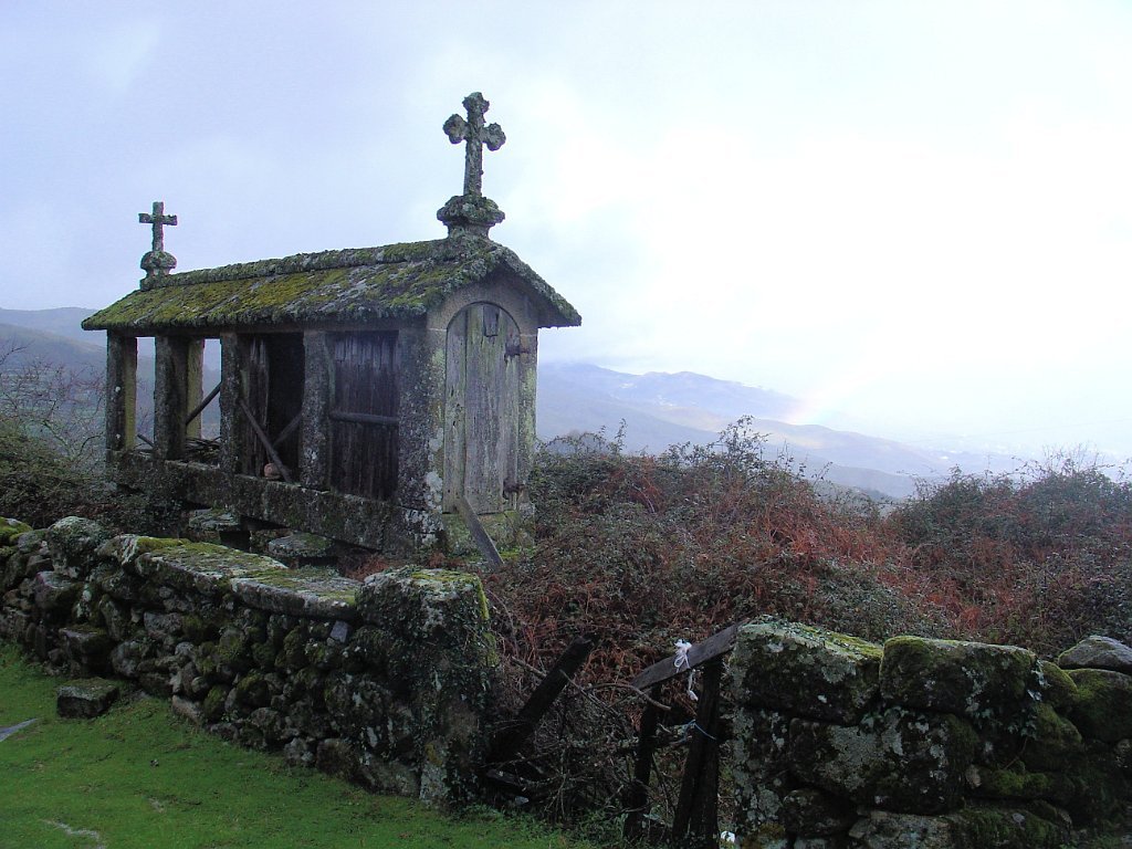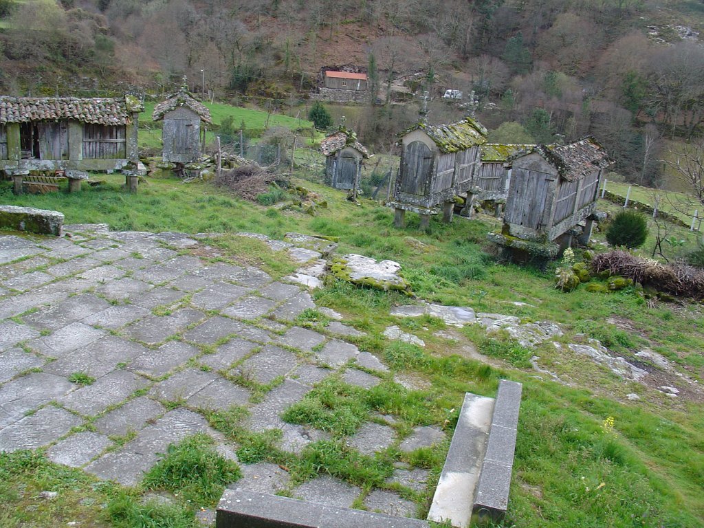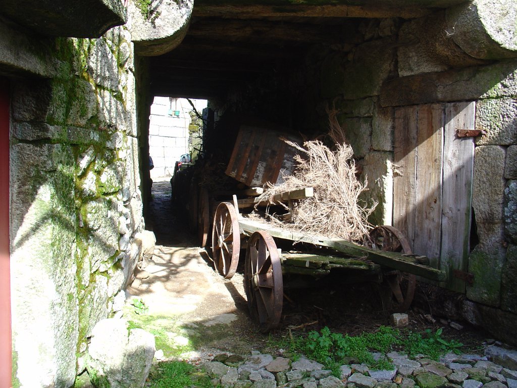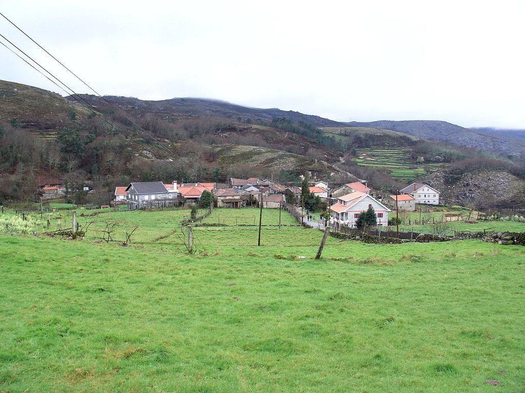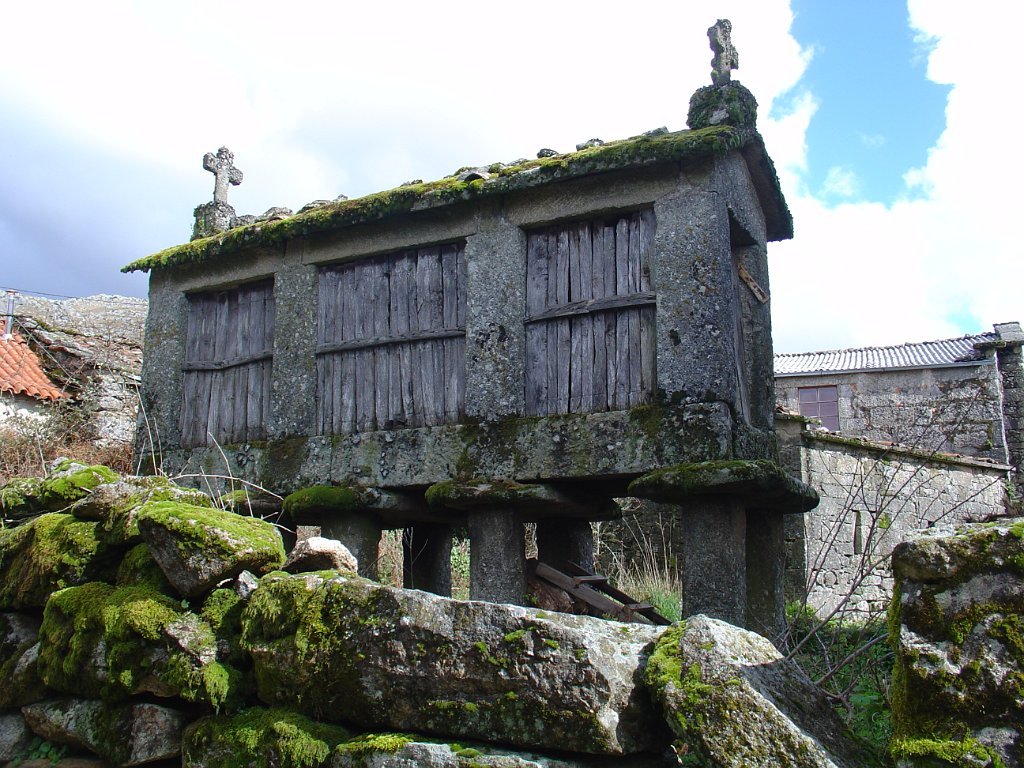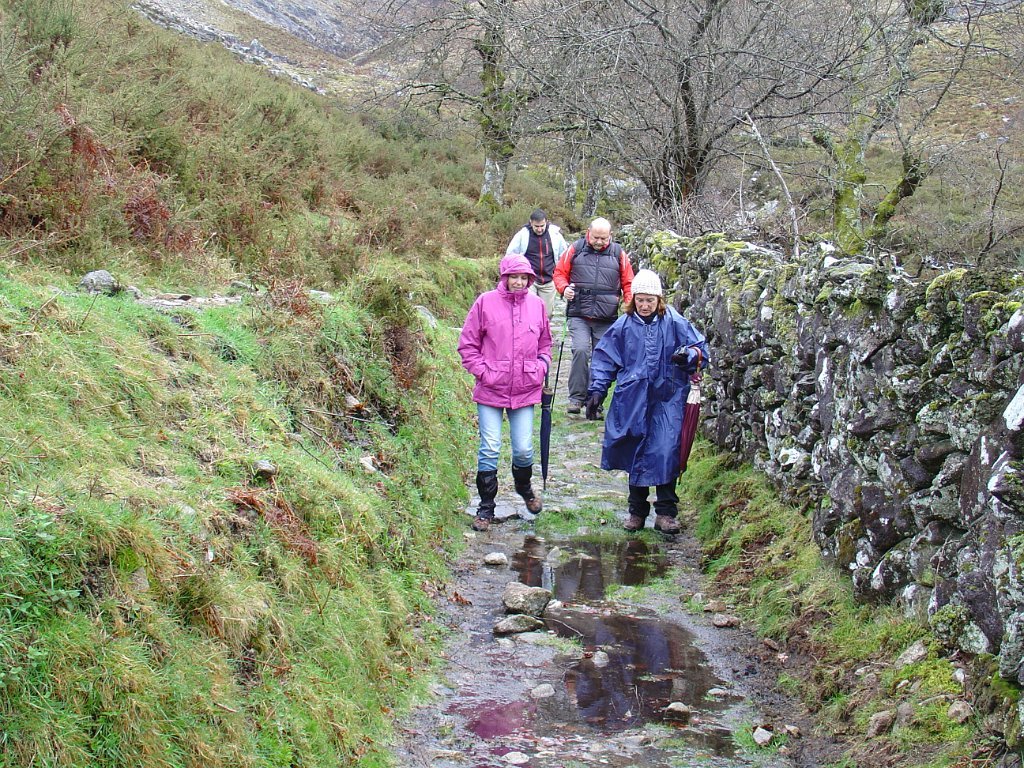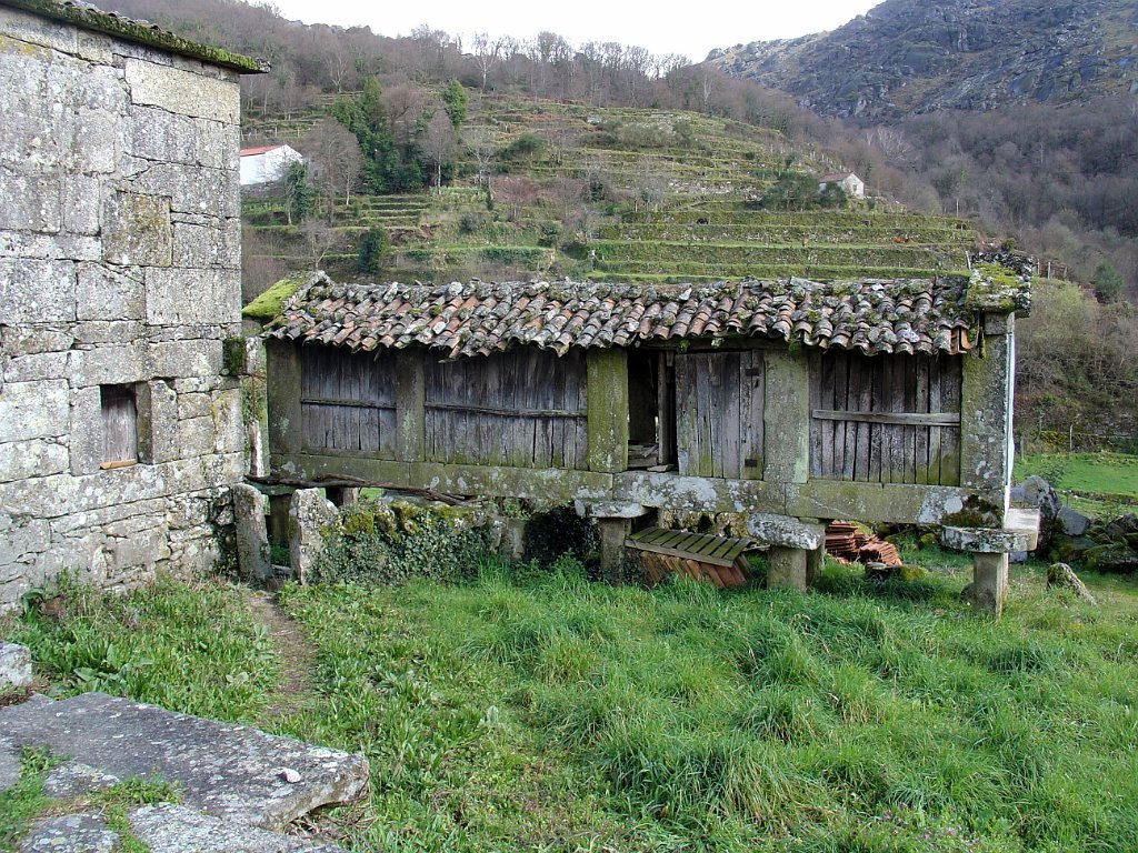 Depois de alguma hesitação iniciamos a subida pelo meio das casas e espigueiros da aldeia, encontrando vários dos seus habitantes a fazer a manutenção da calçada rural de acesso à serra, limpando-o da vegetação e refazendo os drenos.